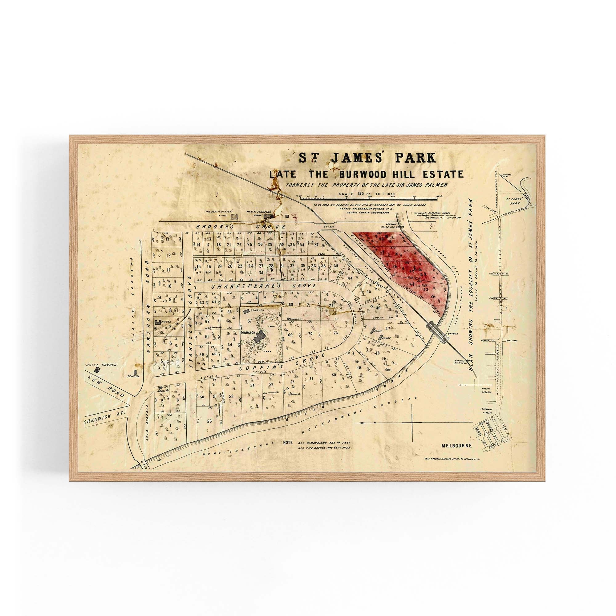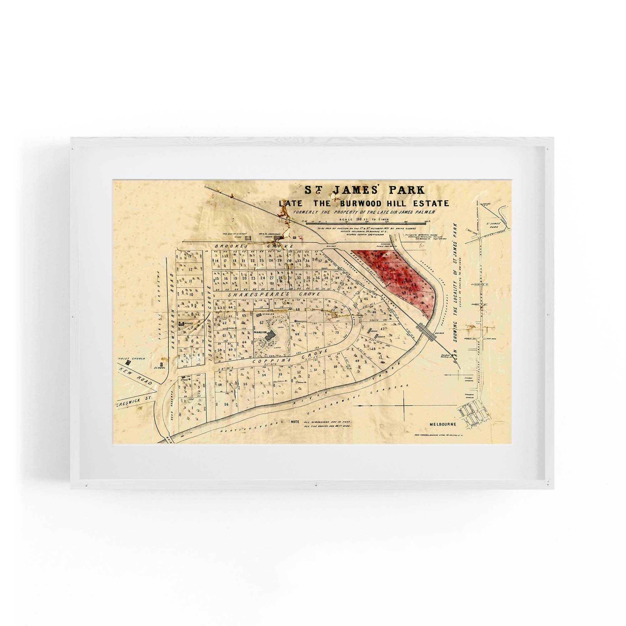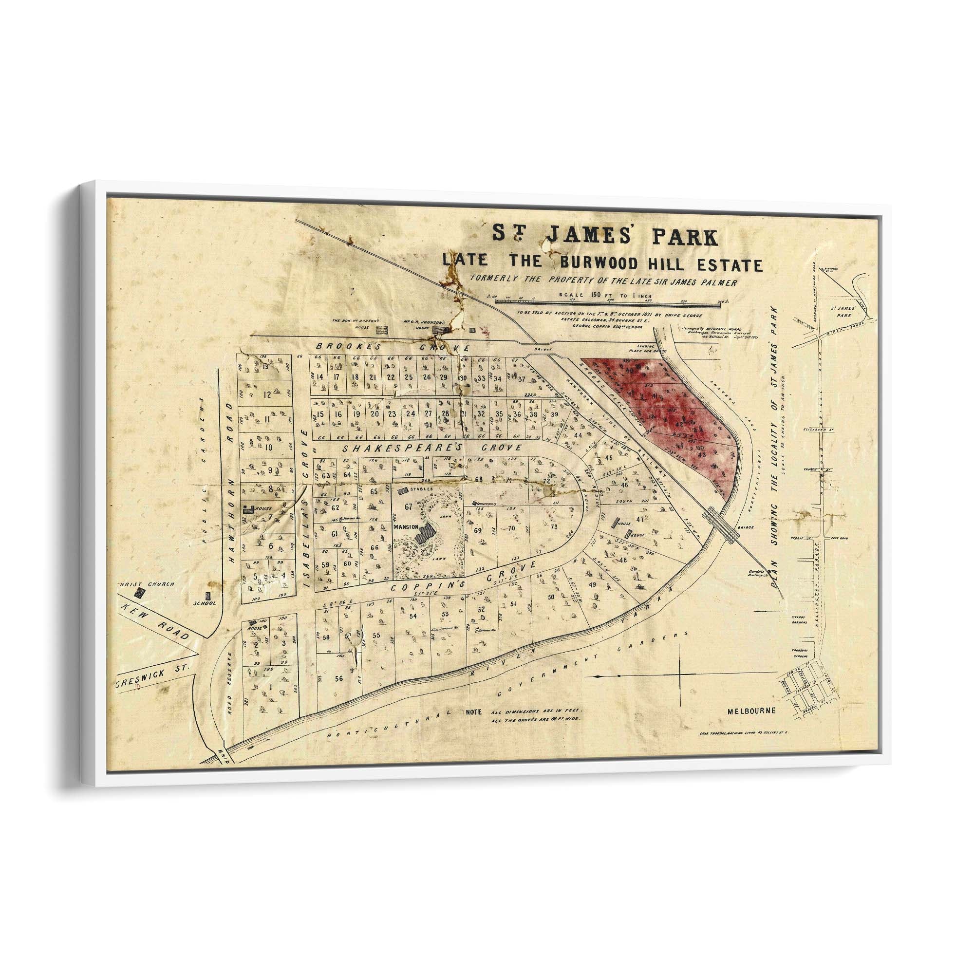 1871 Vintage Map of Burnley, Victoria Australia