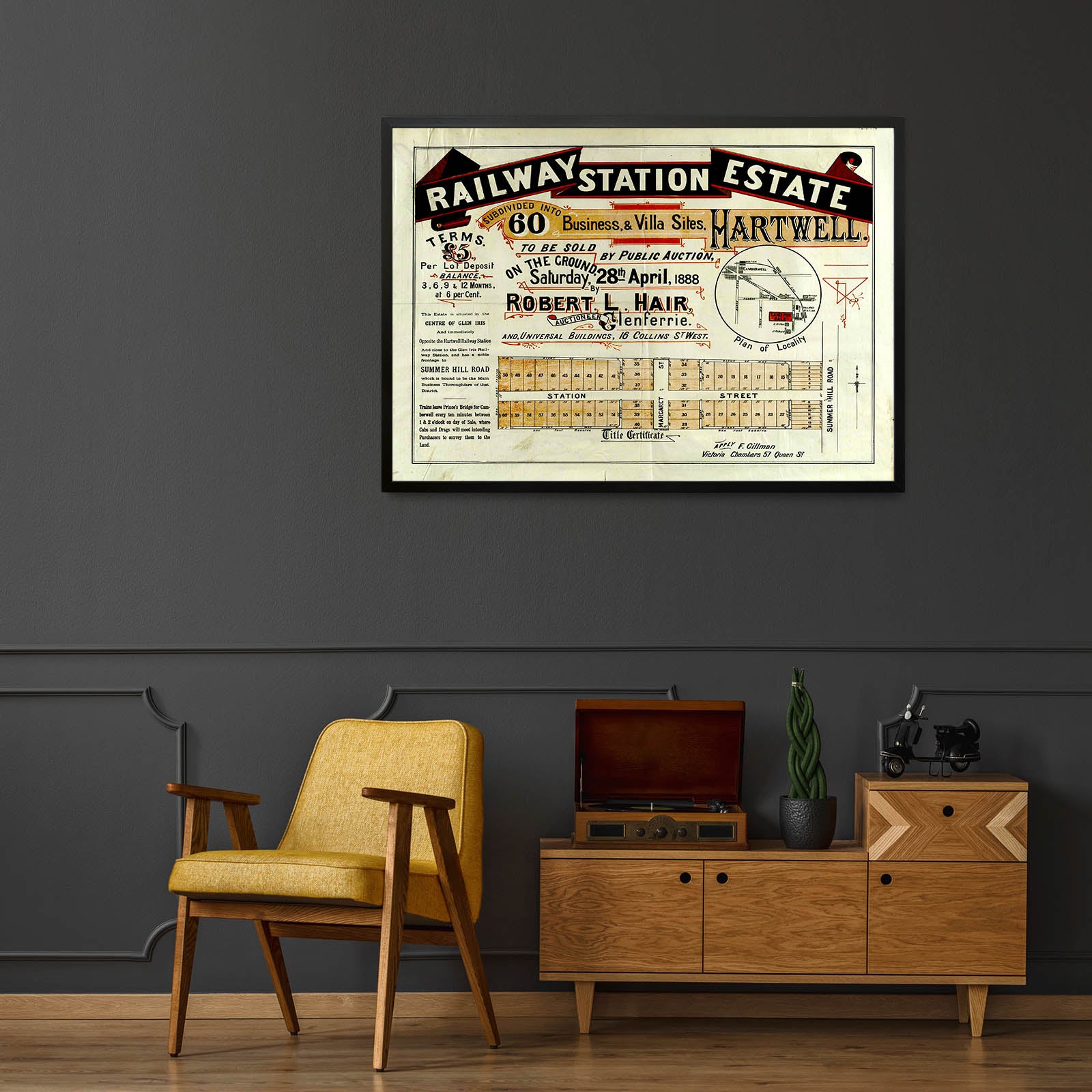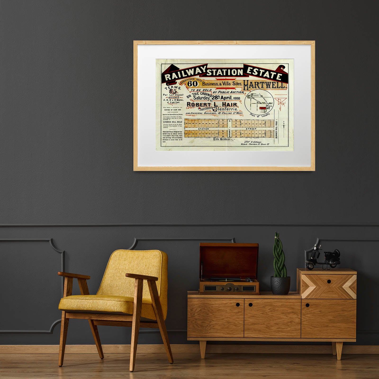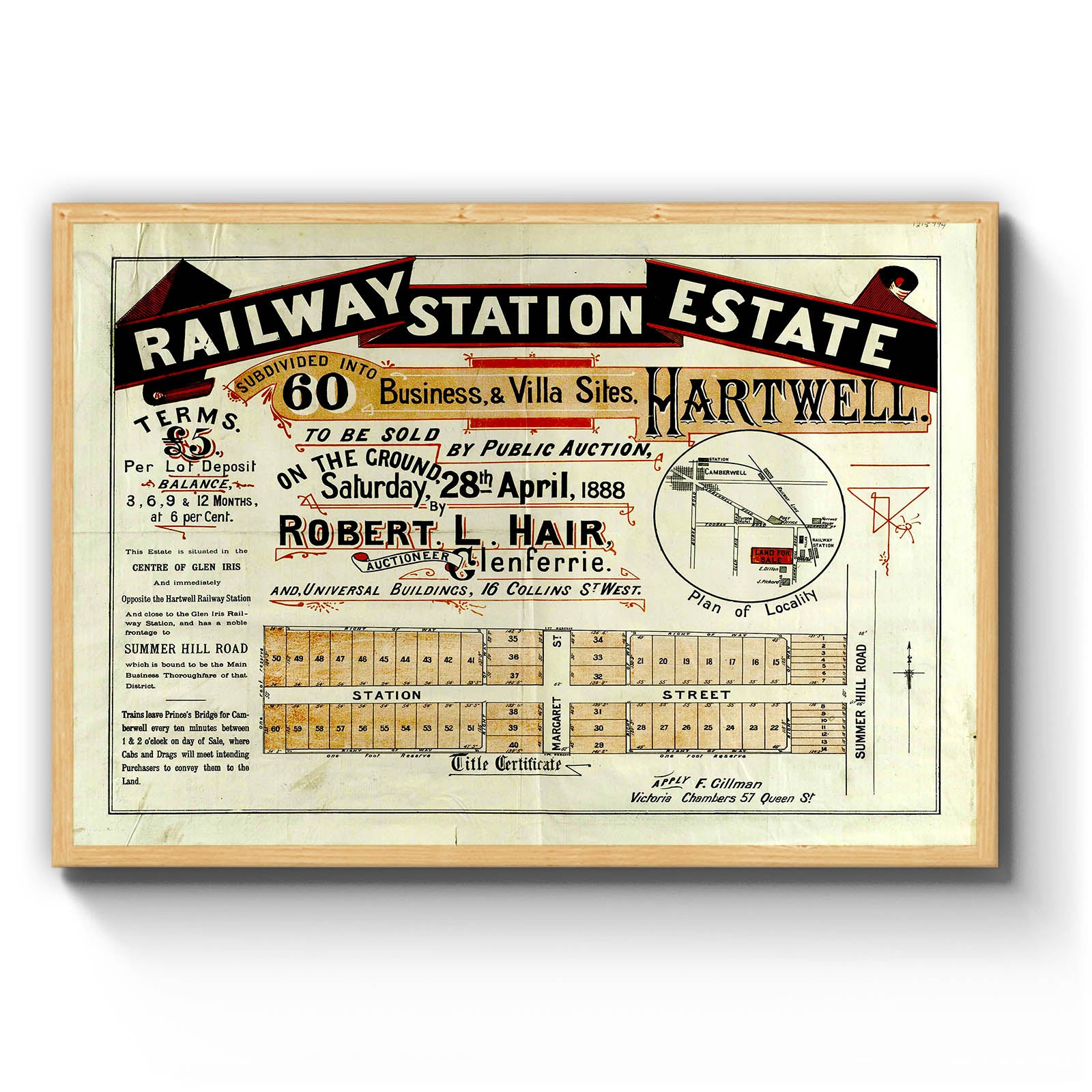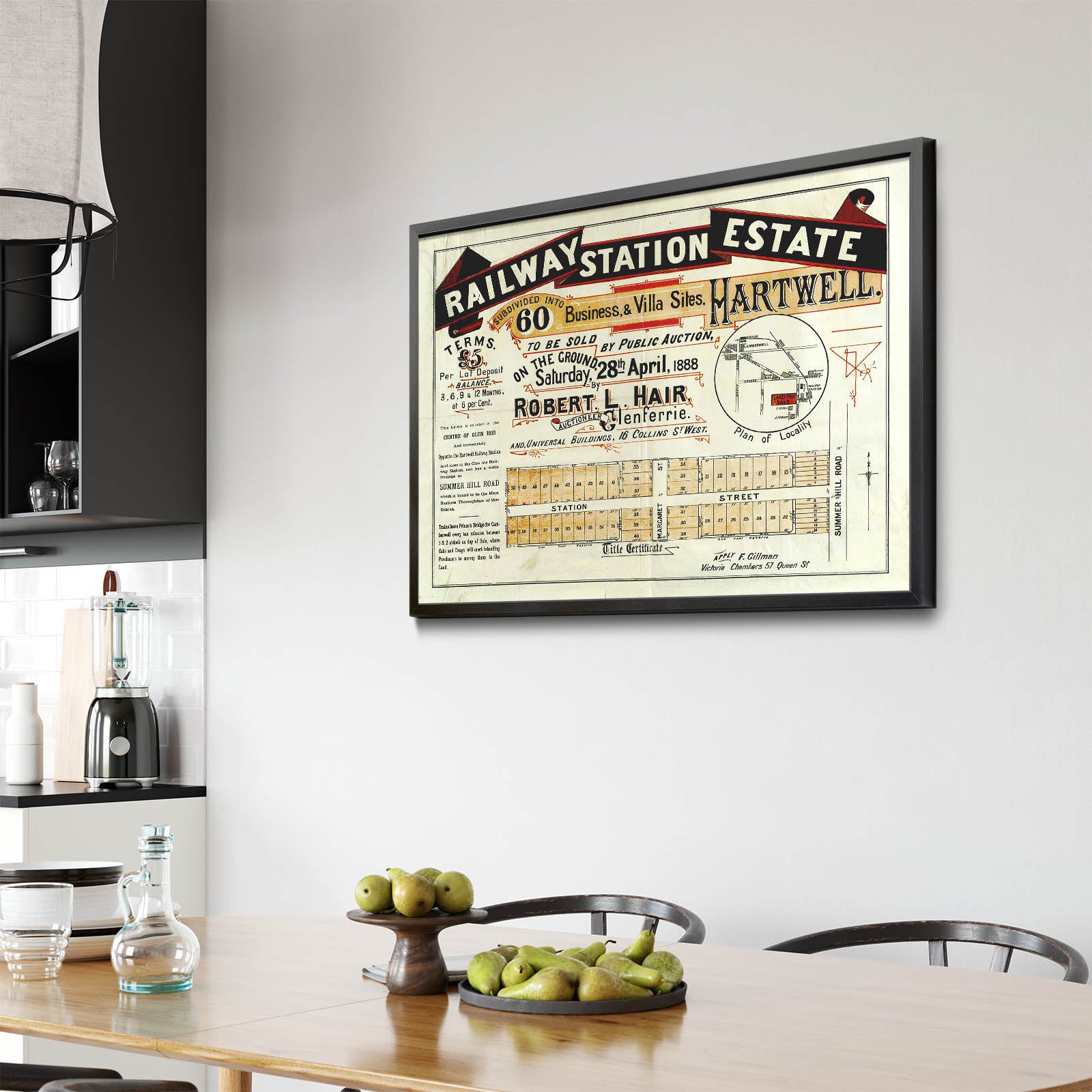 Recently moving to Harcourt and being interested in the history of the area, it seemed fitting to purchase a vintage map of the area which is displayed on our kitchen wall for us to study easily, identifying the block of land we bought. Nicely framed too.