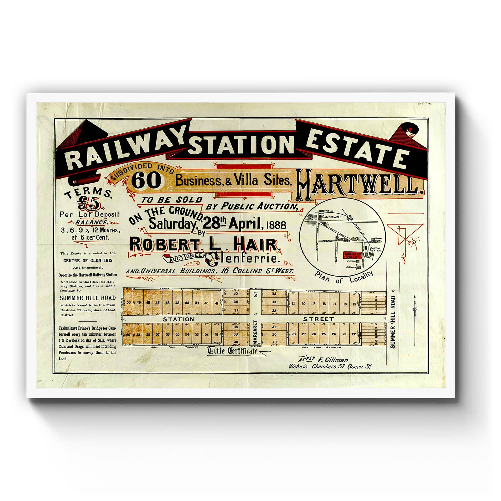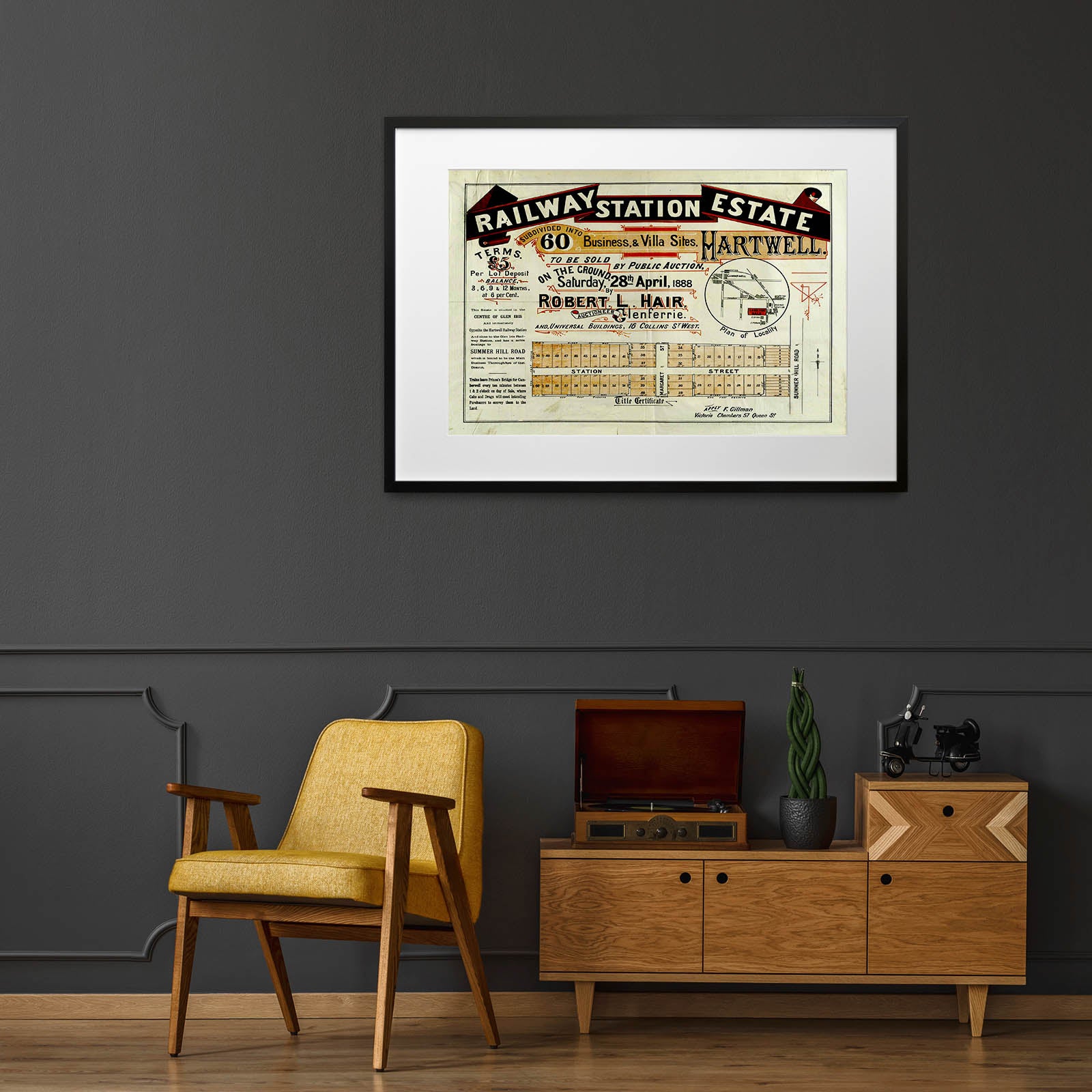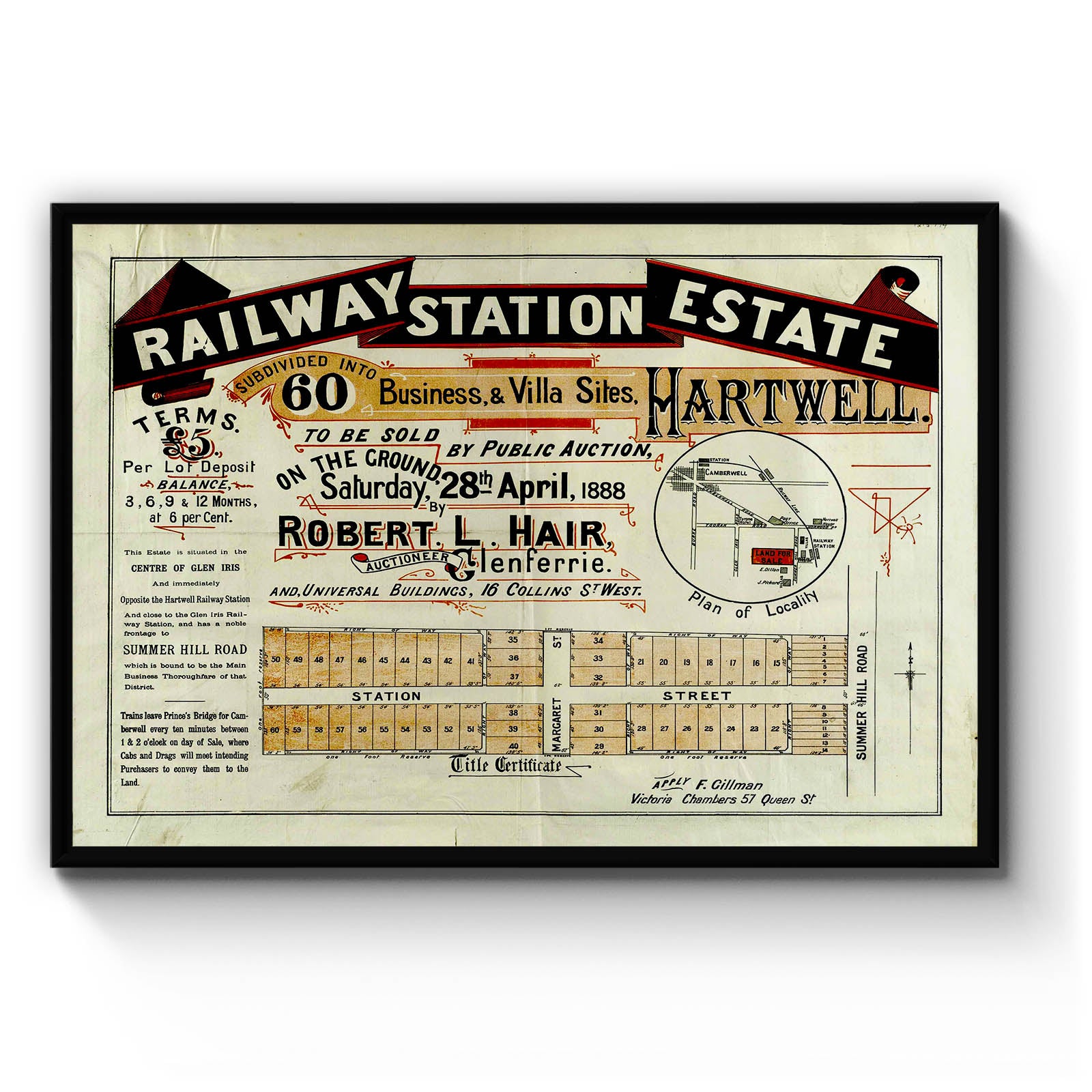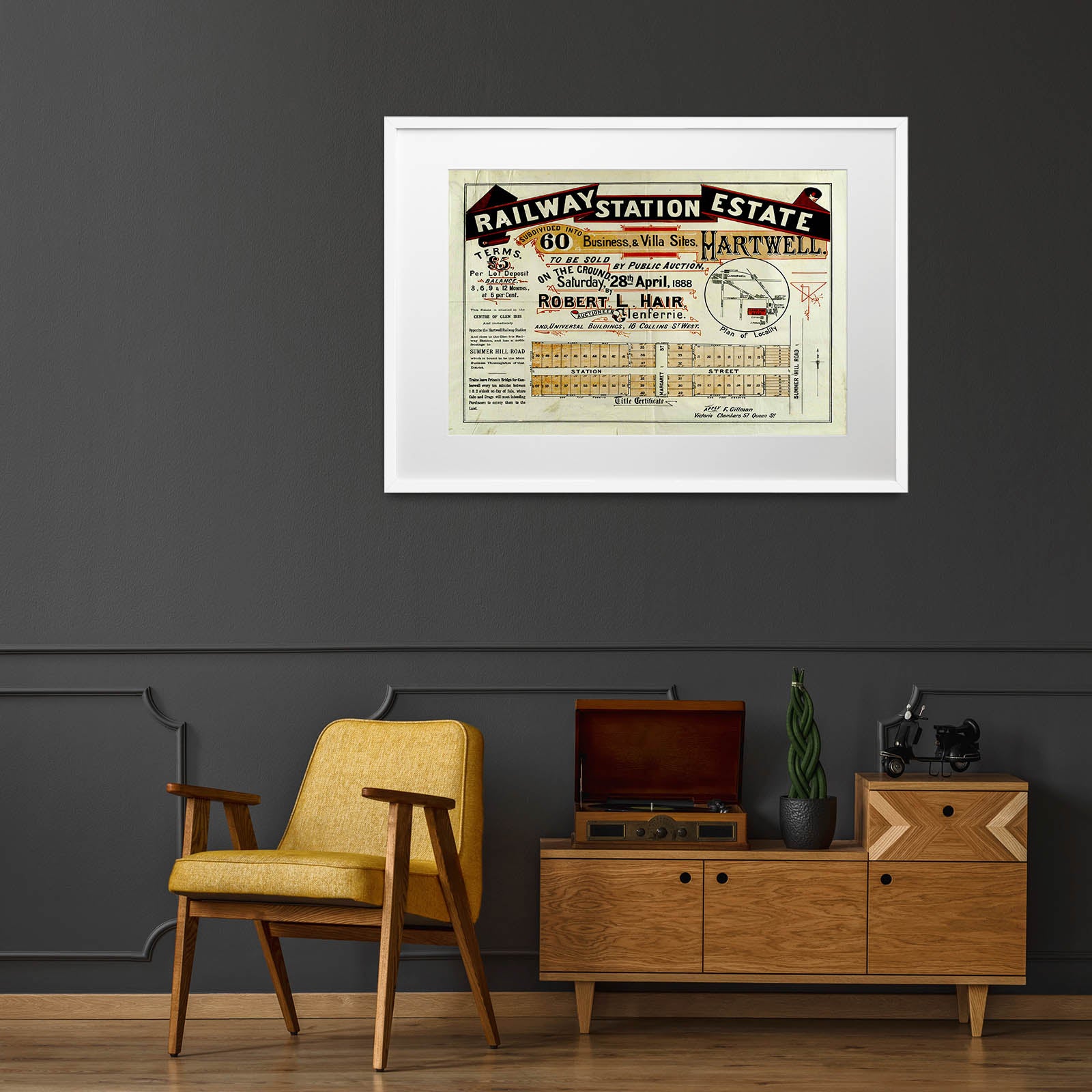 Recently moving to Harcourt and being interested in the history of the area, it seemed fitting to purchase a vintage map of the area which is displayed on our kitchen wall for us to study easily, identifying the block of land we bought. Nicely framed too.