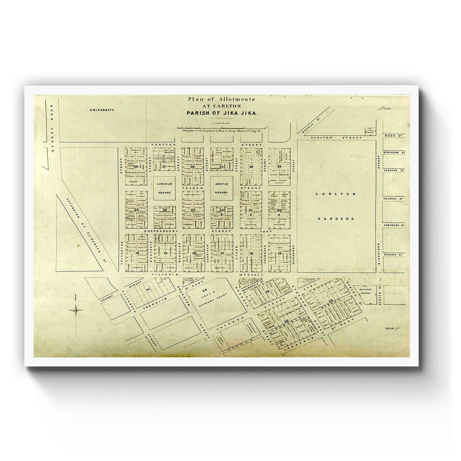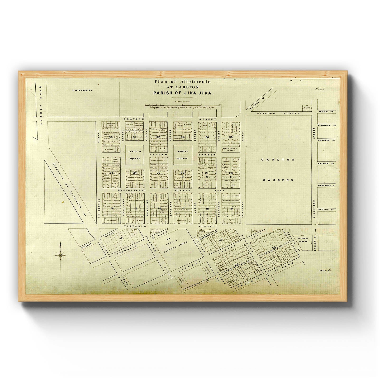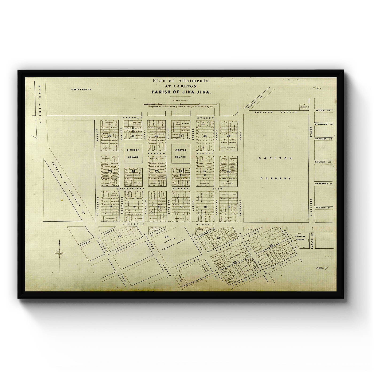 Plan of allotments at Carlton : Parish of Jika Jika [cartographic material] / lithograhped at the Department of Lands & Survey Melbourne 15h July 1864.
