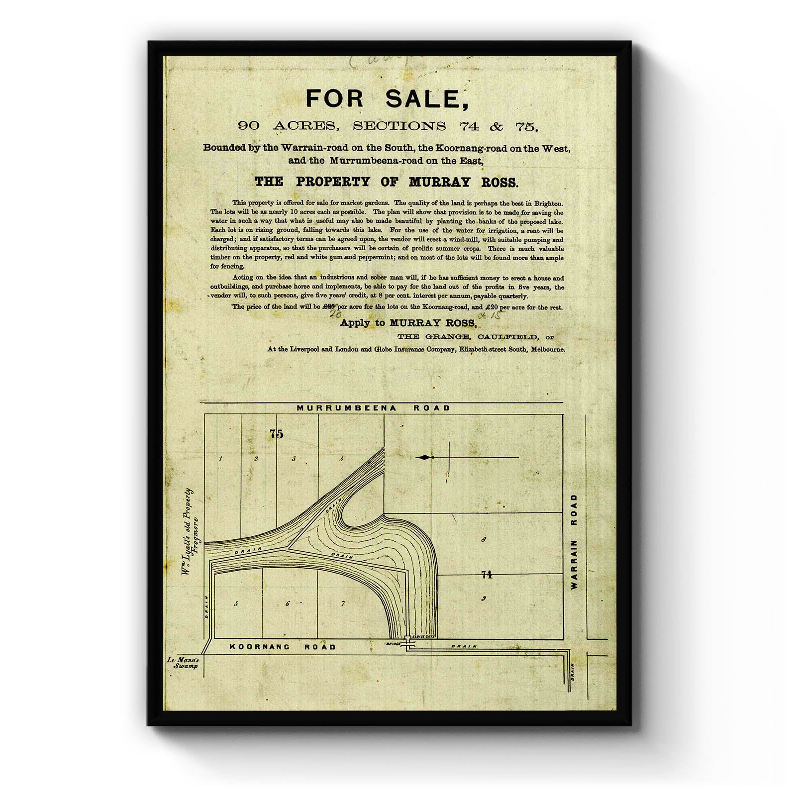 For sale, 90 acres, sections 74 & 75, (in Caulfield) [cartographic material]. [189-]