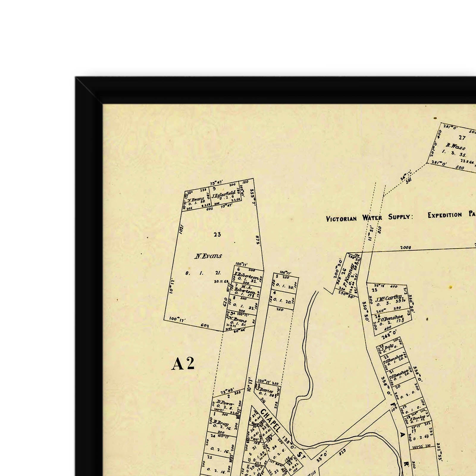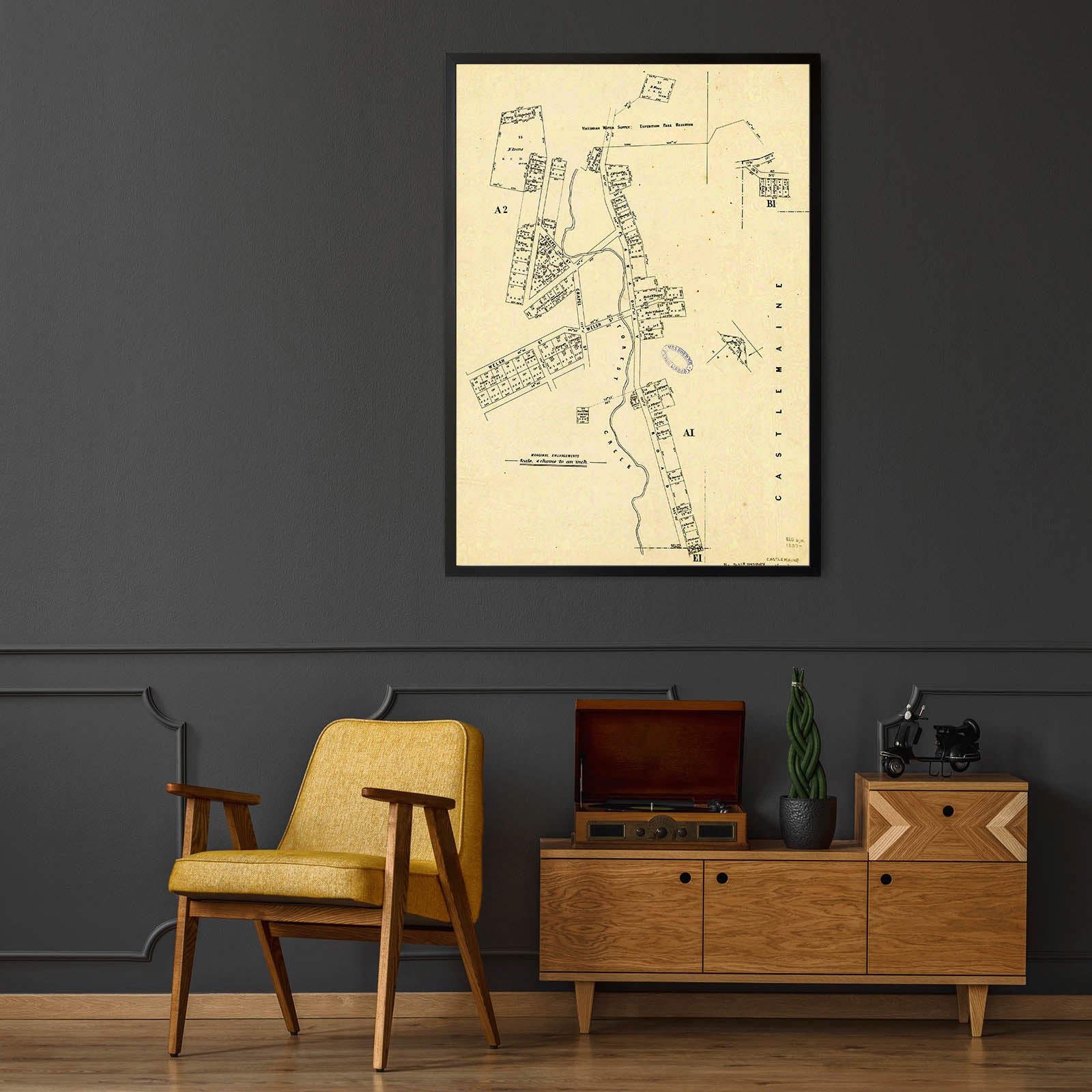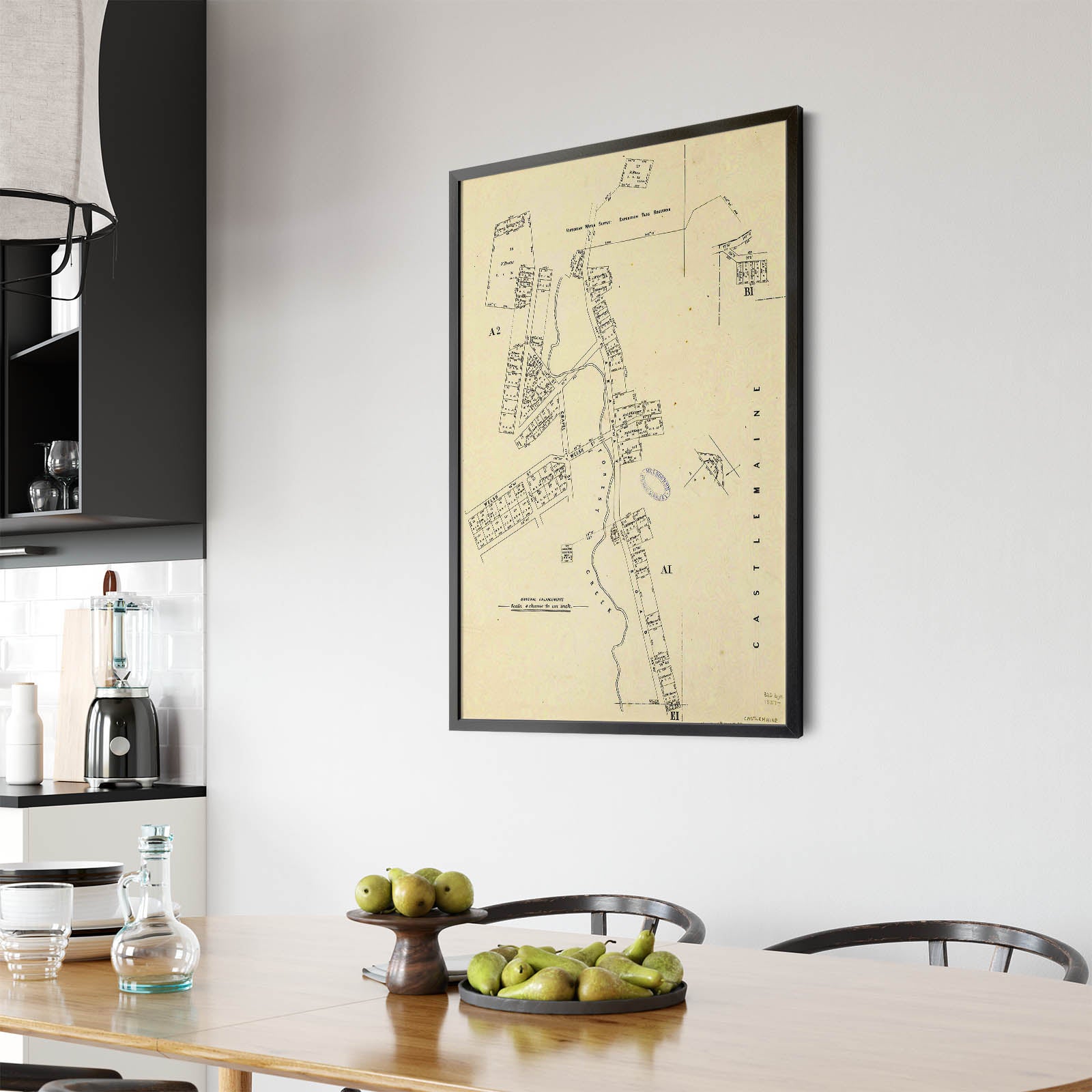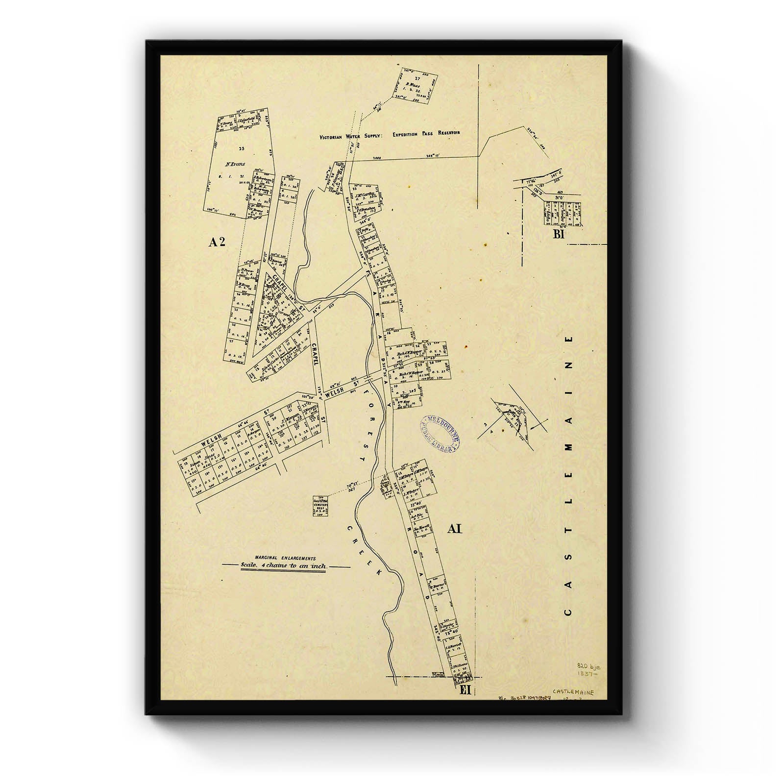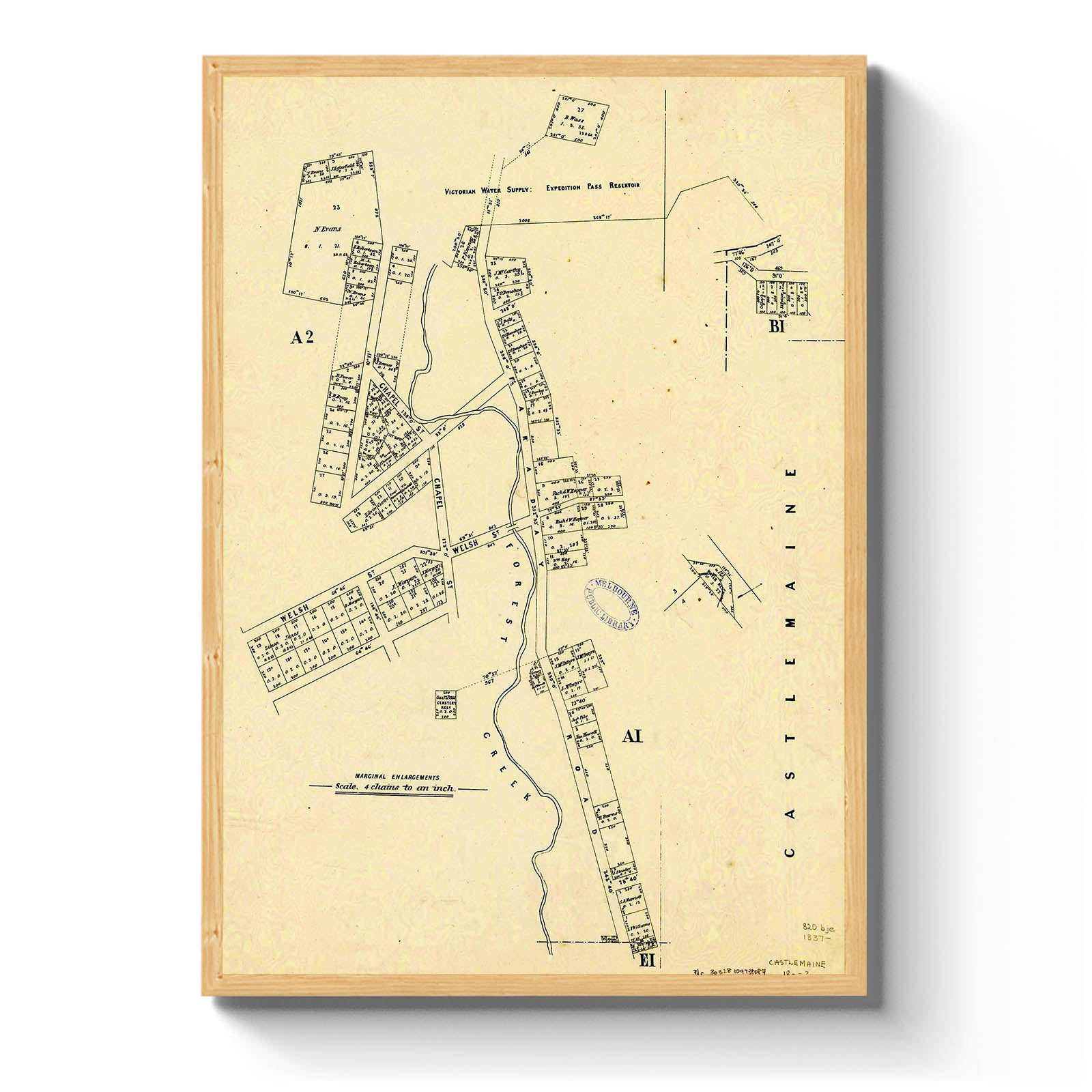 Recently moving to Harcourt and being interested in the history of the area, it seemed fitting to purchase a vintage map of the area which is displayed on our kitchen wall for us to study easily, identifying the block of land we bought. Nicely framed too.
