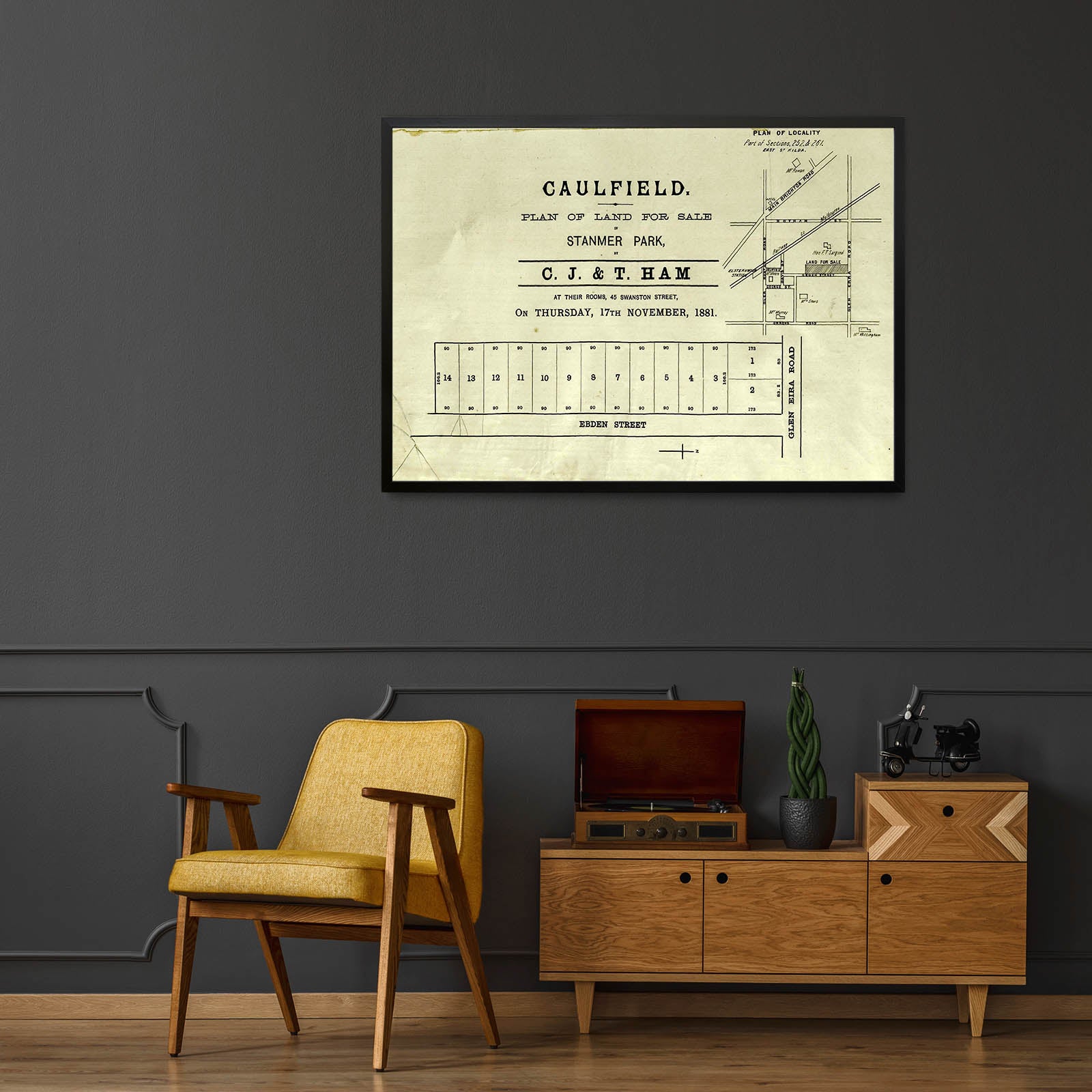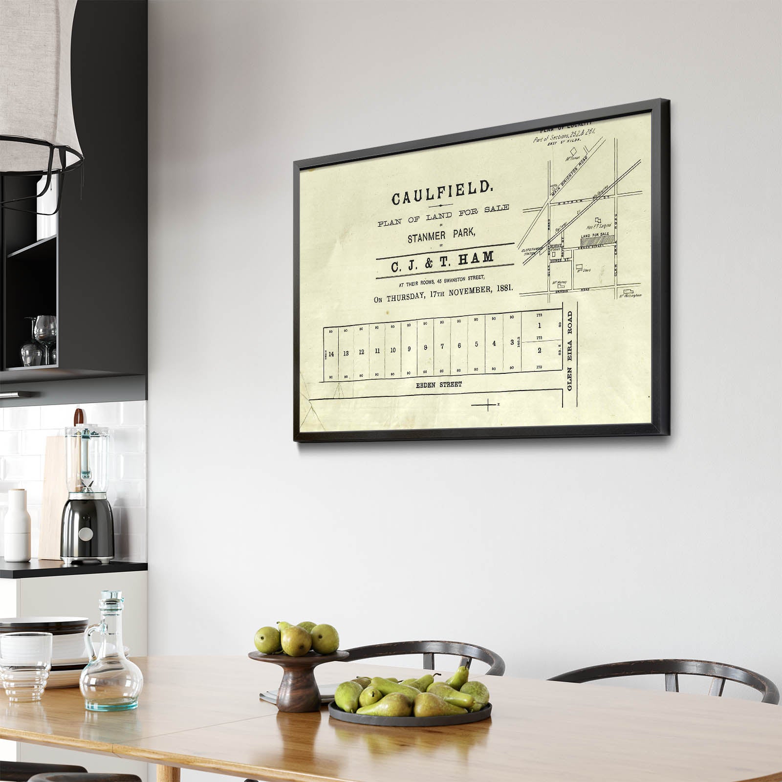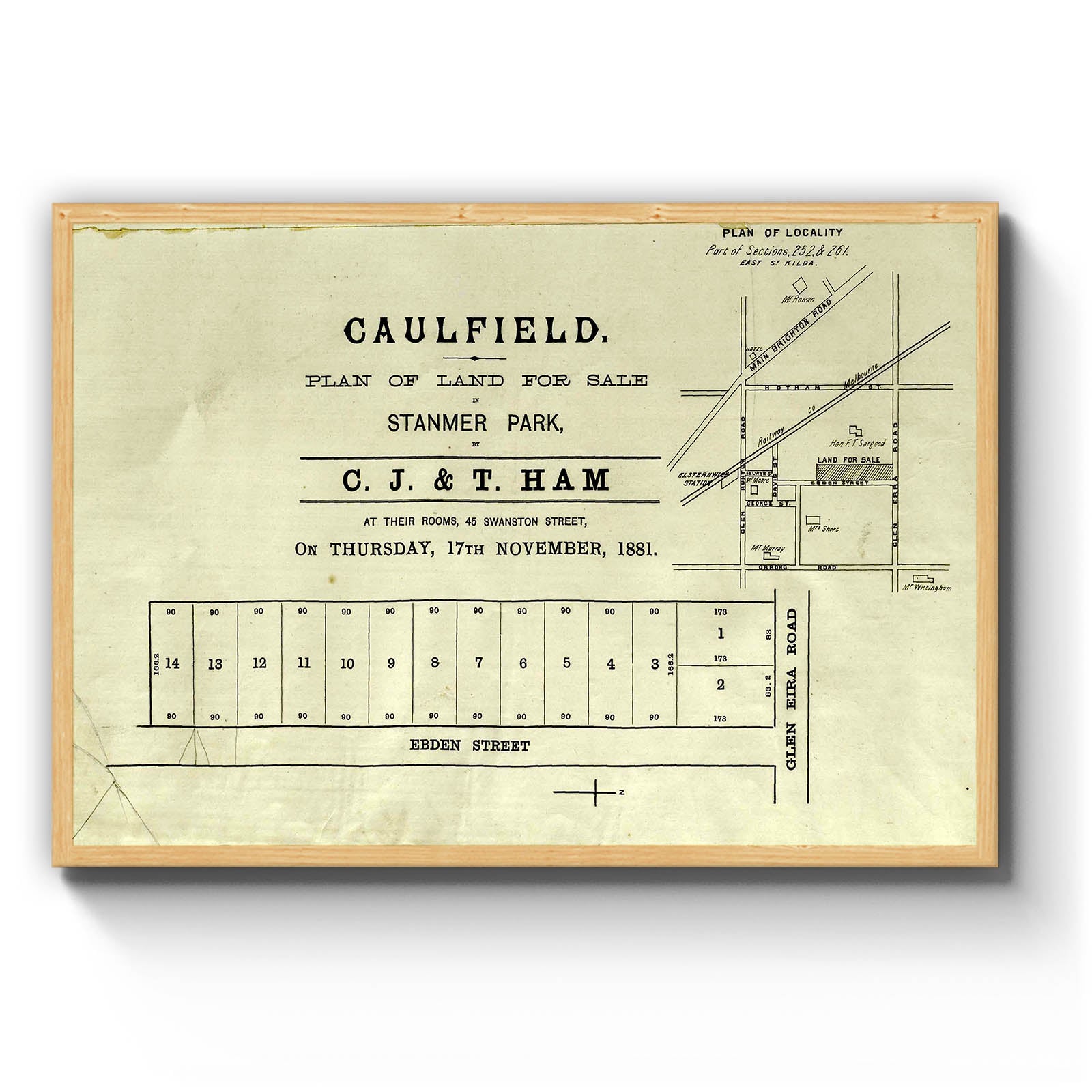 Caulfield, plan of land for sale, Stanmer Park [cartographic material]. 1881 "17th November 1881"; Includes locality plan. Glen Eira Road