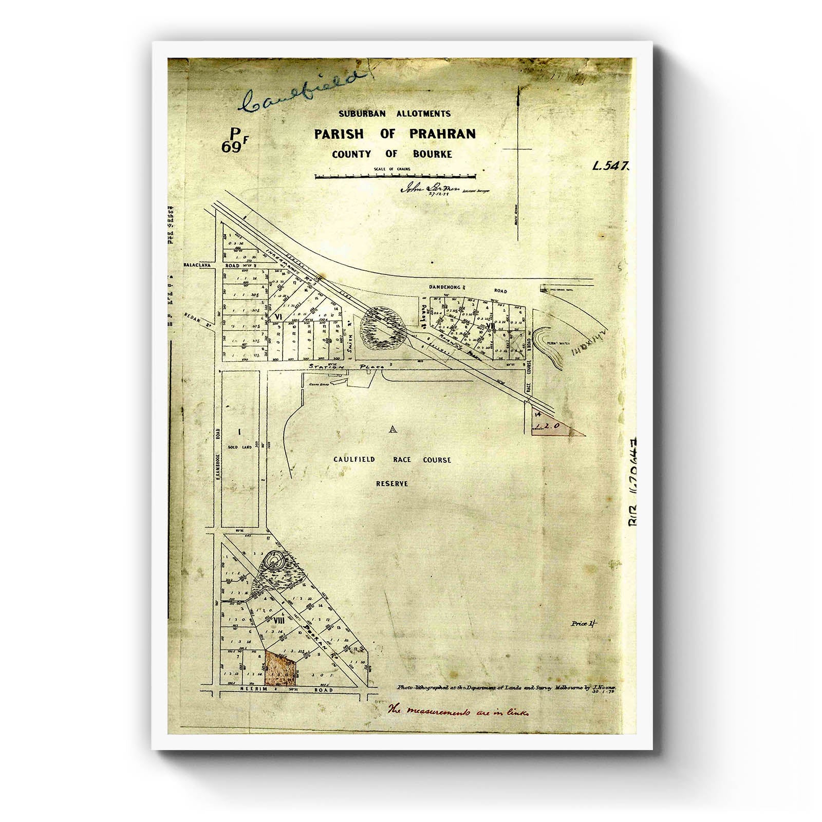 Caulfield, Victoria Australia Vintage Map #51 (1879)