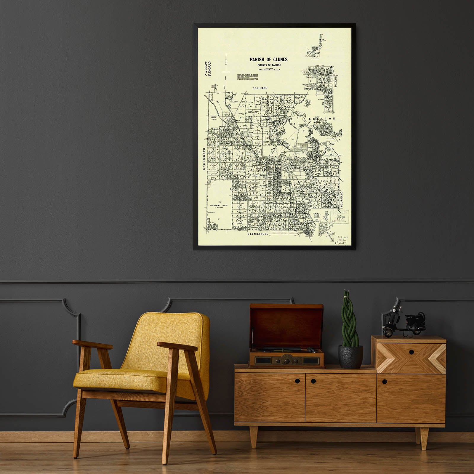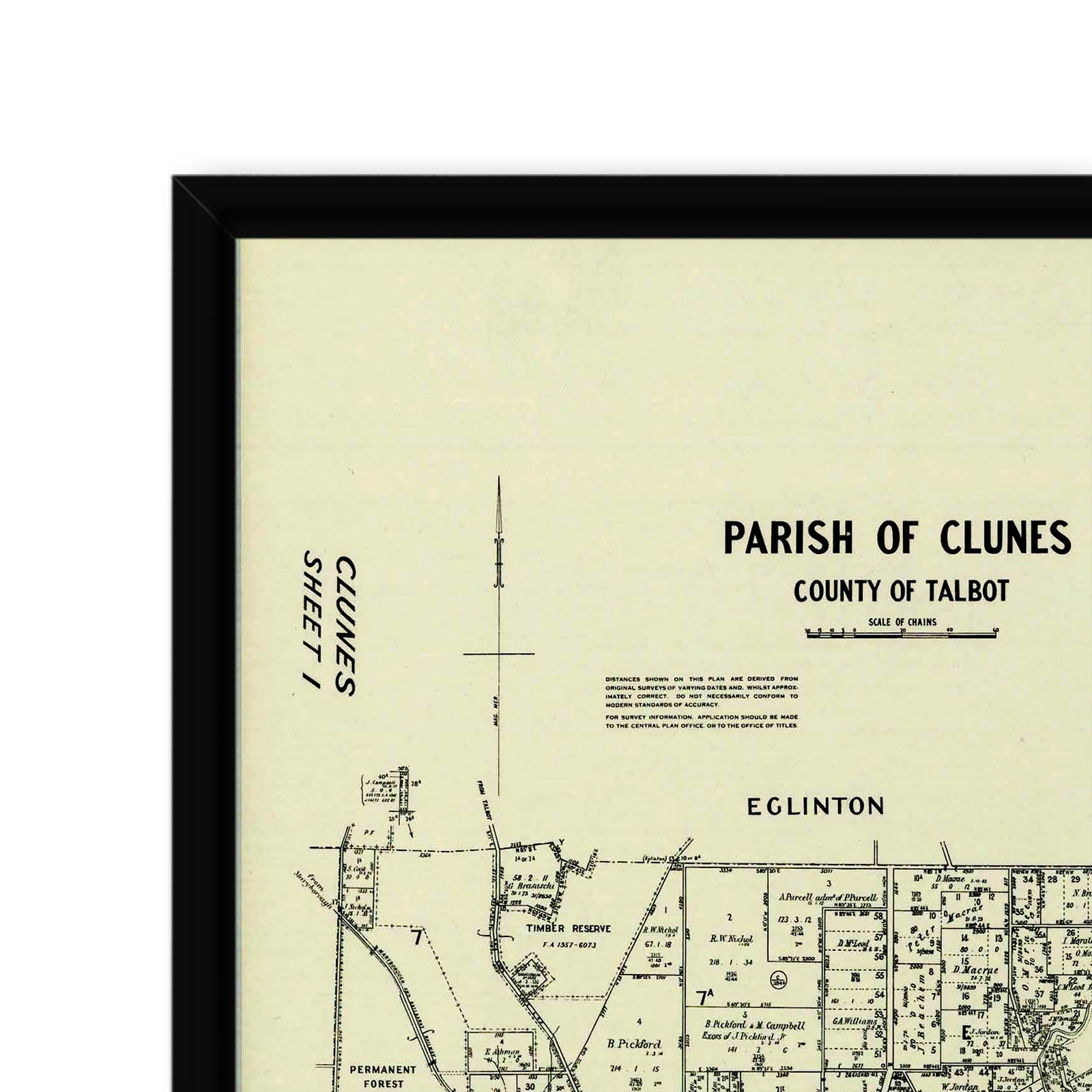 Cadastral map showing parish boundaries and land ownership.
