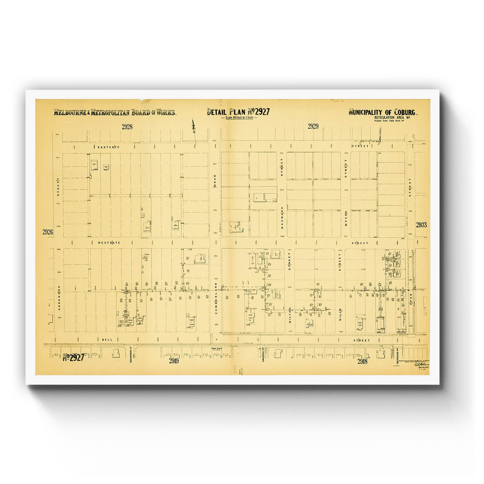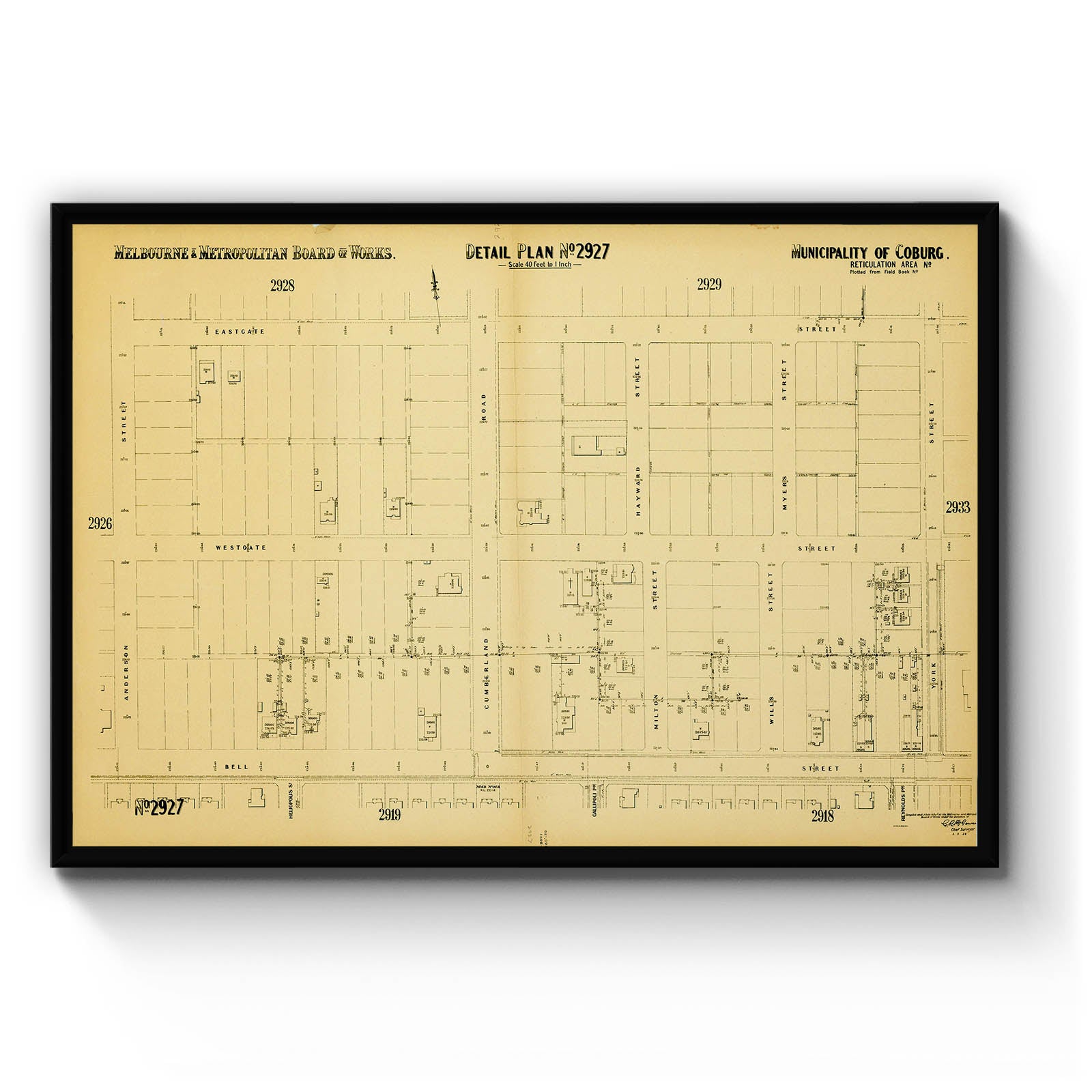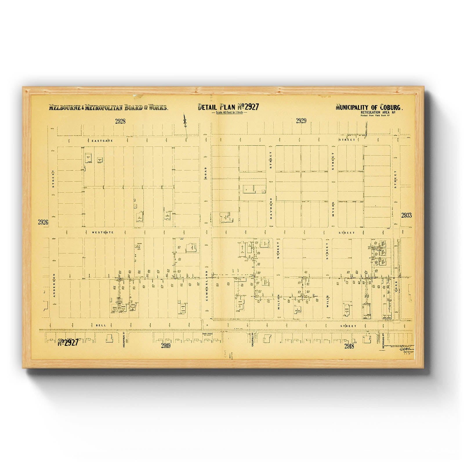 Recently moving to Harcourt and being interested in the history of the area, it seemed fitting to purchase a vintage map of the area which is displayed on our kitchen wall for us to study easily, identifying the block of land we bought. Nicely framed too.
