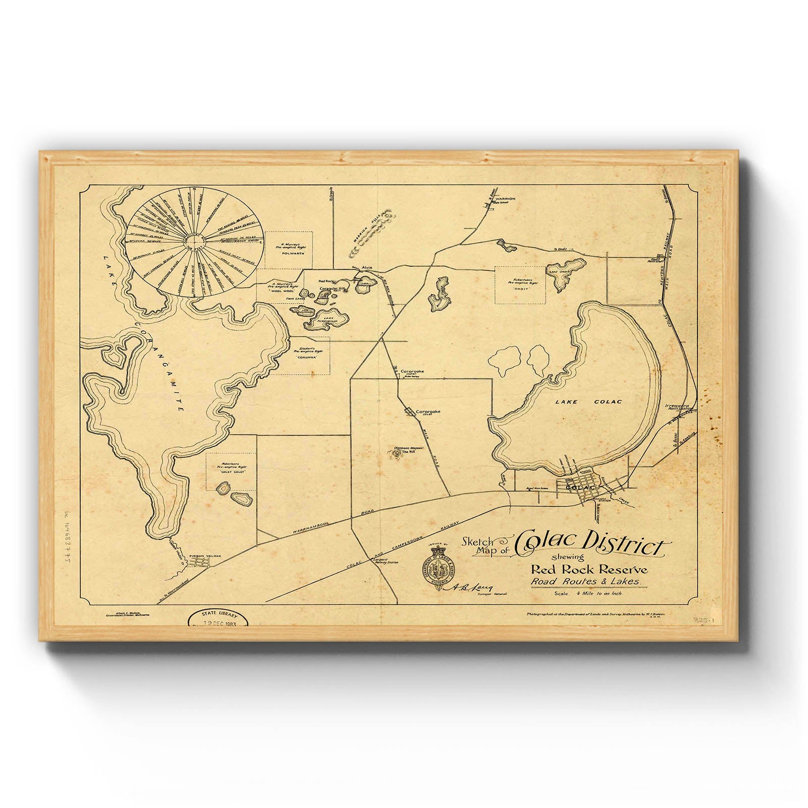Sketch map of Colac district [cartographic material]: showing Red Rock Reserve, road routes & lakes / photographed at the Department of Lands and Survey, Melbourne by W.J. Butson, 8.10.15. 1915