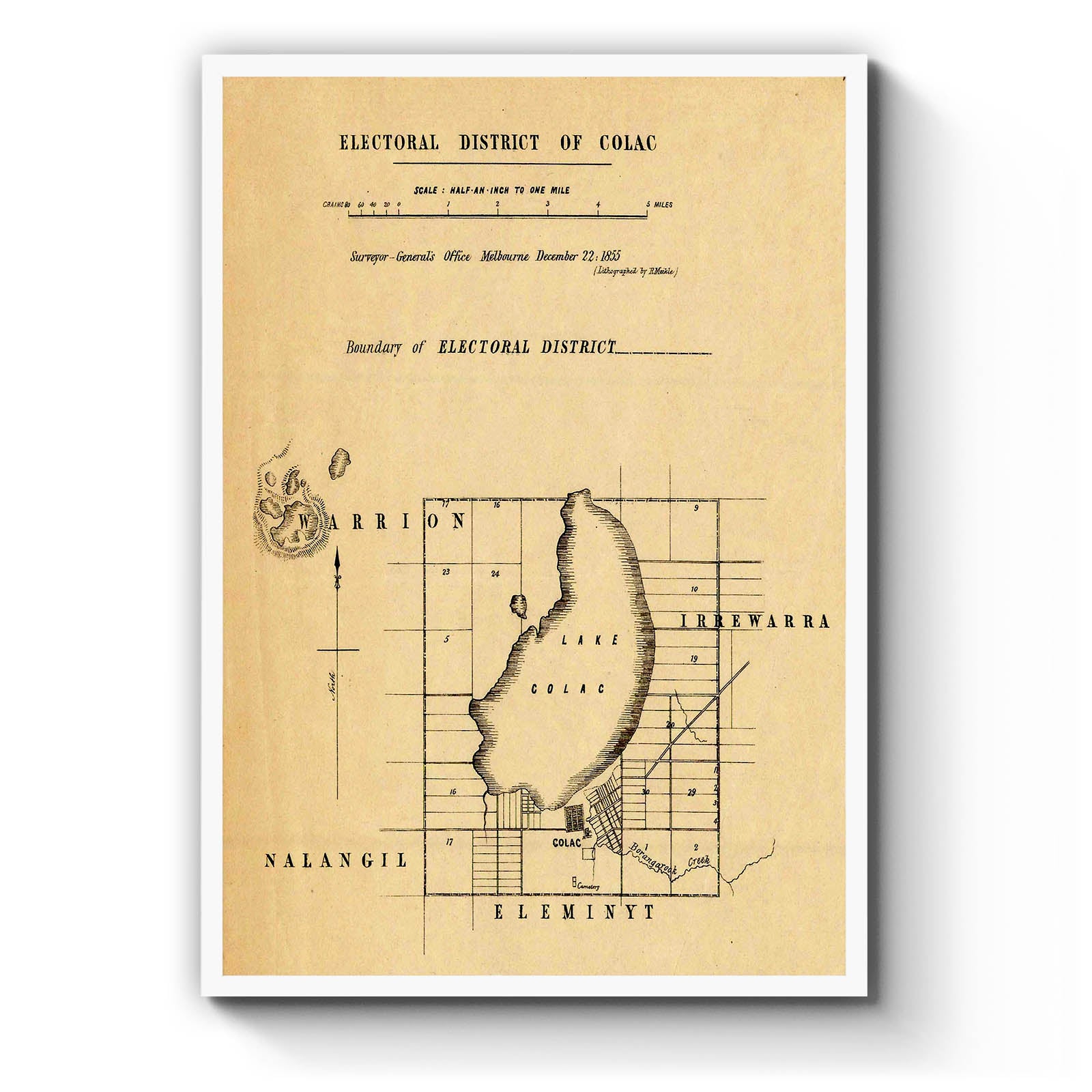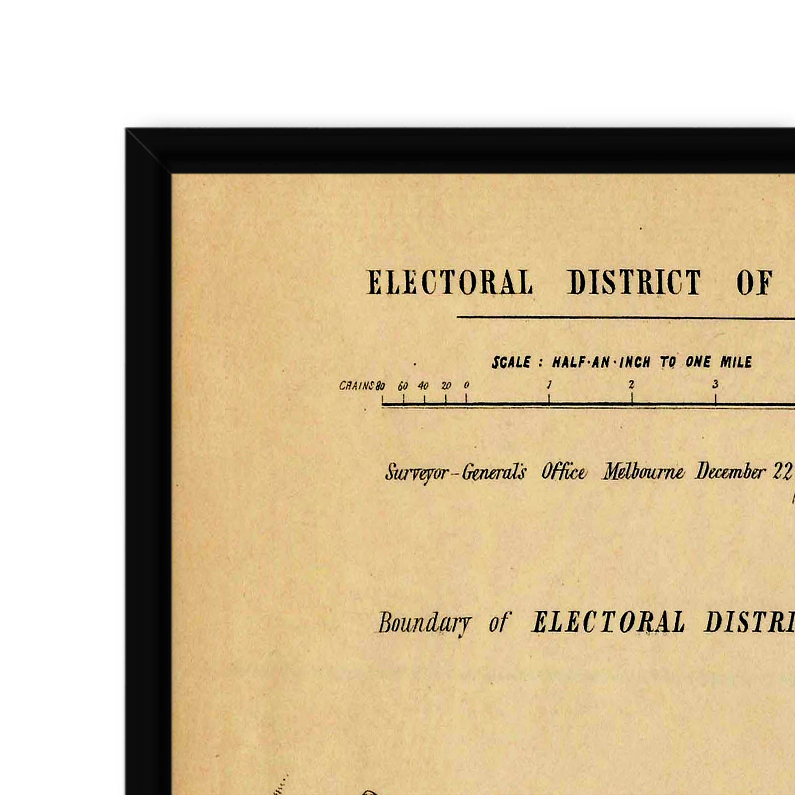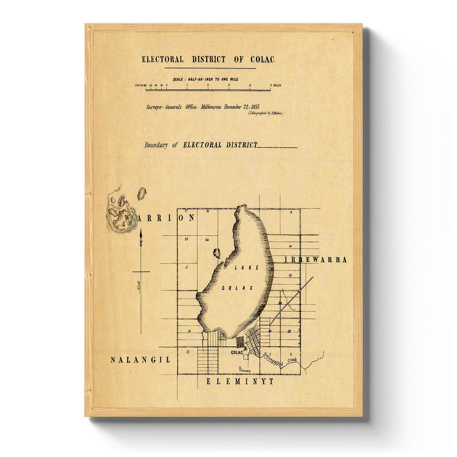 Recently moving to Harcourt and being interested in the history of the area, it seemed fitting to purchase a vintage map of the area which is displayed on our kitchen wall for us to study easily, identifying the block of land we bought. Nicely framed too.