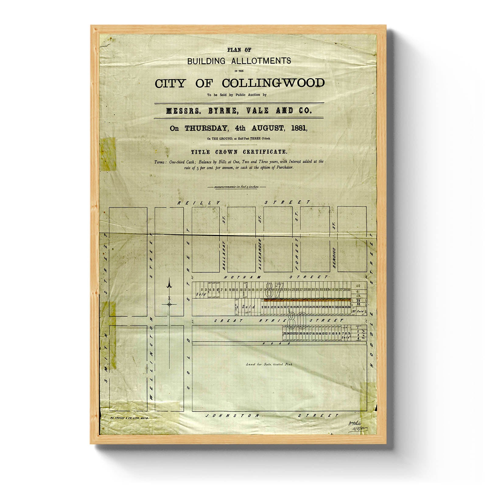 Plan of building allotments in the City of Collingwood [cartographic material]. 1881
