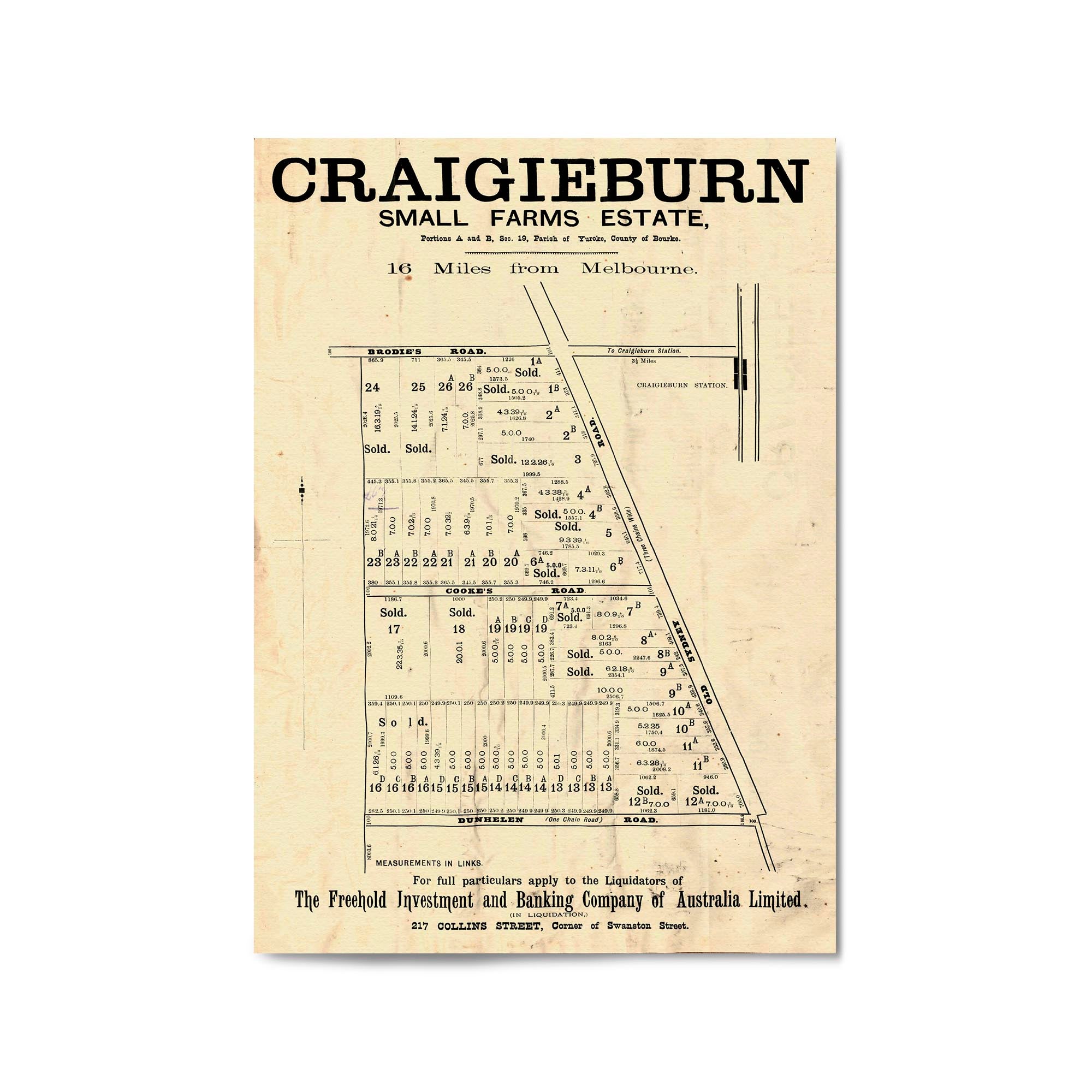 1800's Vintage Map of Craigieburn, Victoria Australia