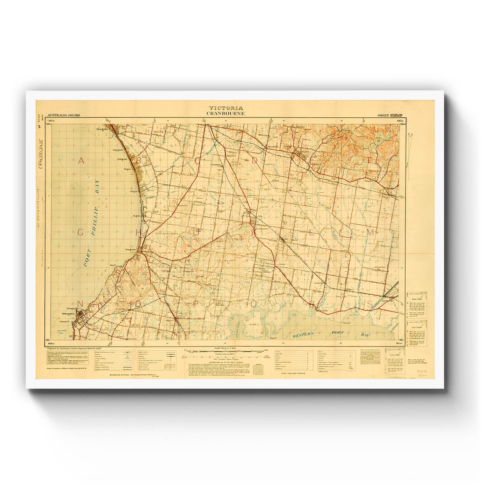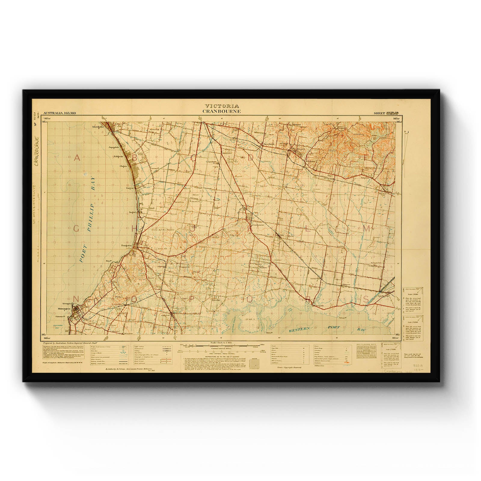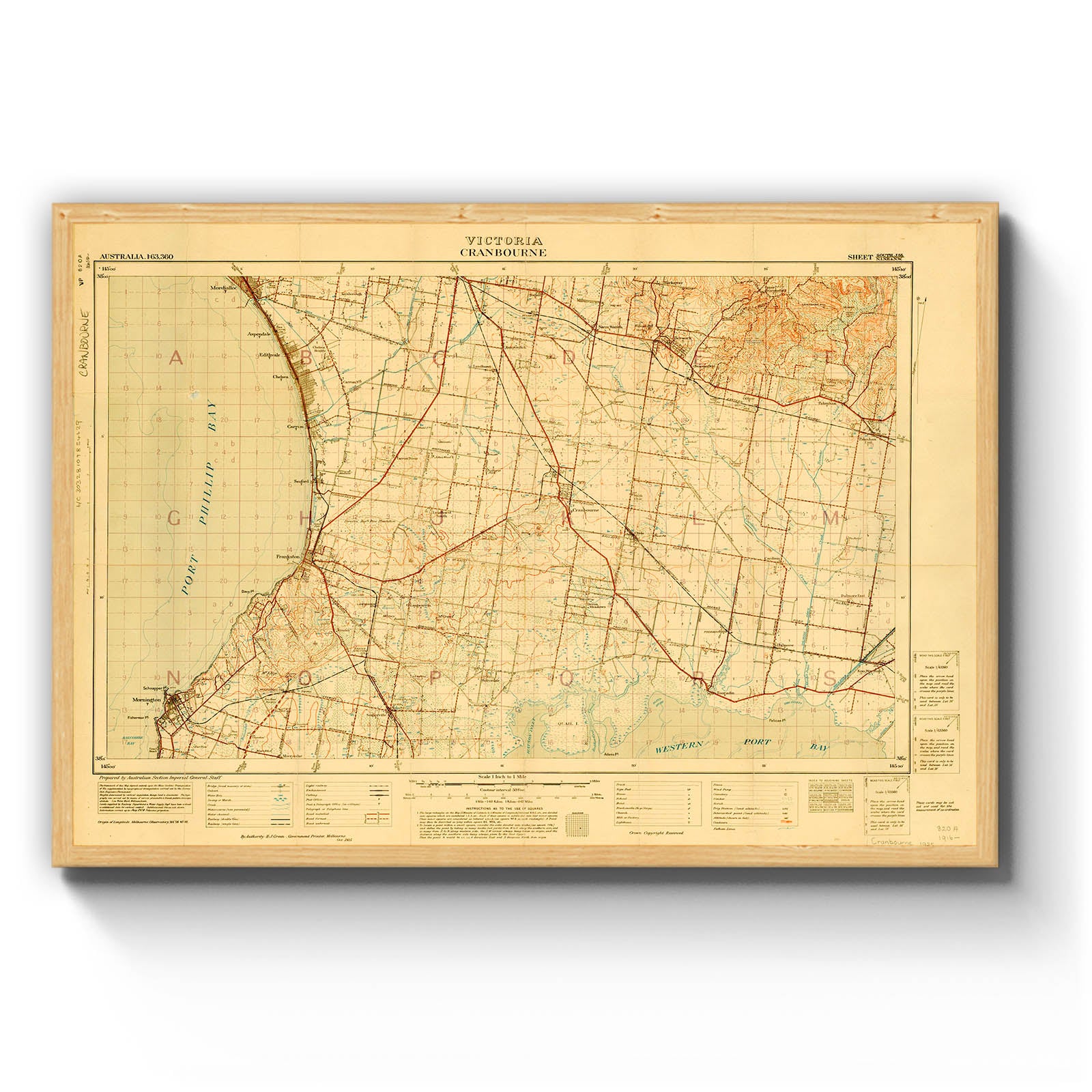 Recently moving to Harcourt and being interested in the history of the area, it seemed fitting to purchase a vintage map of the area which is displayed on our kitchen wall for us to study easily, identifying the block of land we bought. Nicely framed too.
