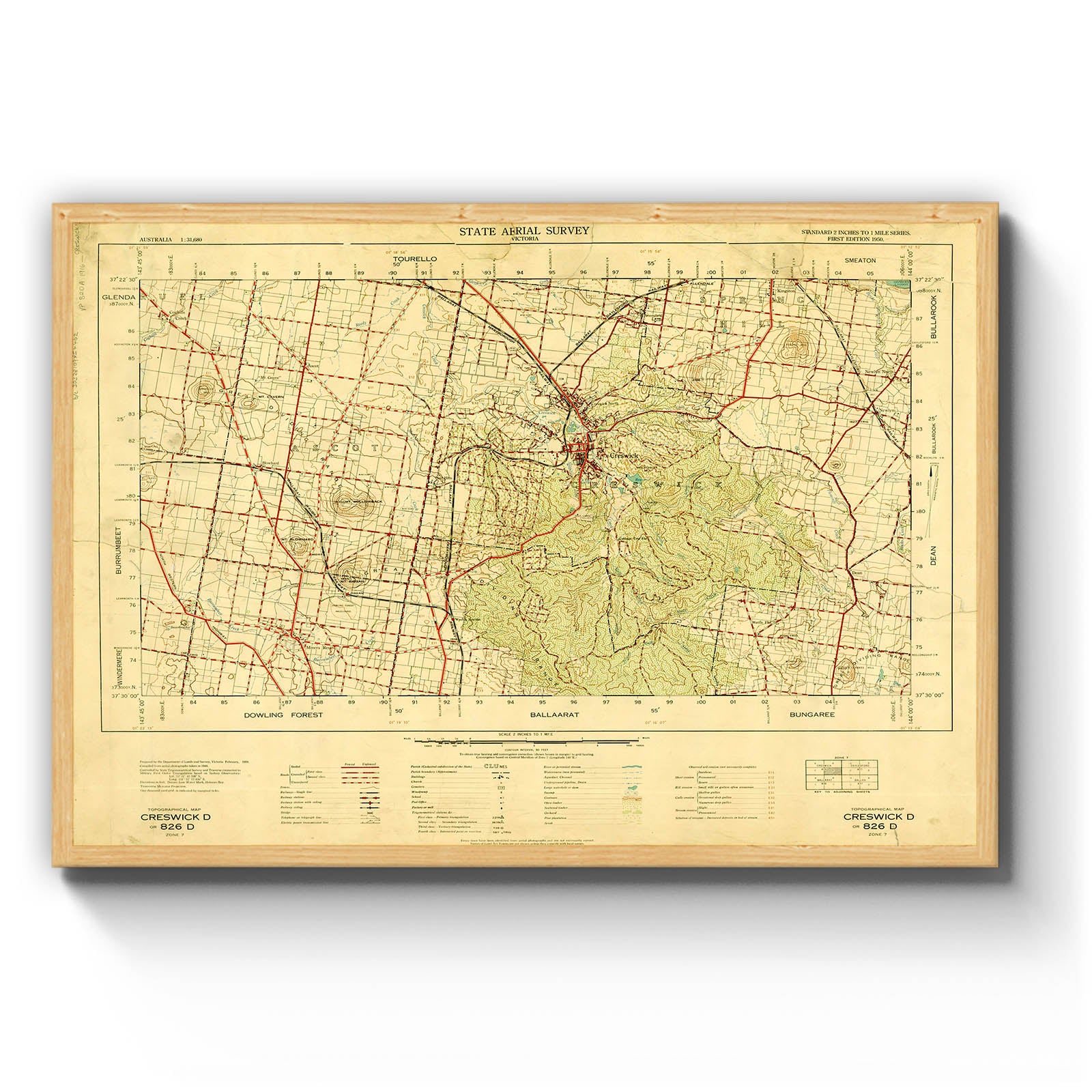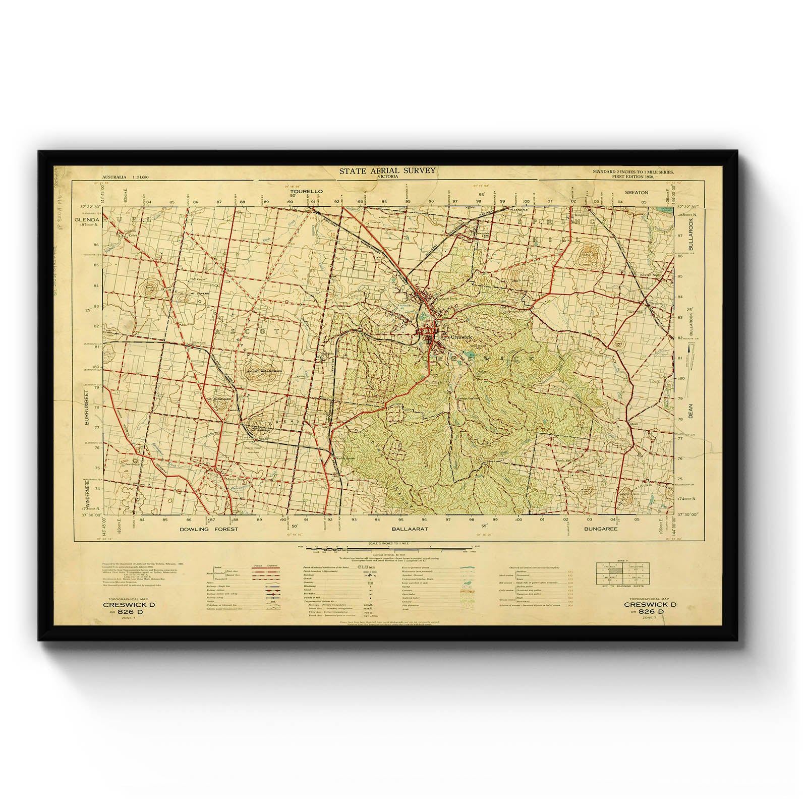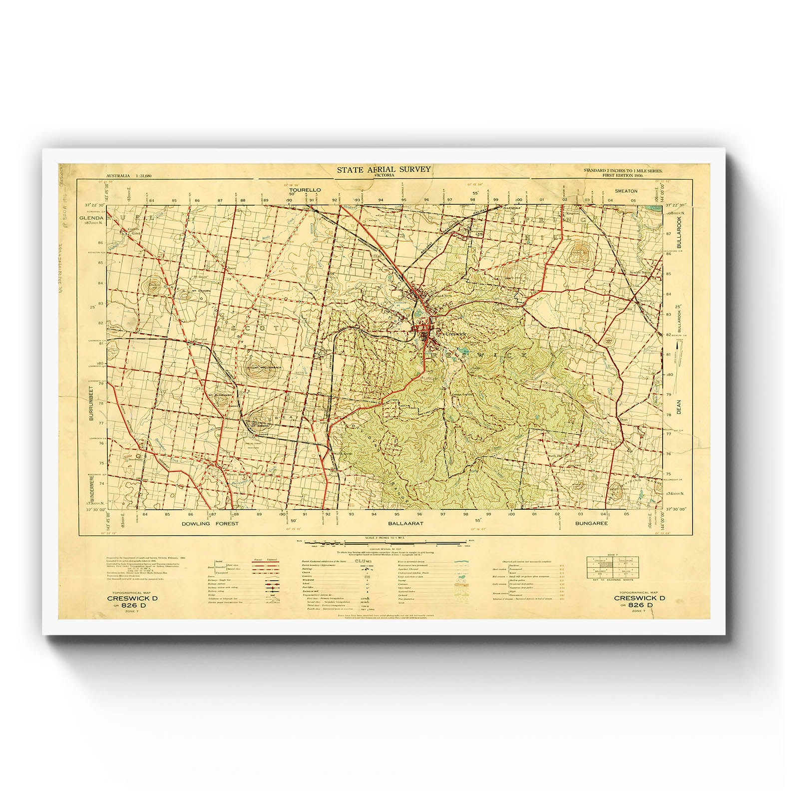 Australia 1:31,680 state aerial survey Victoria : standard 2 inches to 1 mile series topographical map. 826 D, Creswick D [cartographic material] / prepared by the Department of Crown Lands and Survey, Victoria. 1950 Compiled from aerial photography flown 1946.; Topographic map with relief shown by contours.