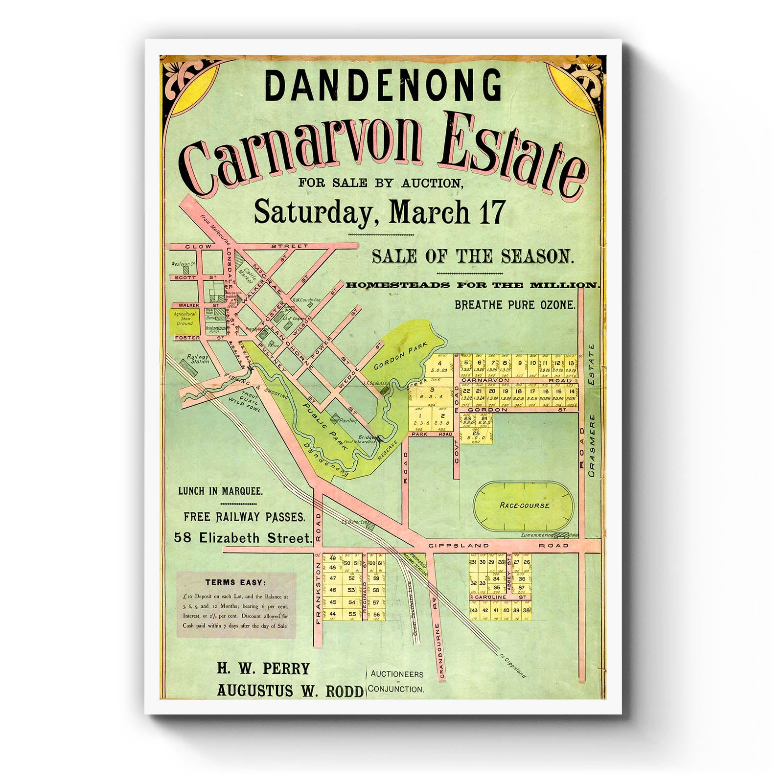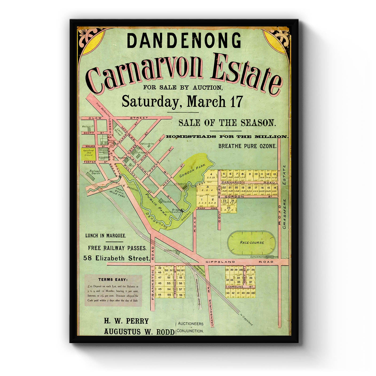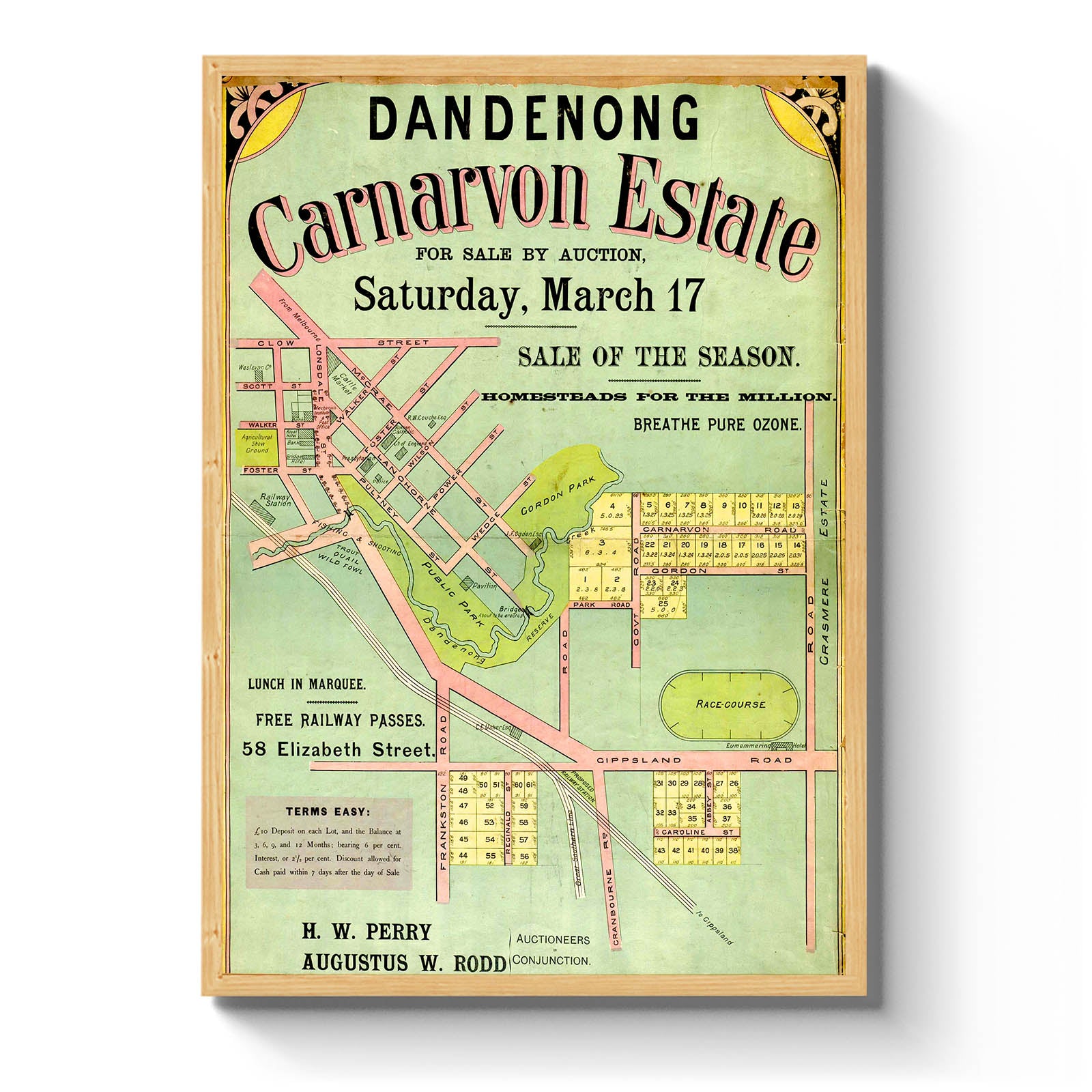 Recently moving to Harcourt and being interested in the history of the area, it seemed fitting to purchase a vintage map of the area which is displayed on our kitchen wall for us to study easily, identifying the block of land we bought. Nicely framed too.