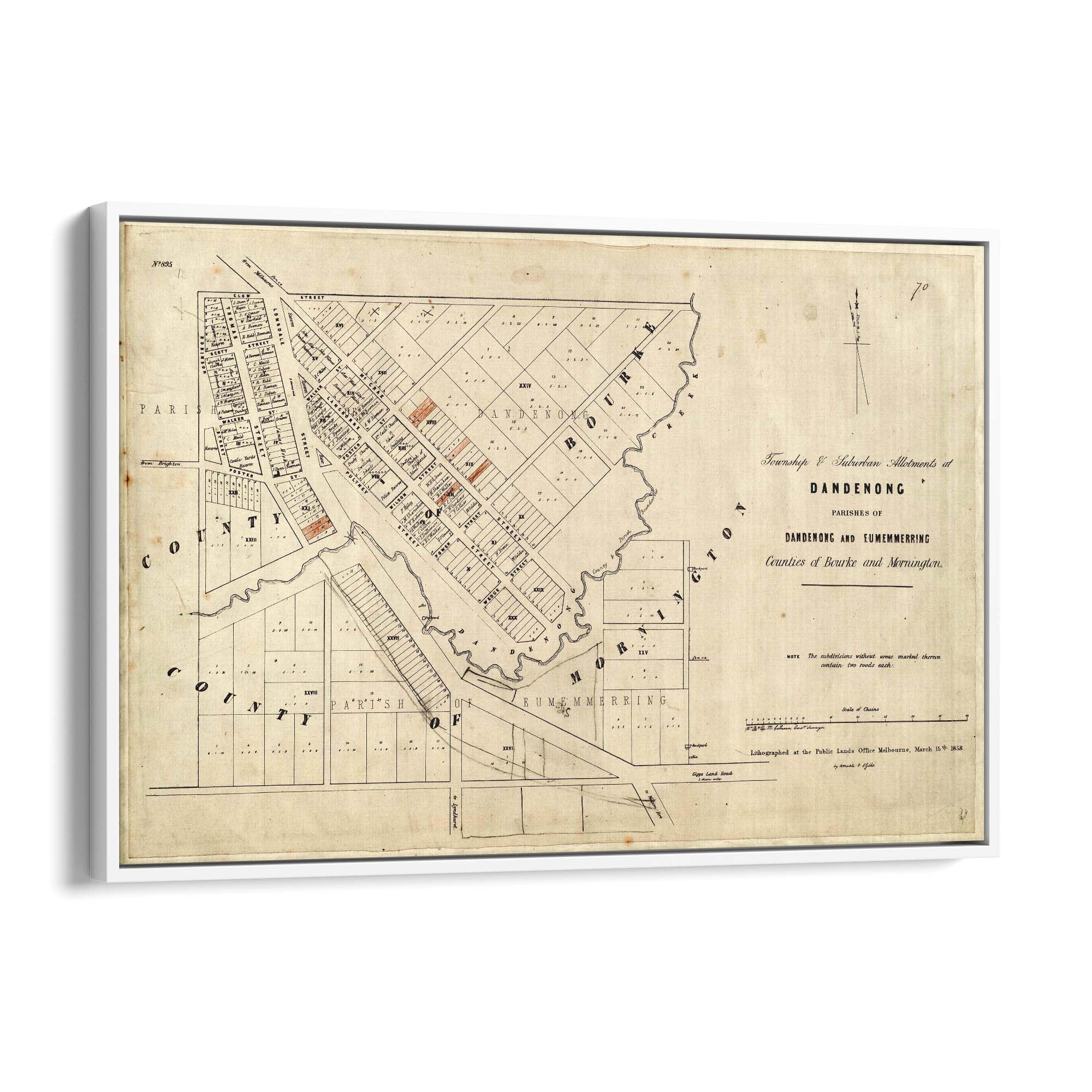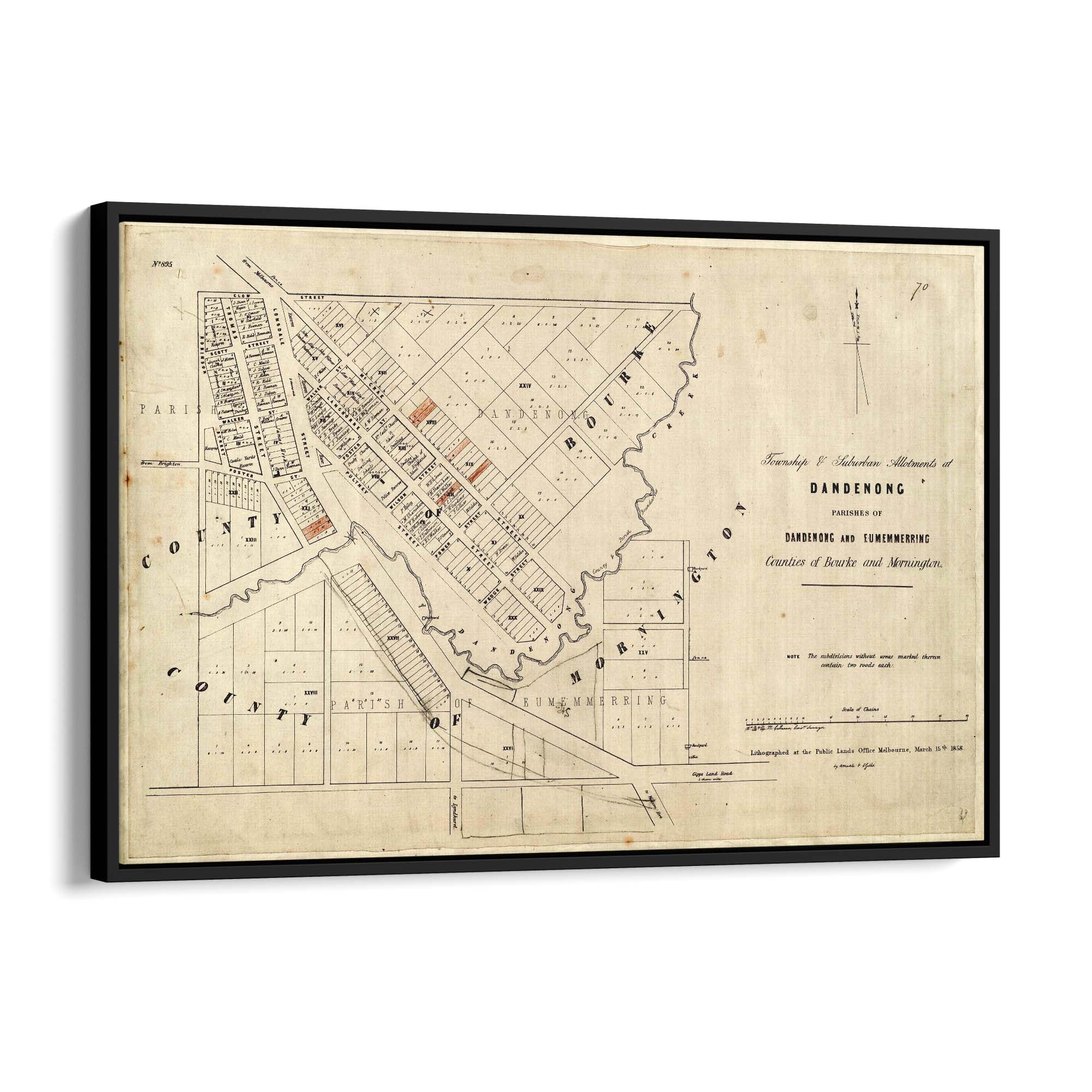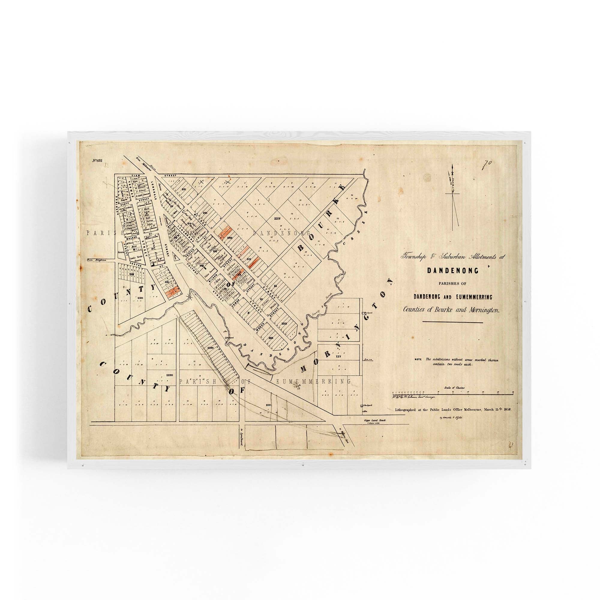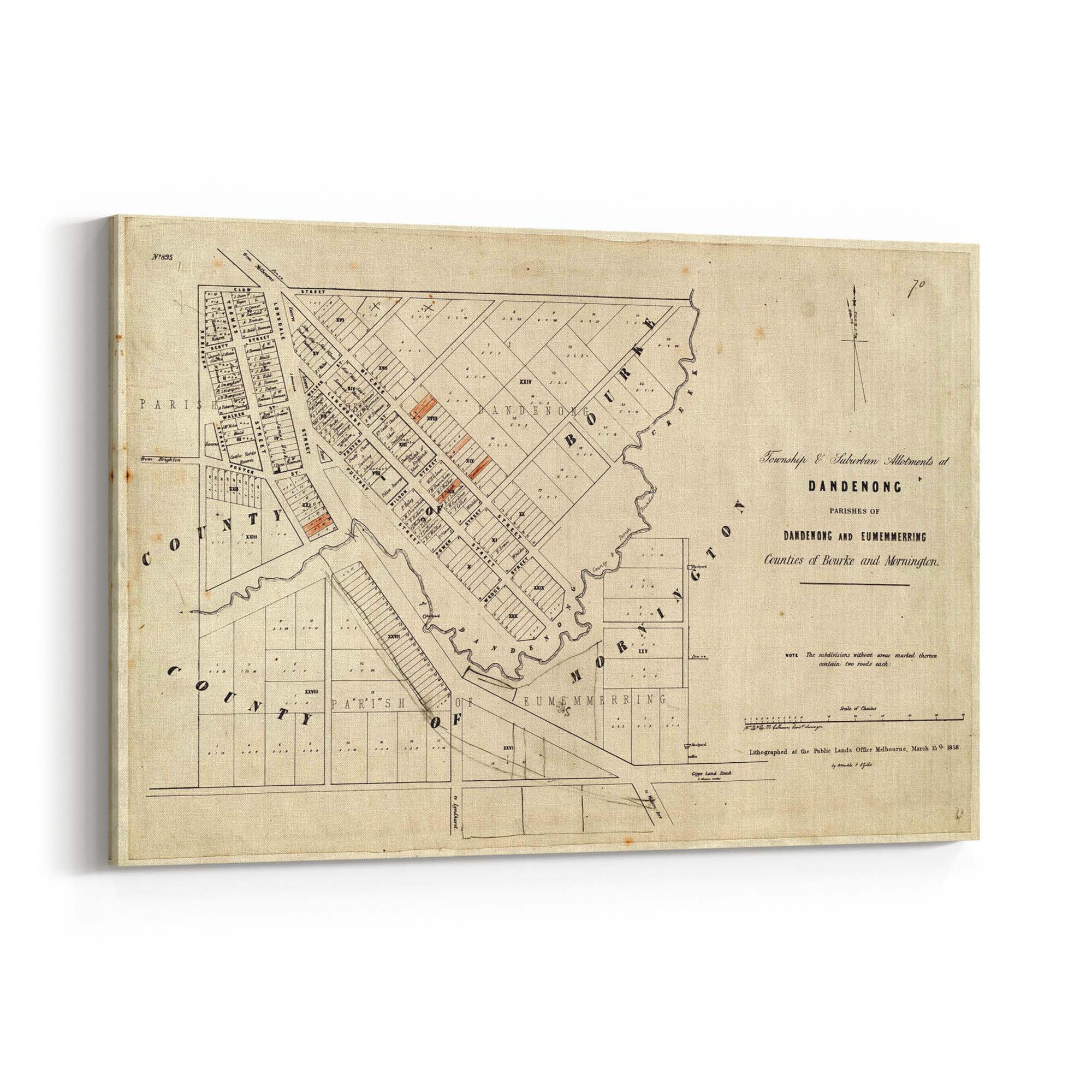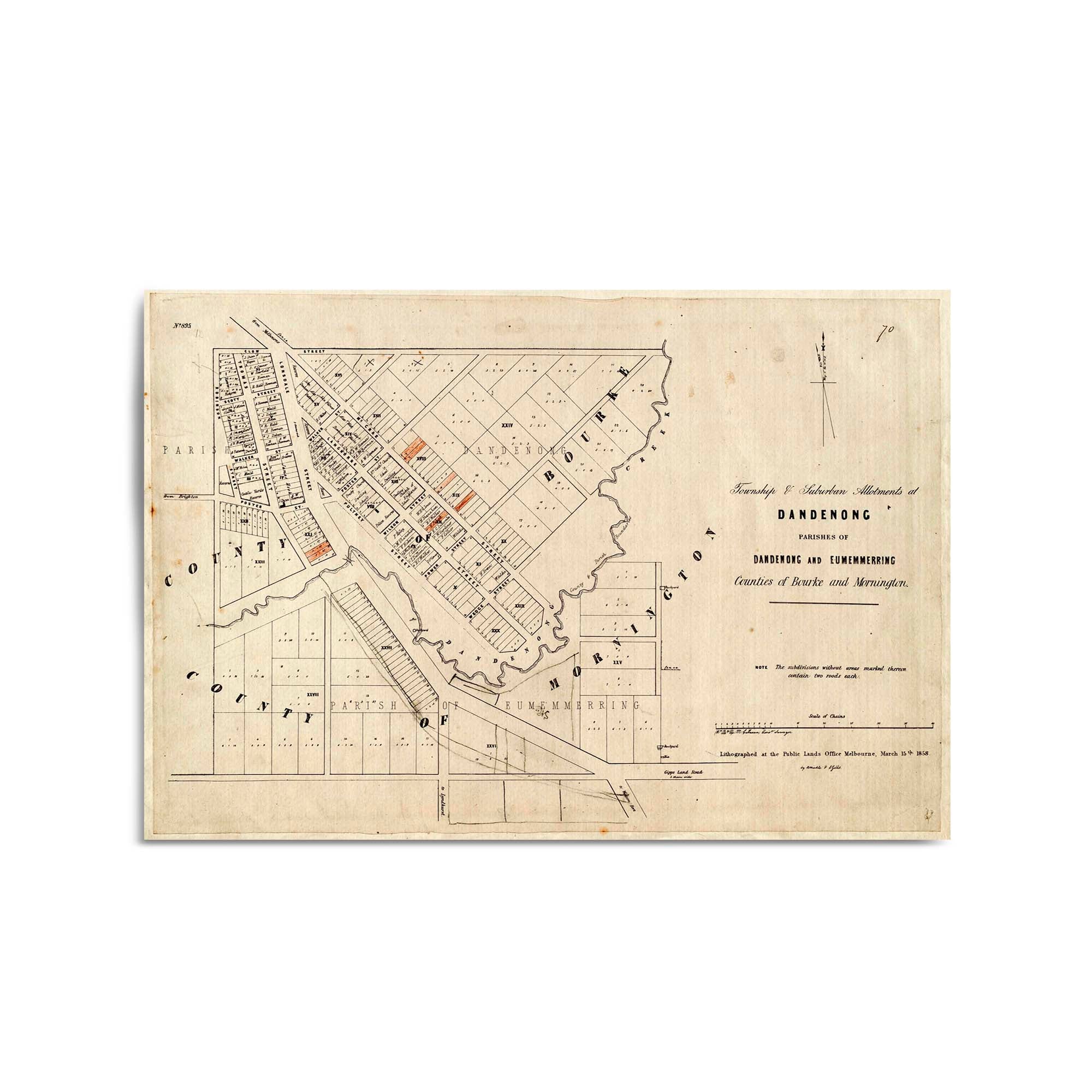 Township and suburban allotments at Dandenong. 1858.