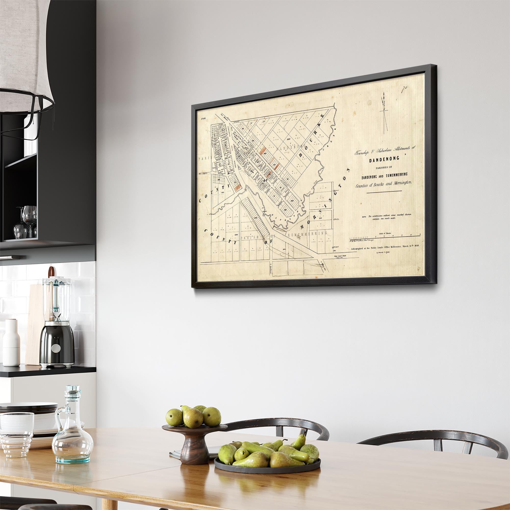 1858 Vintage Map of Dandenong, Victoria Australia