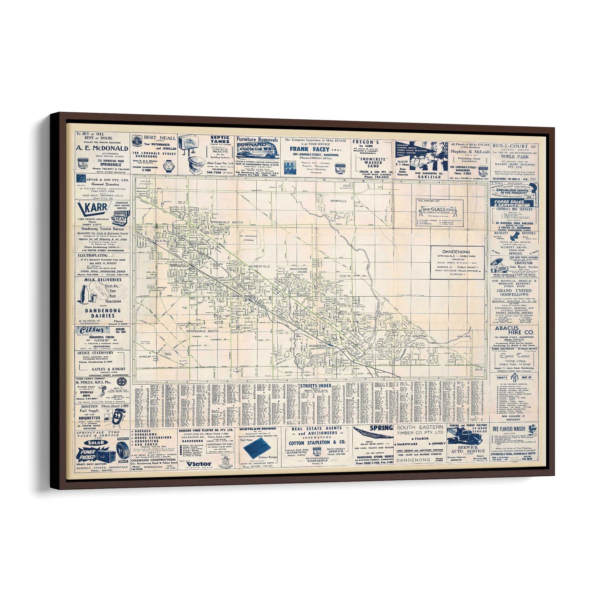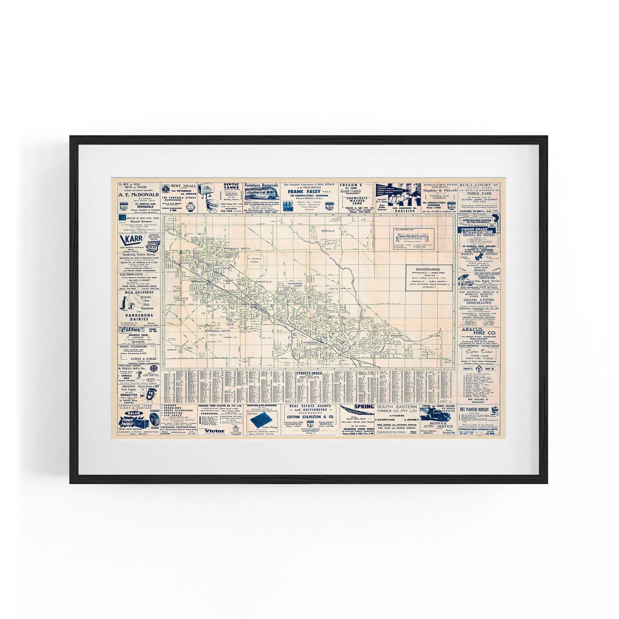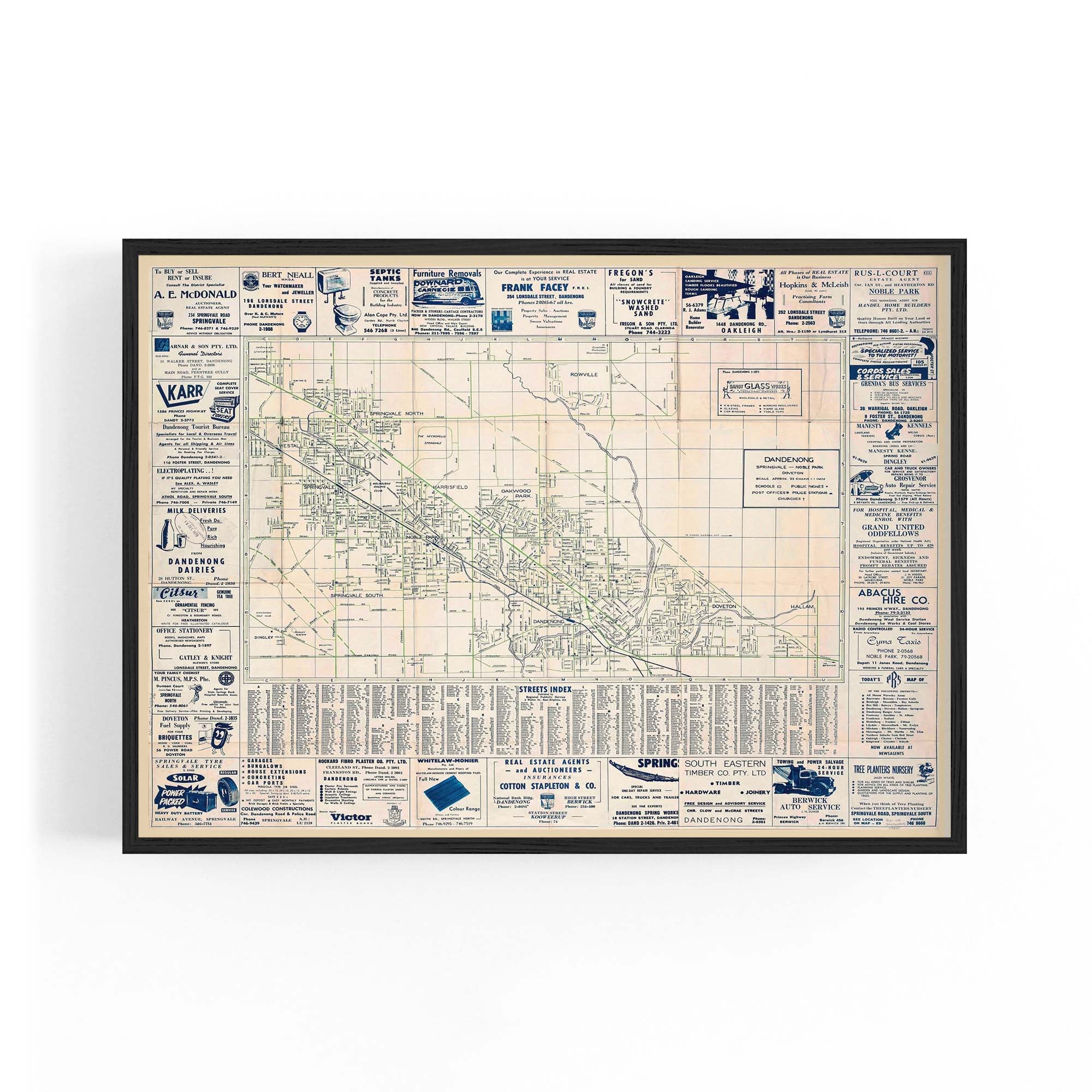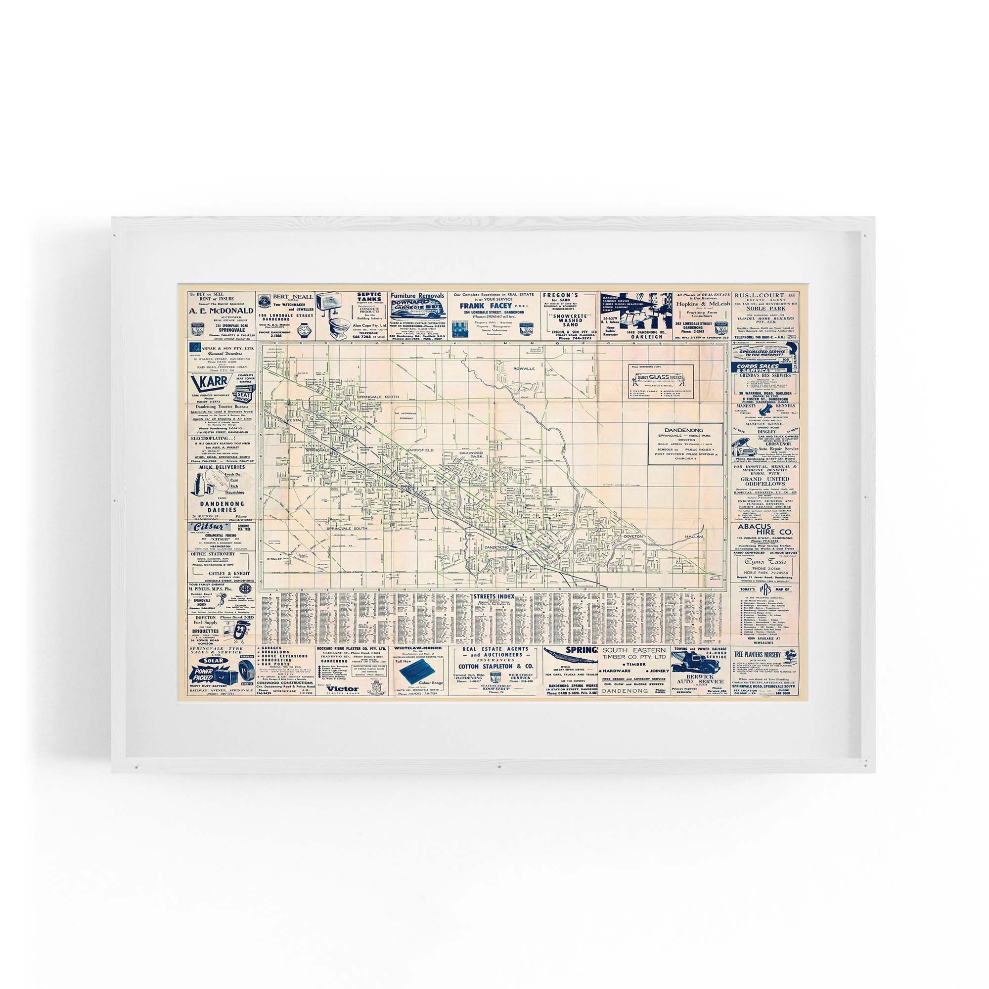 1960's Vintage Map of Dandenong, Victoria Australia