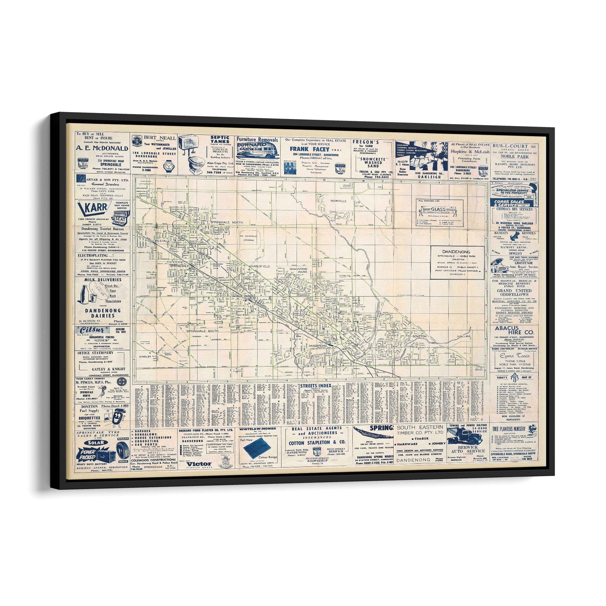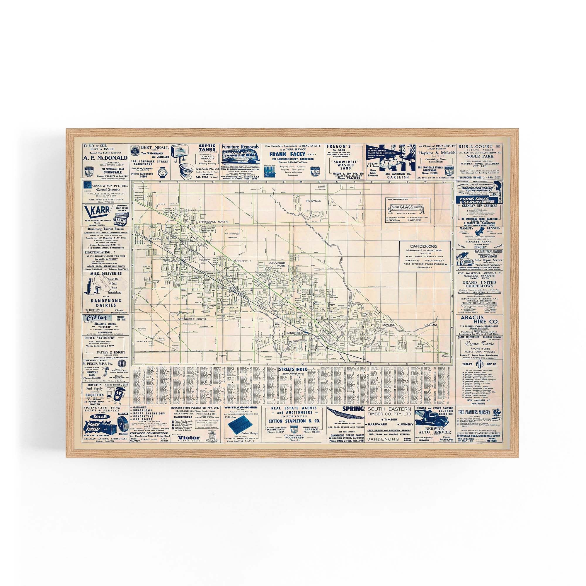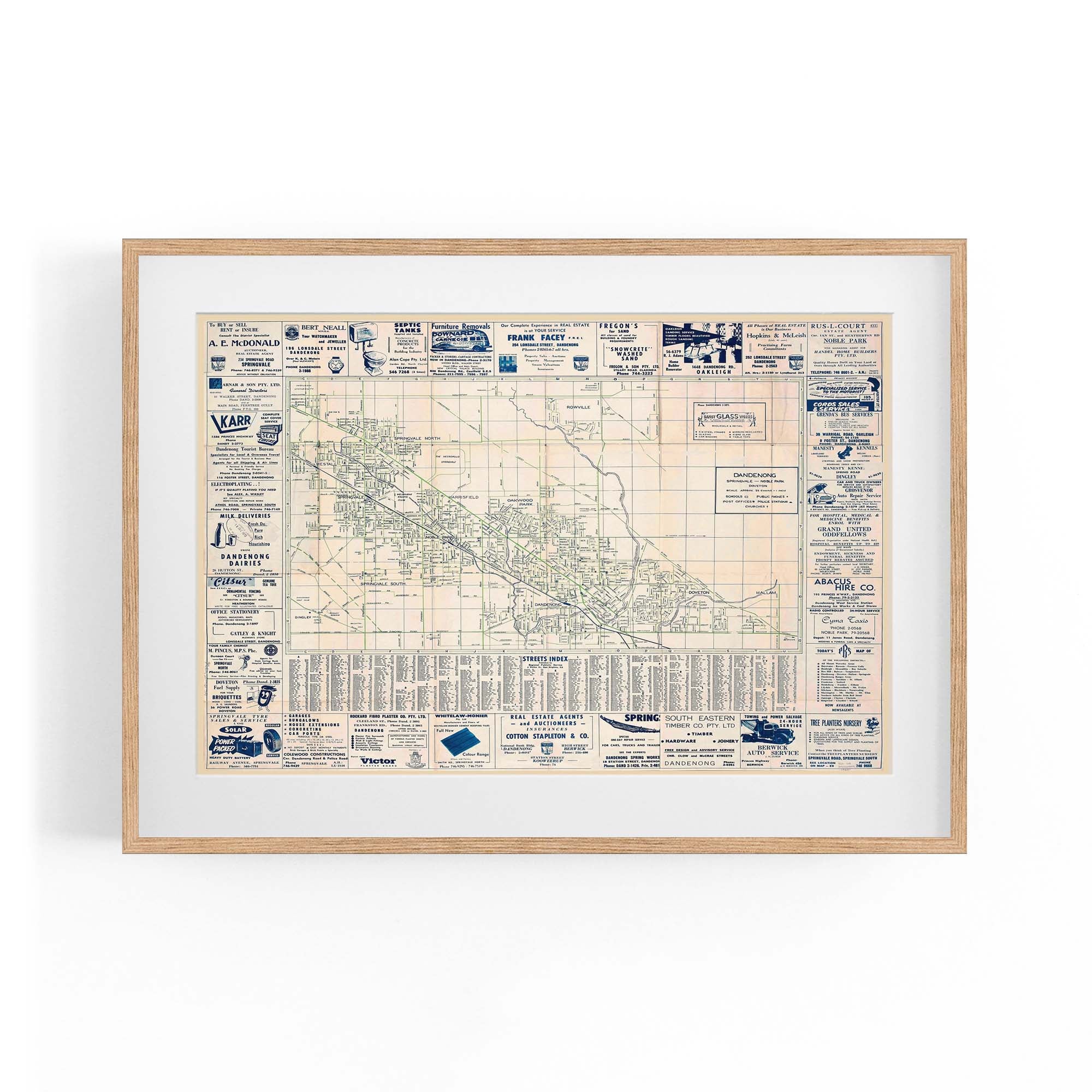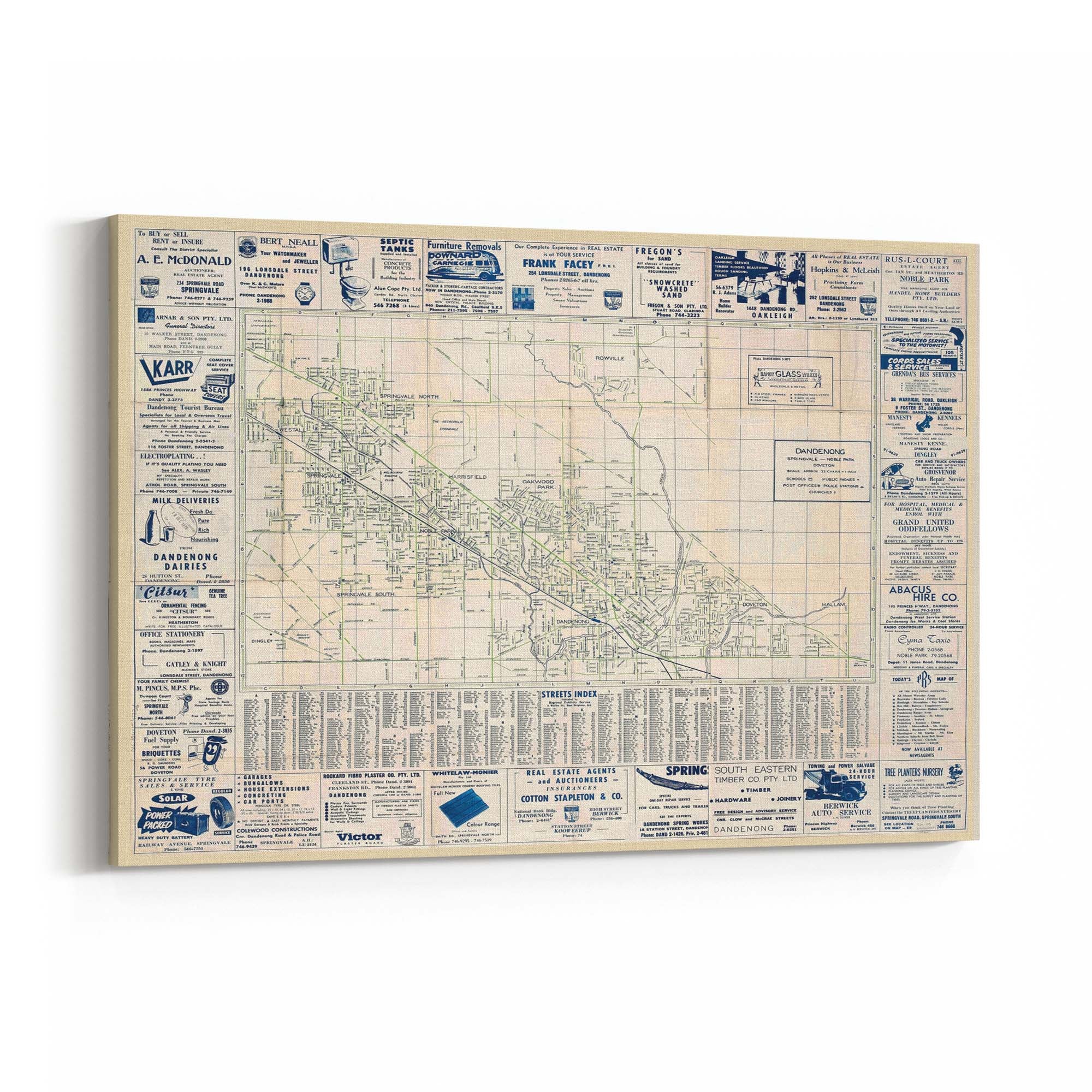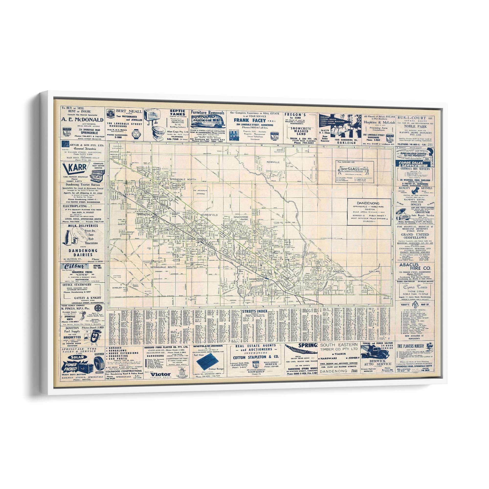 1960's Vintage Map of Dandenong, Victoria Australia