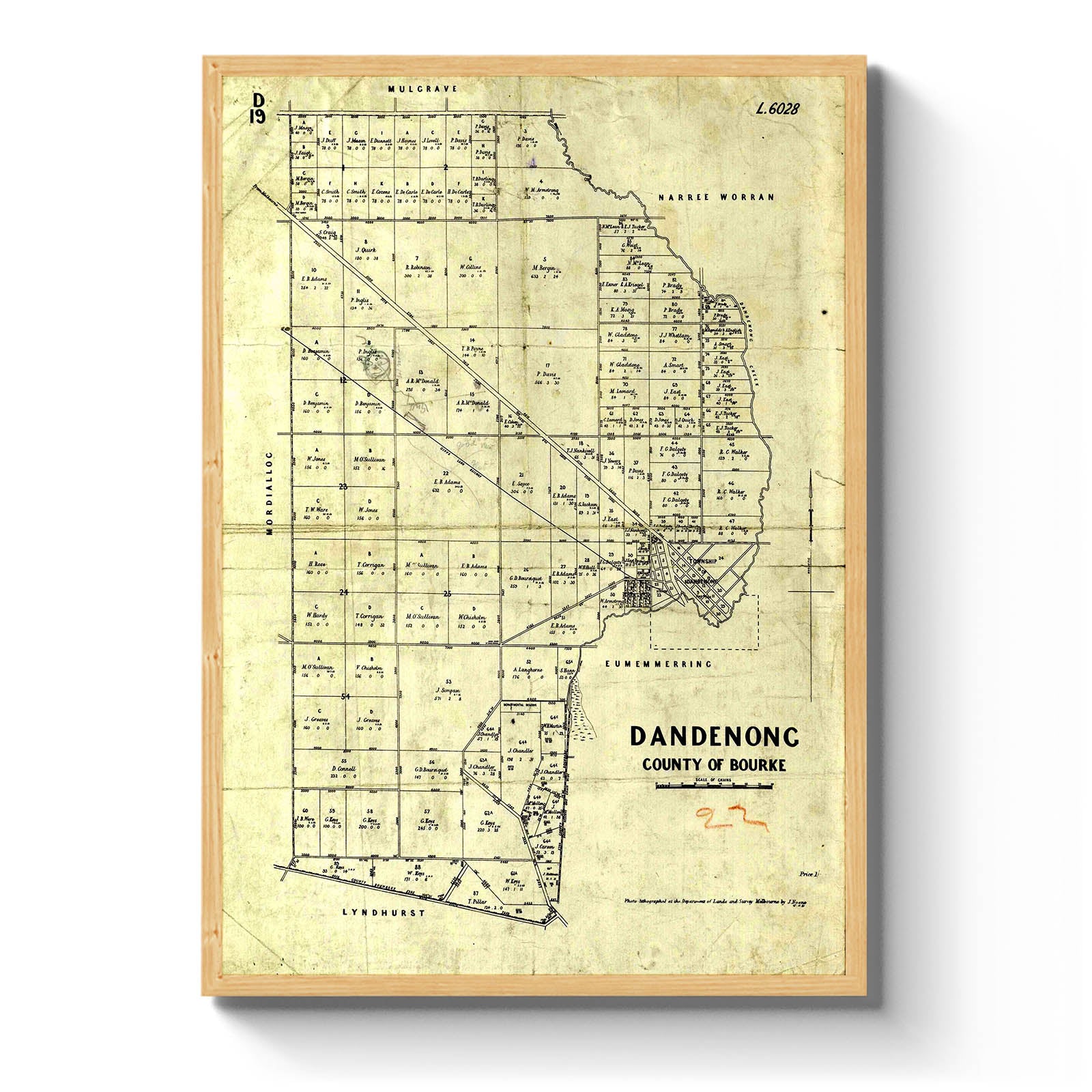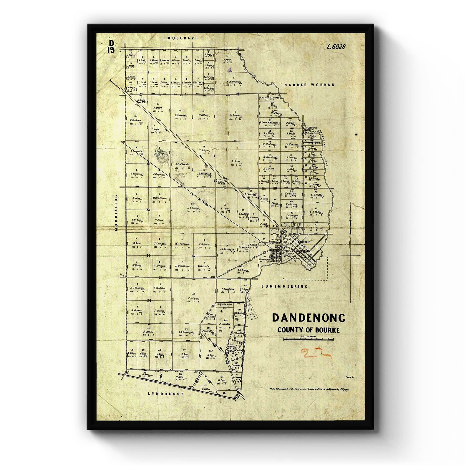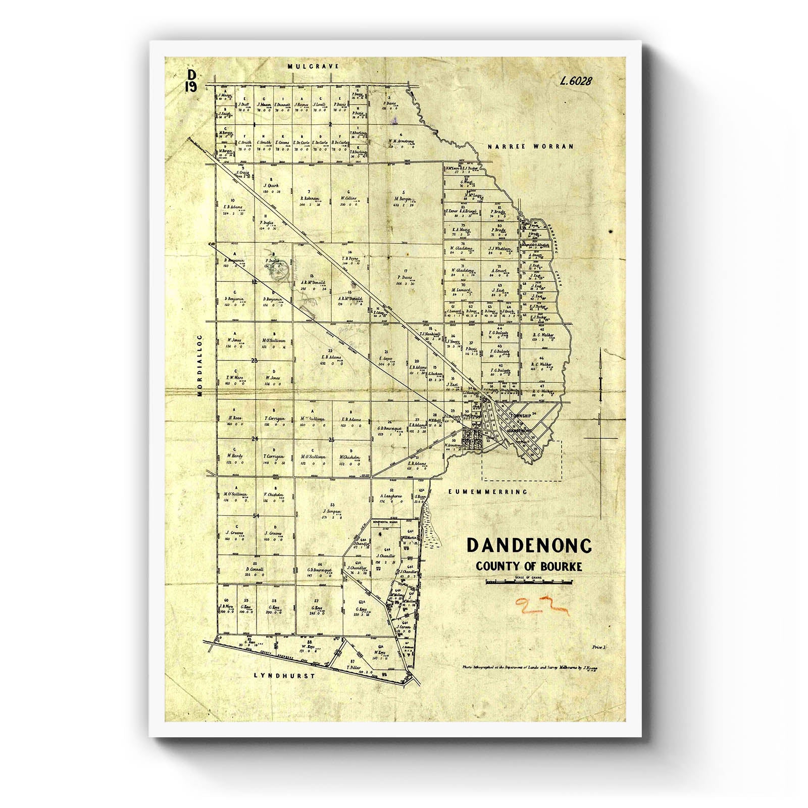 Dandenong, County of Bourke [cartographic material] / photo-lithographed at the Department of Lands and Survey, Melbourne, by J. Noone 15. 11. 81. 1881.
