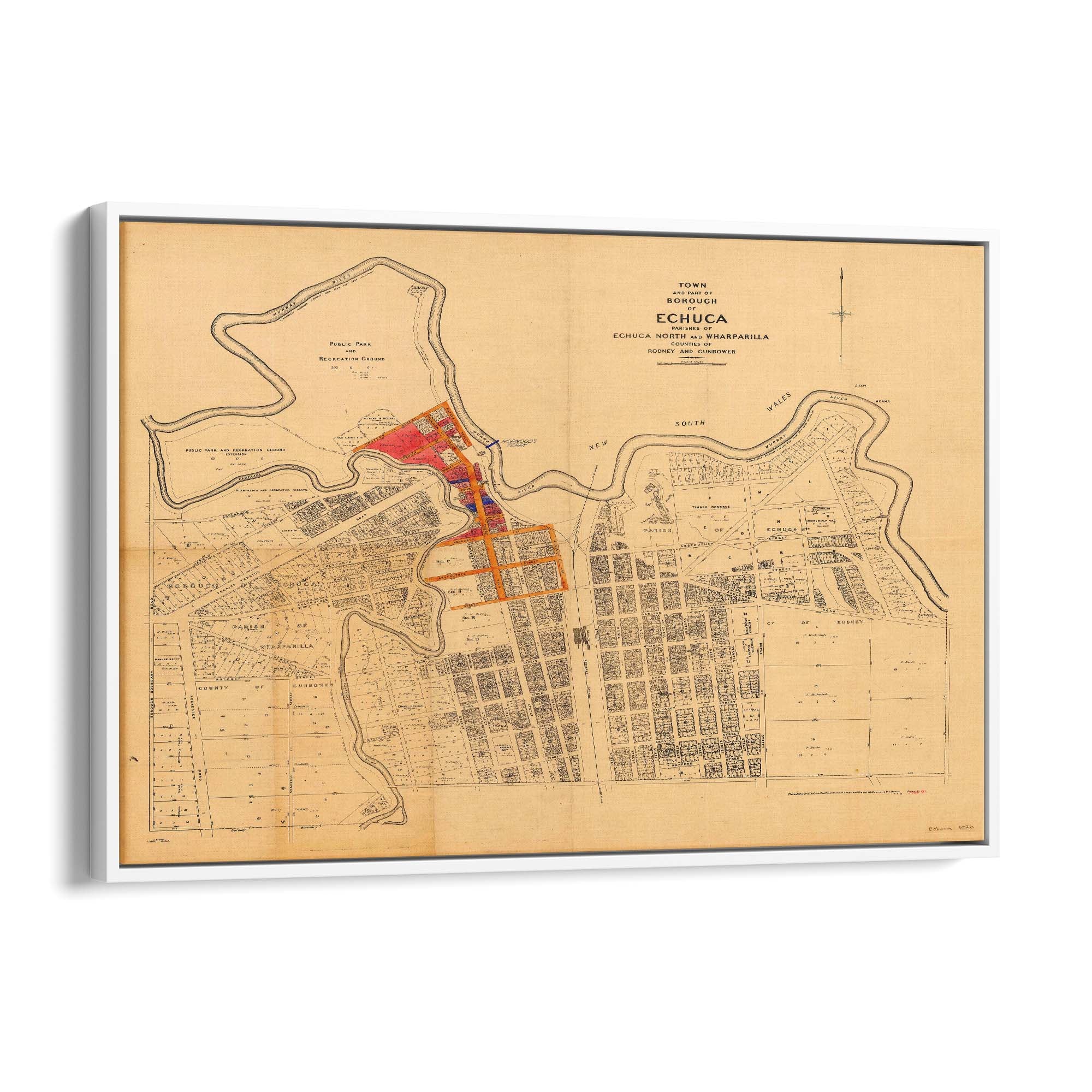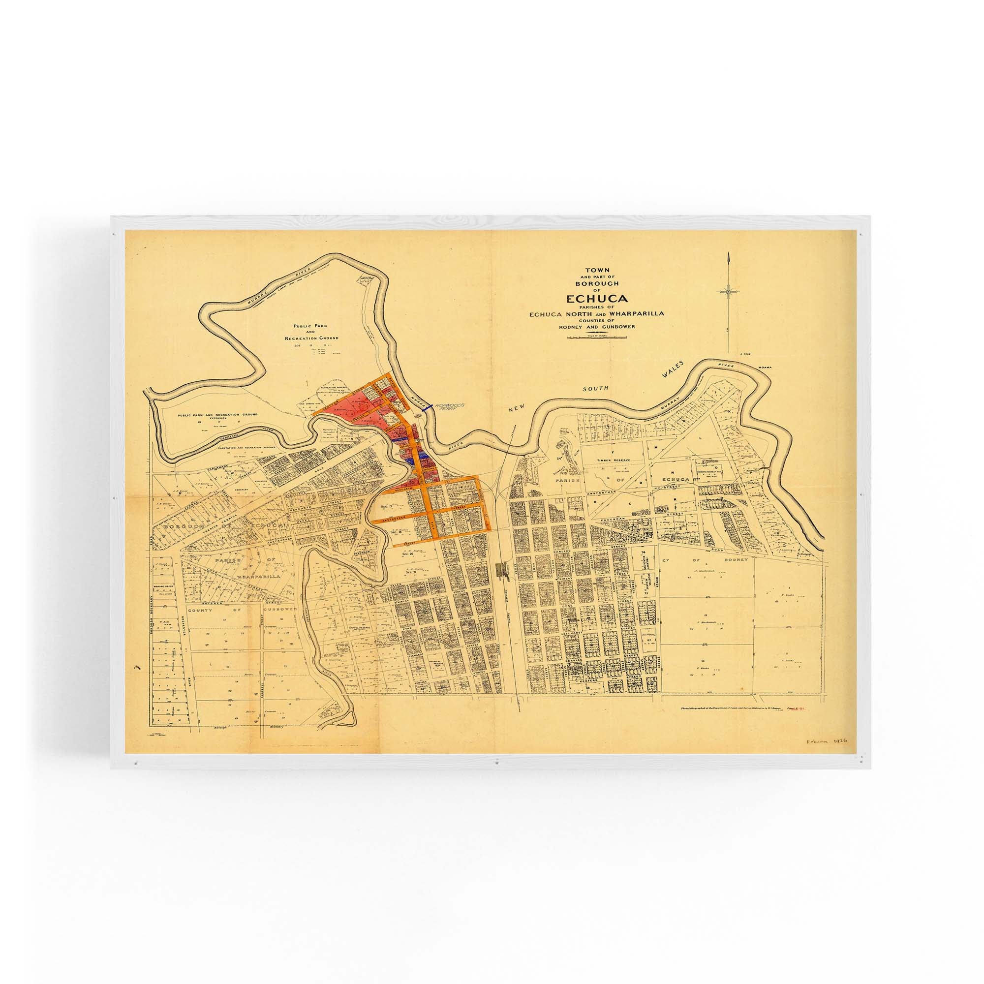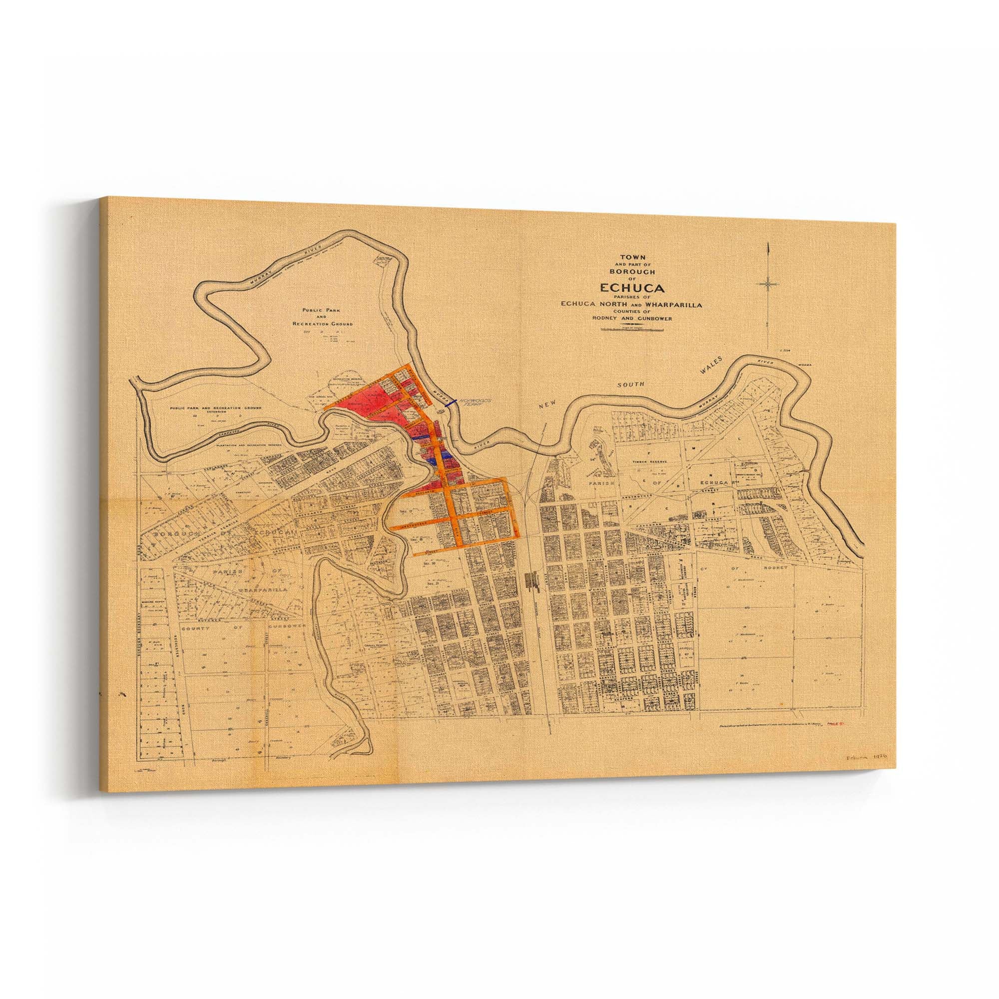 Town and part of Borough of Echuca, Parishes of Echuca North and Wharparilla, Counties of Rodney and Gunbower.