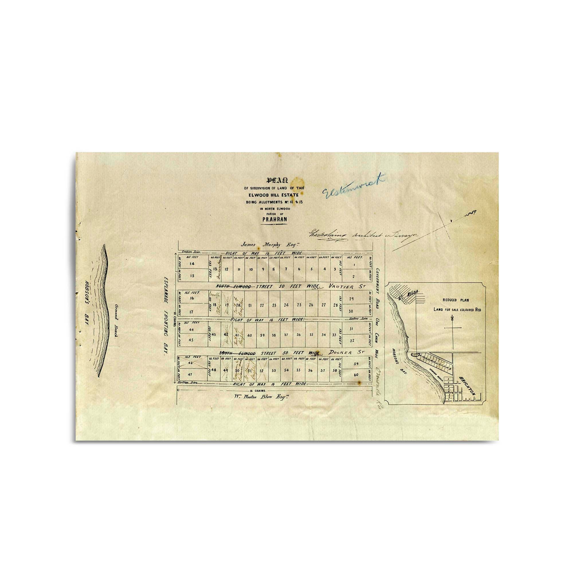Plan of subdivision of land of the Elwood Hill Estate being allotments no. 12 &13.