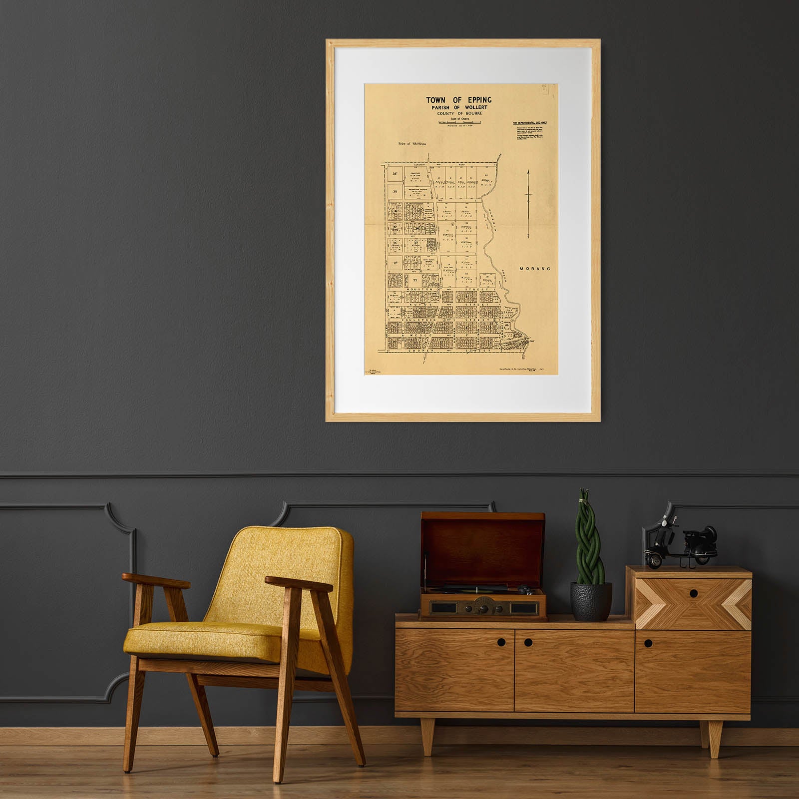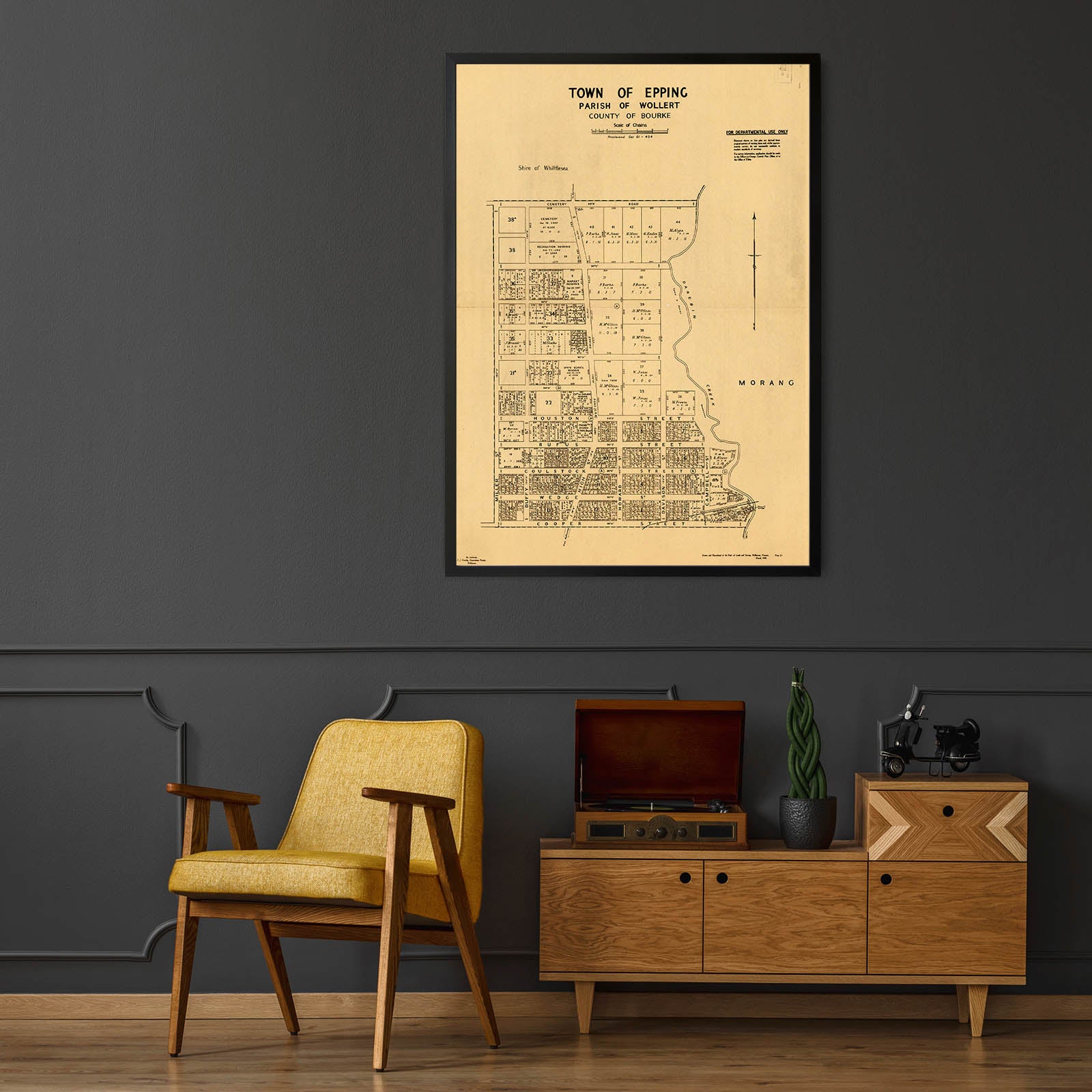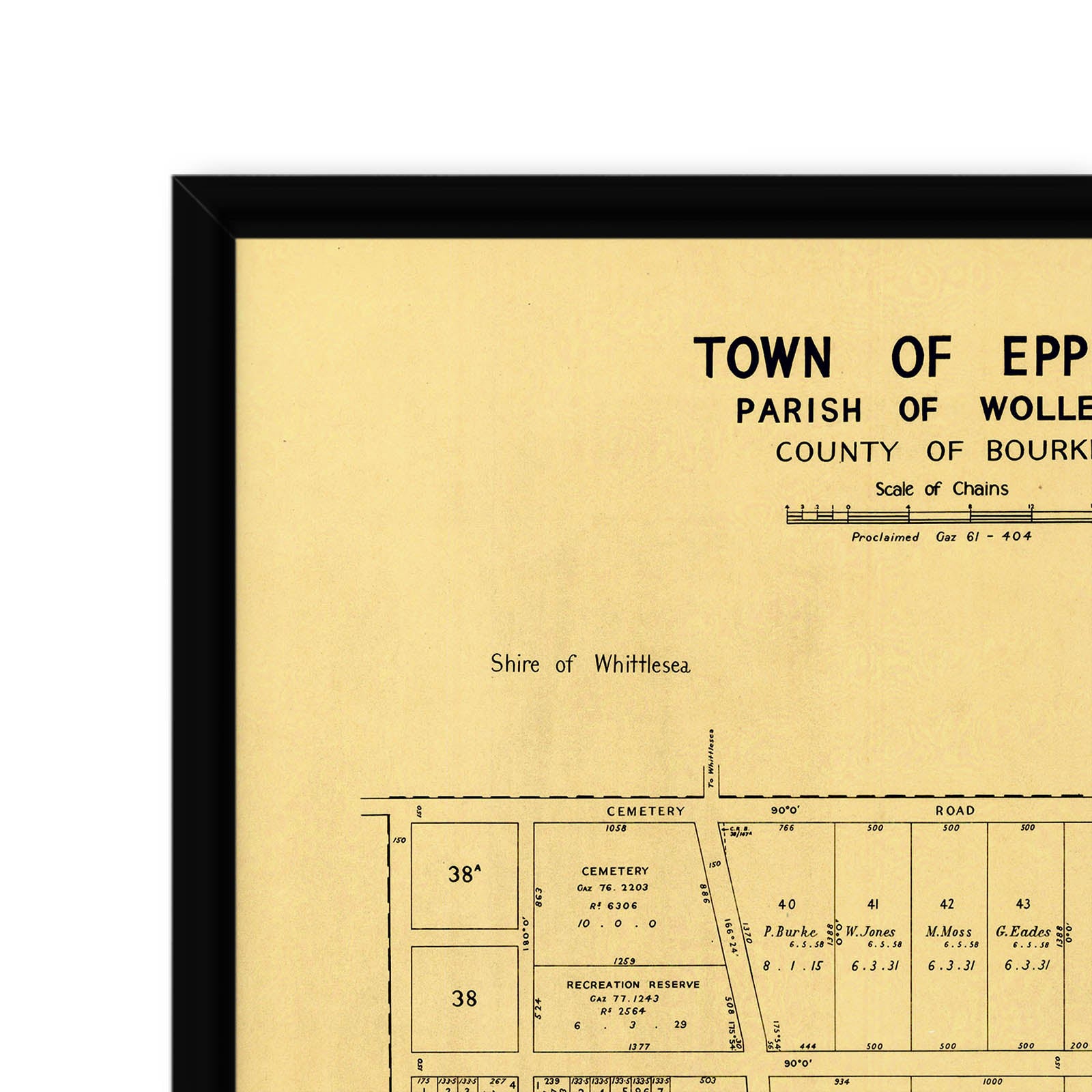 Recently moving to Harcourt and being interested in the history of the area, it seemed fitting to purchase a vintage map of the area which is displayed on our kitchen wall for us to study easily, identifying the block of land we bought. Nicely framed too.