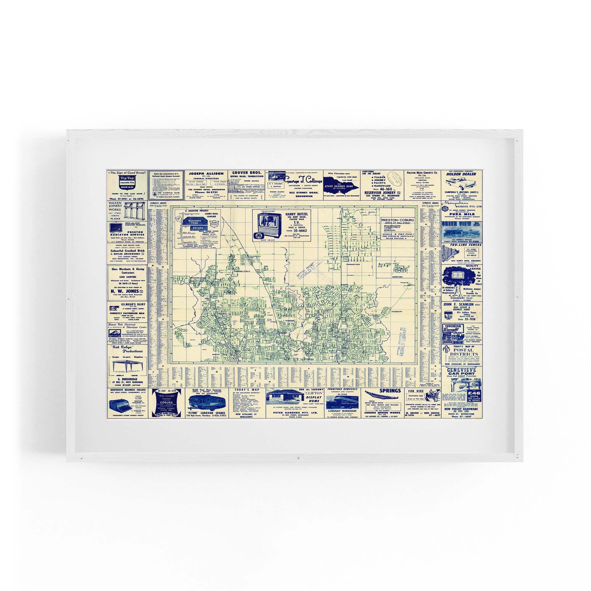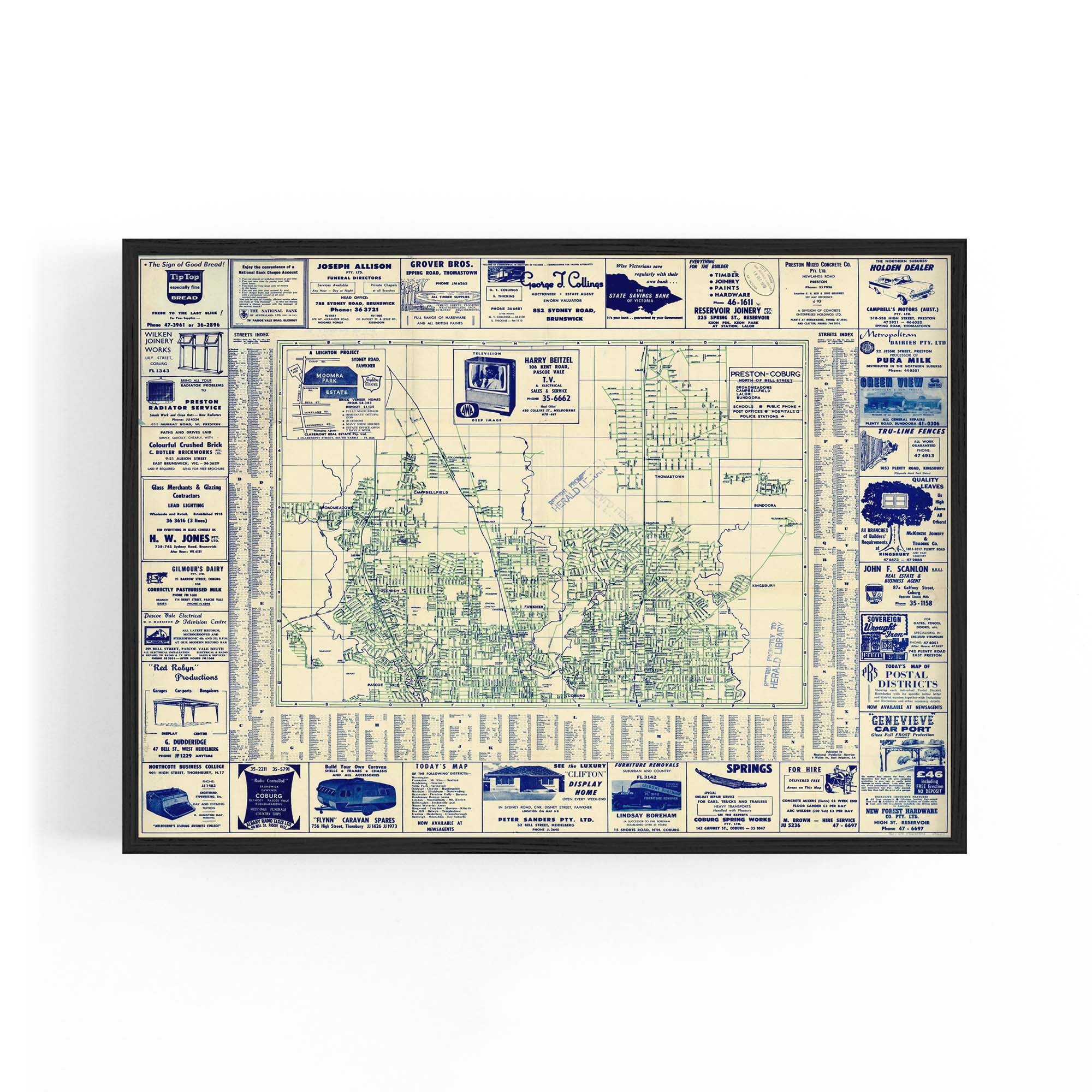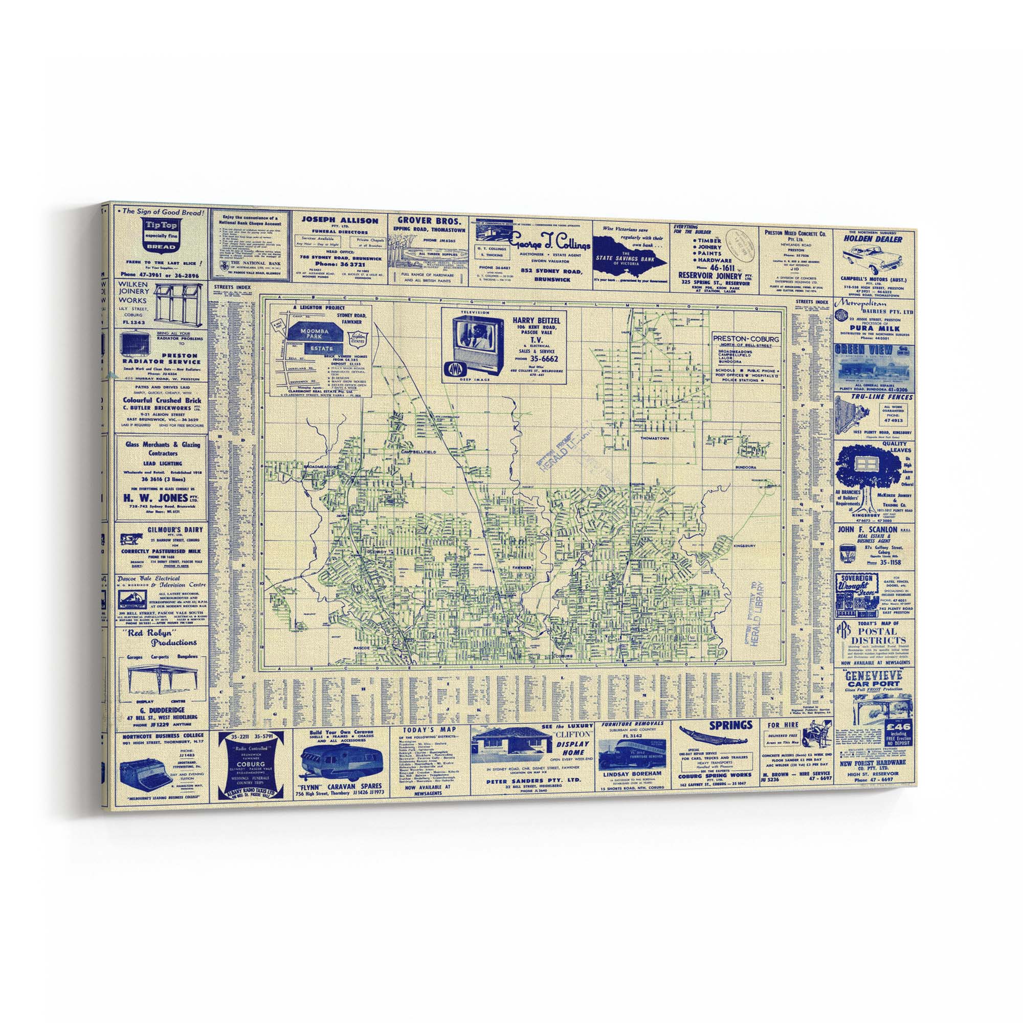 1960's Vintage Map of Fawkner, Glenroy & Preston & Surrounds, Victoria
