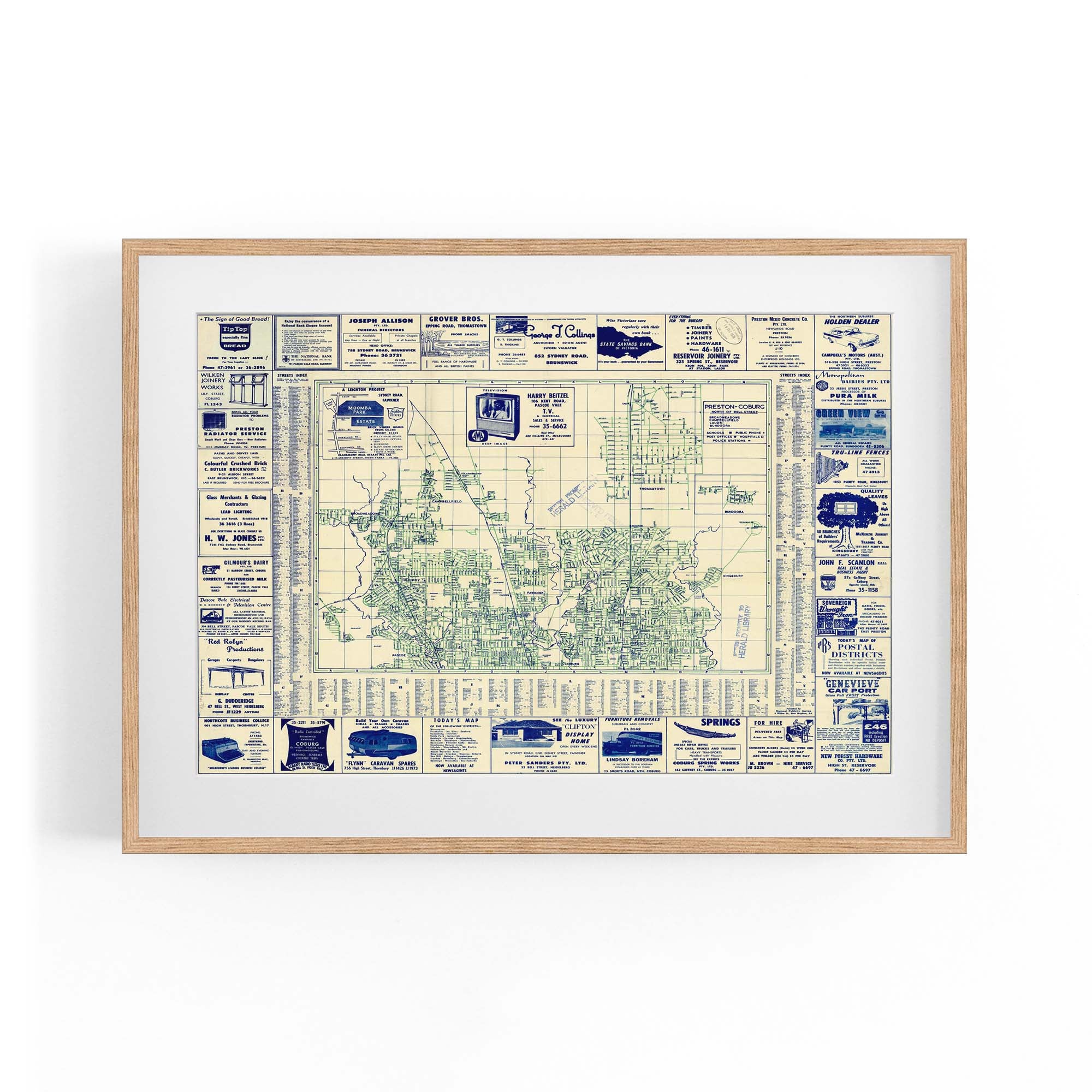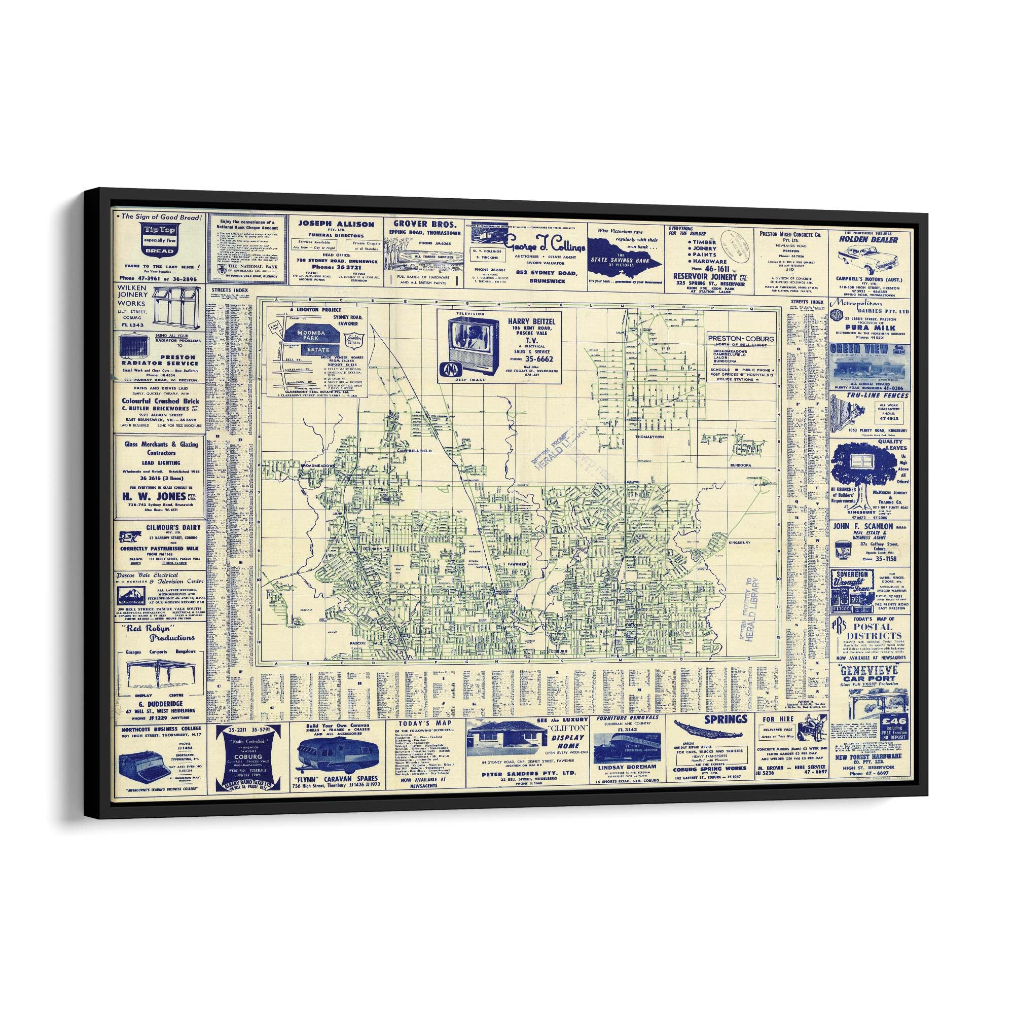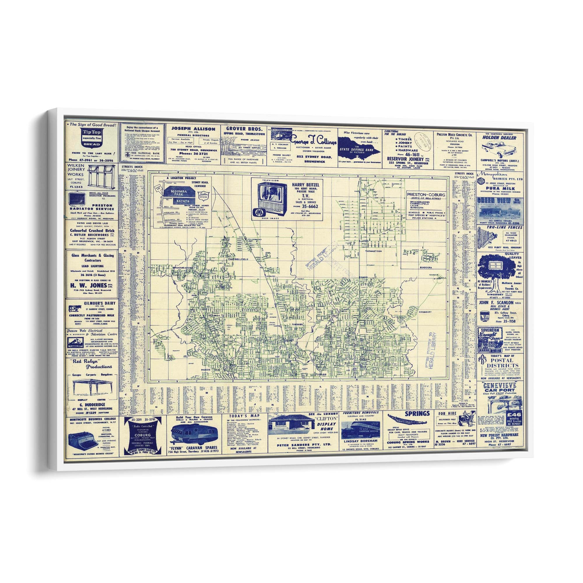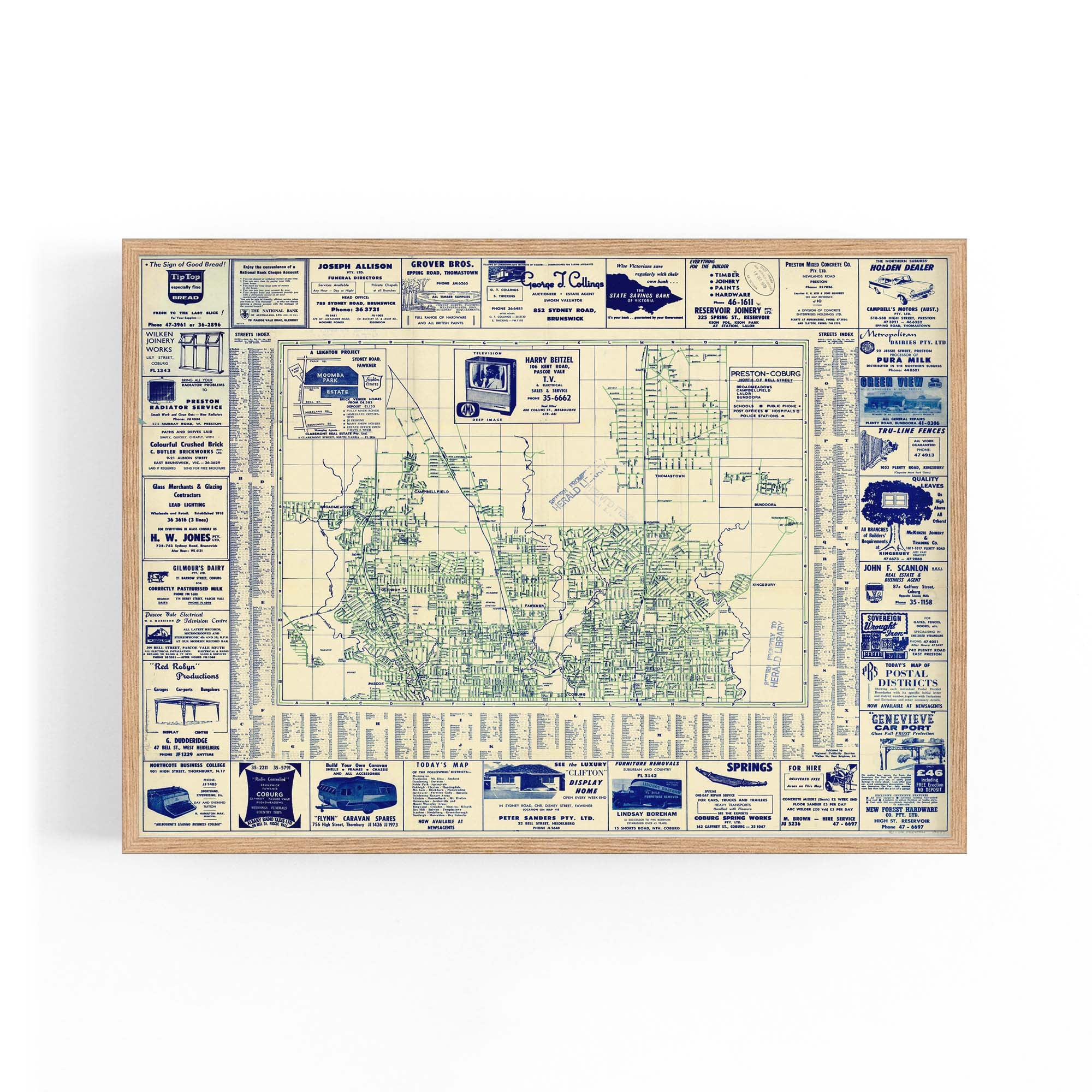 1960's Vintage Map of Fawkner, Glenroy & Preston & Surrounds, Victoria