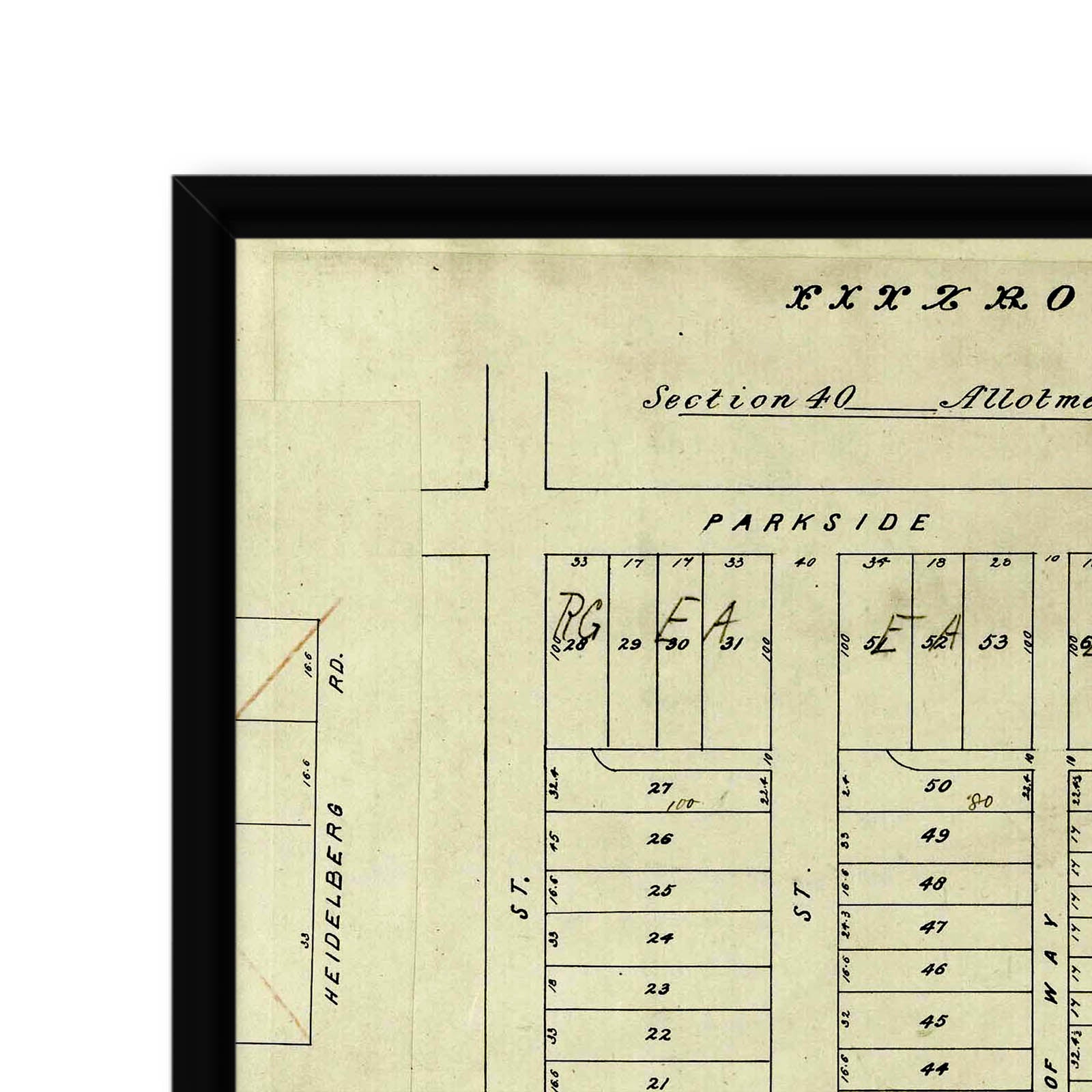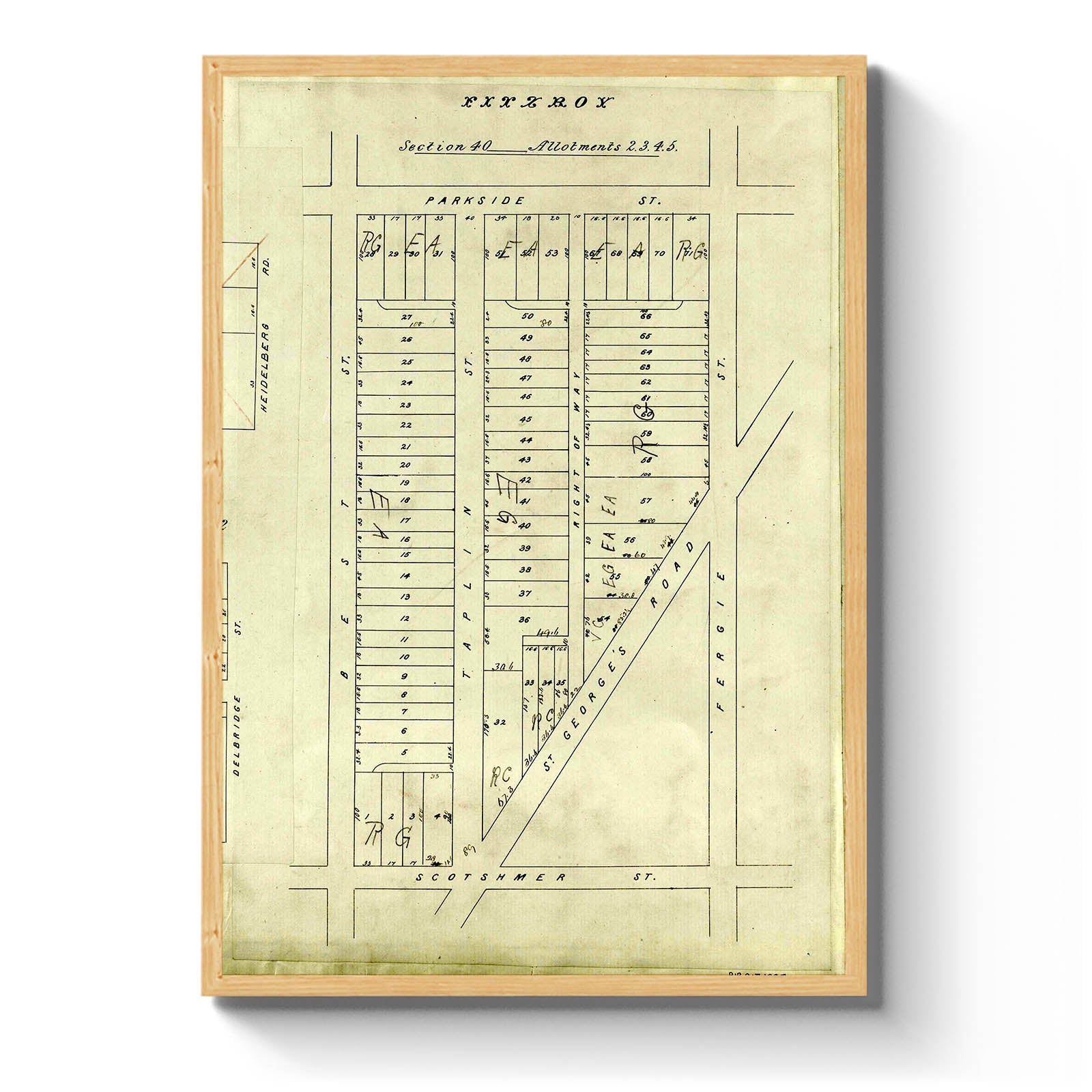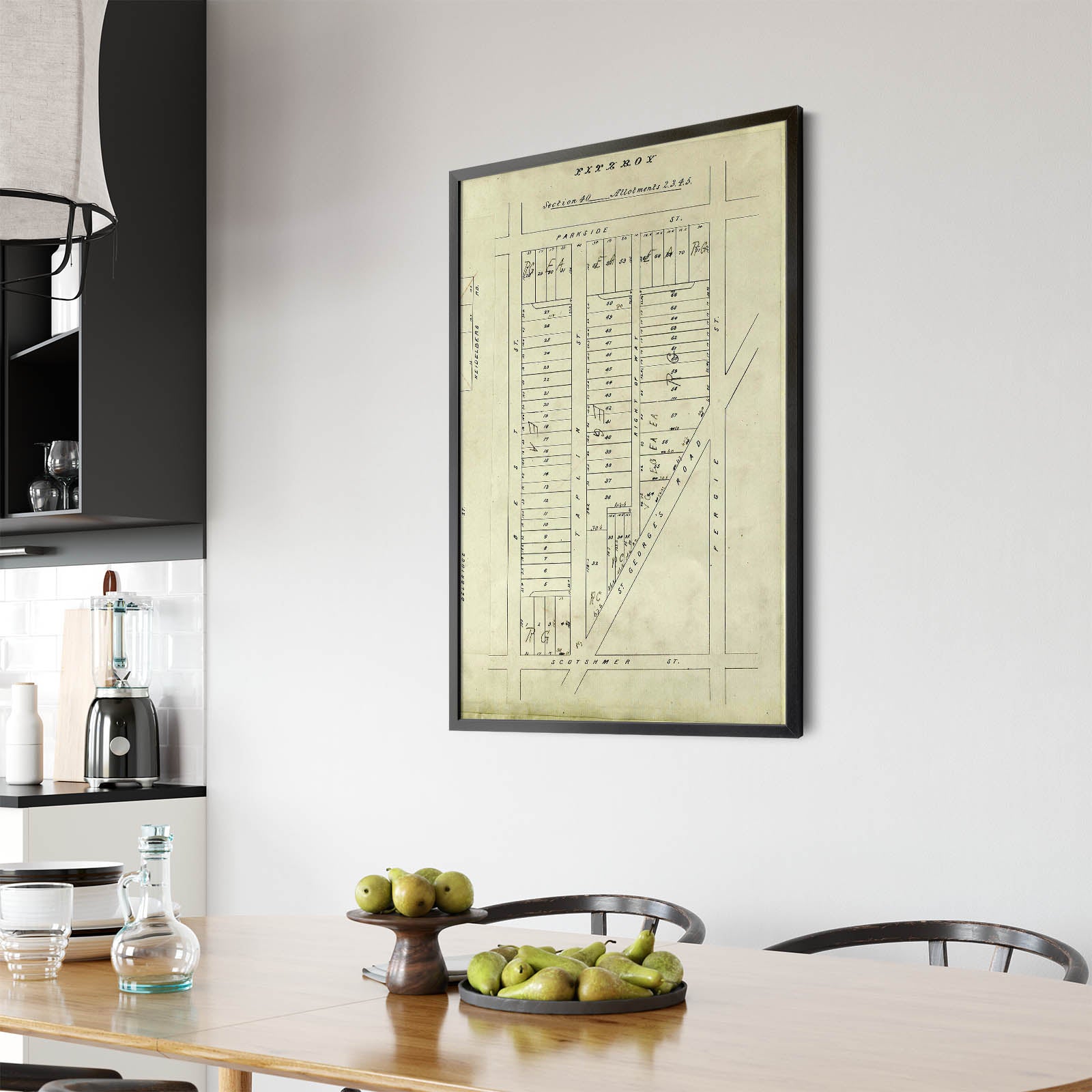 Recently moving to Harcourt and being interested in the history of the area, it seemed fitting to purchase a vintage map of the area which is displayed on our kitchen wall for us to study easily, identifying the block of land we bought. Nicely framed too.