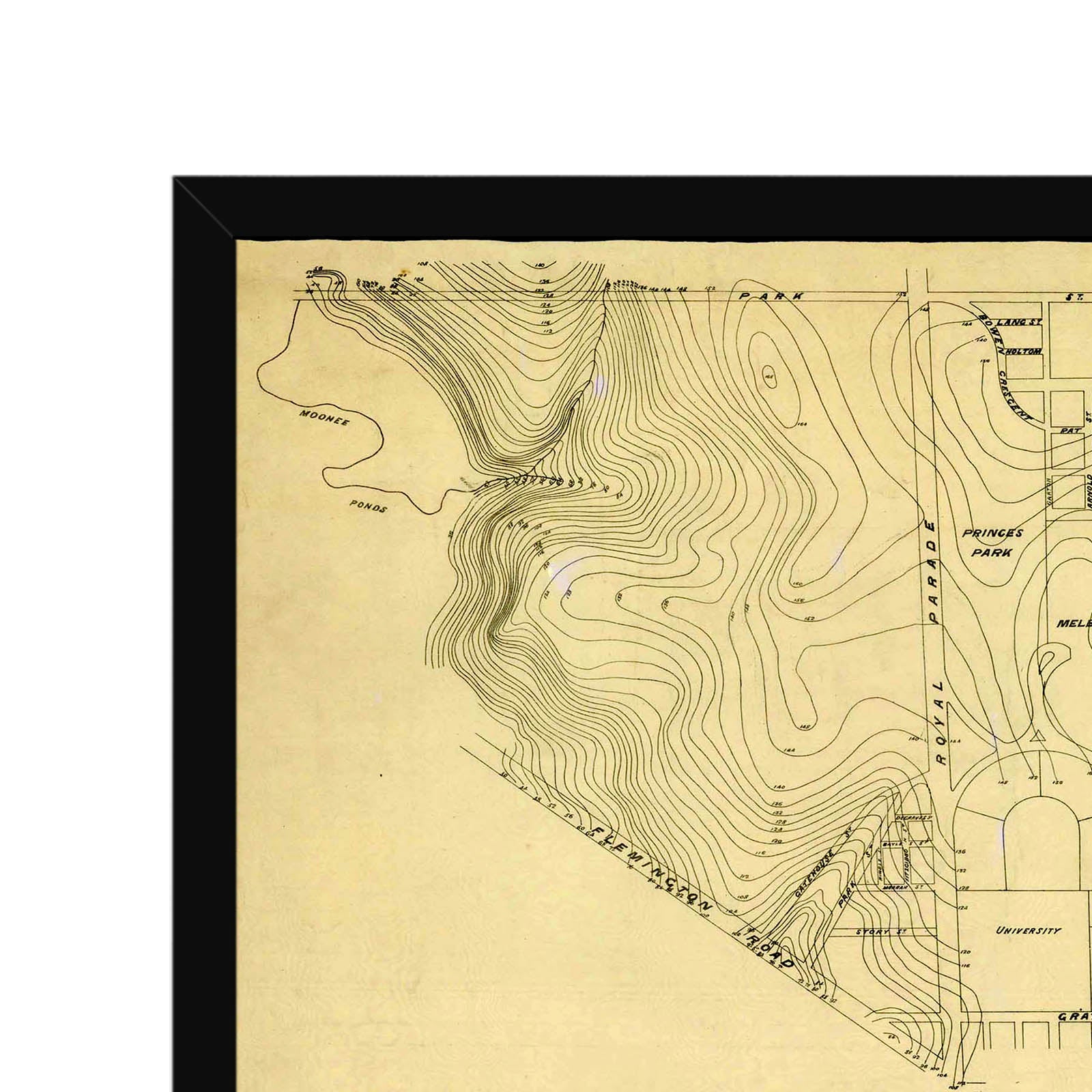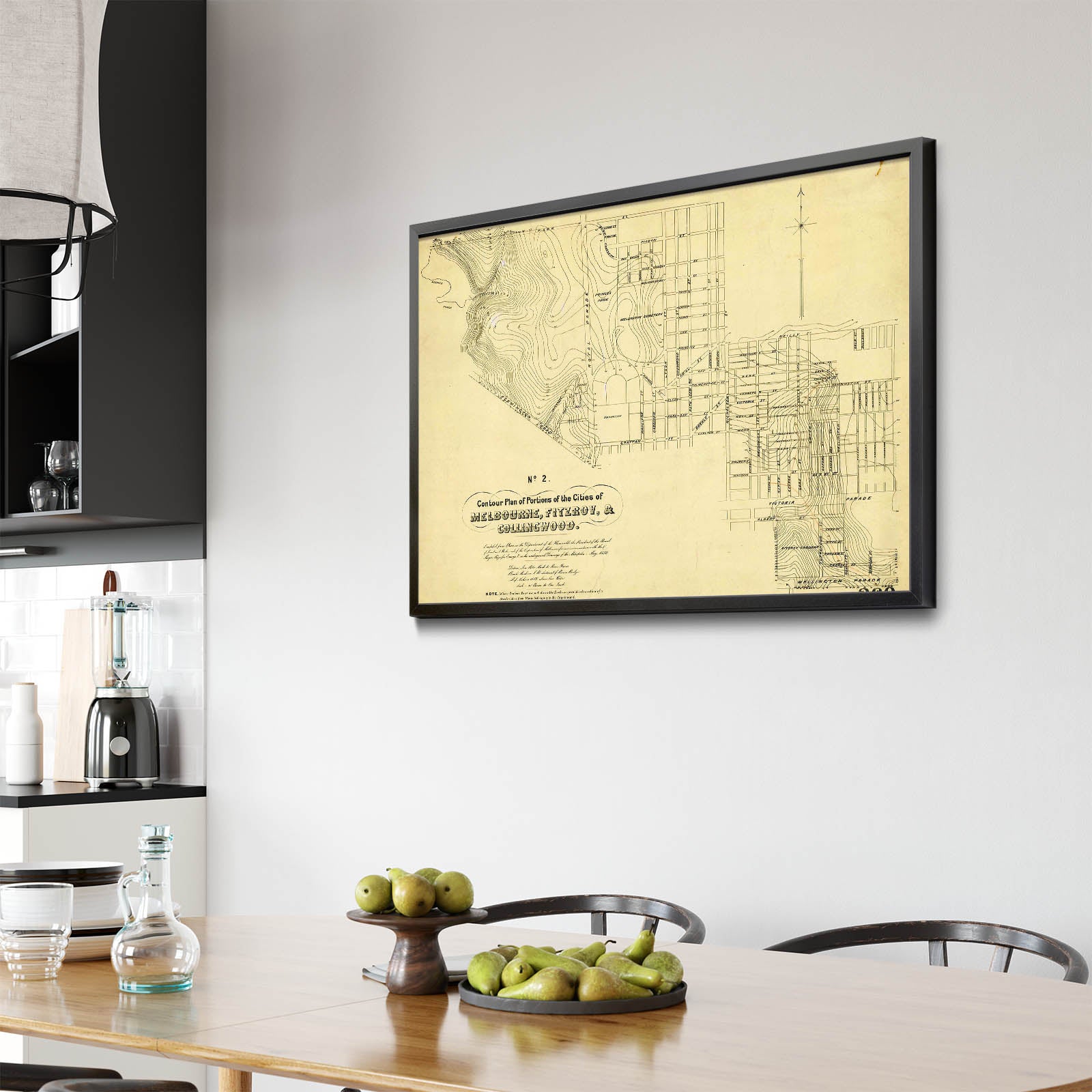 Recently moving to Harcourt and being interested in the history of the area, it seemed fitting to purchase a vintage map of the area which is displayed on our kitchen wall for us to study easily, identifying the block of land we bought. Nicely framed too.