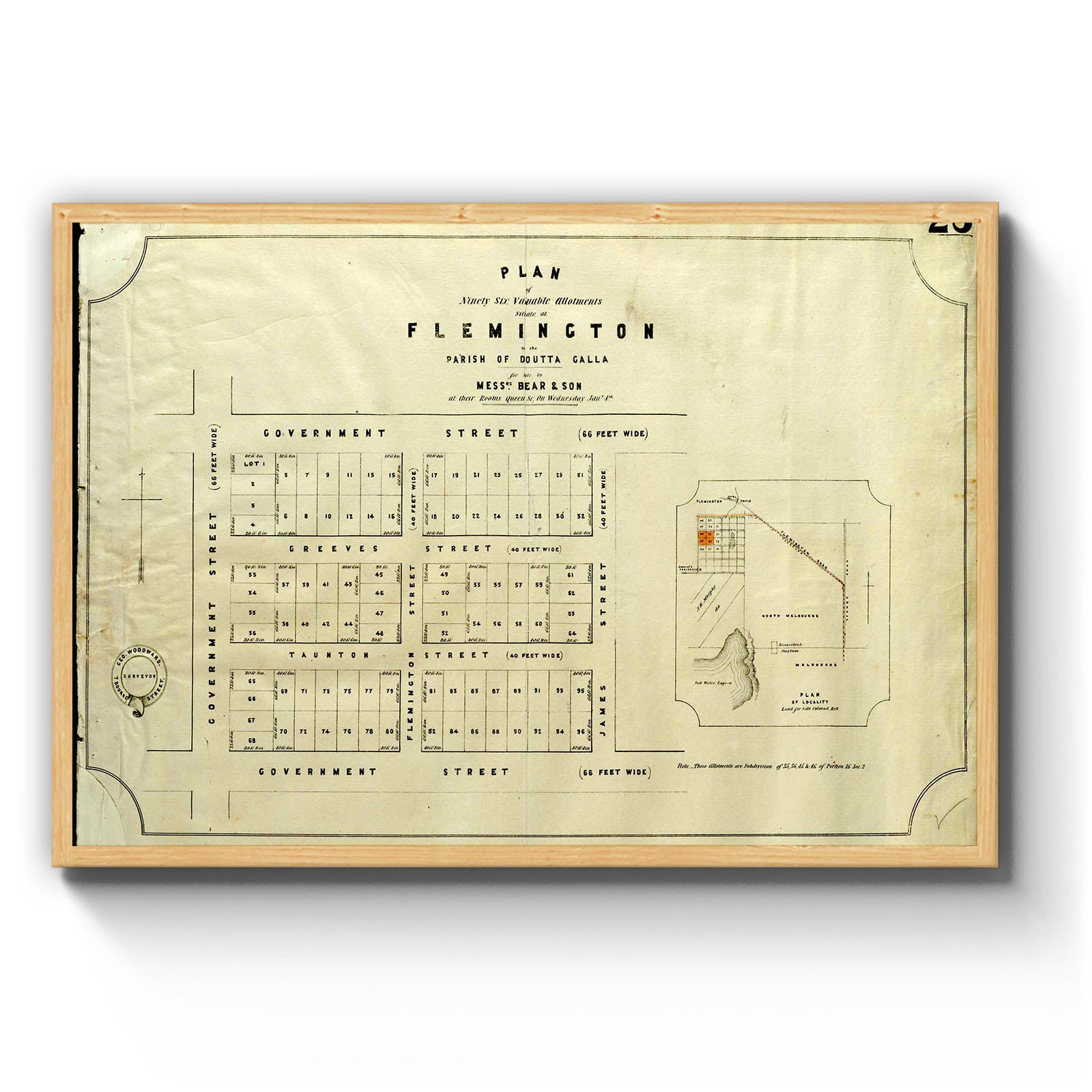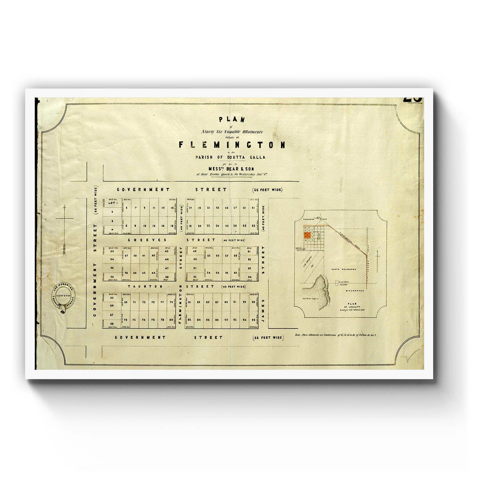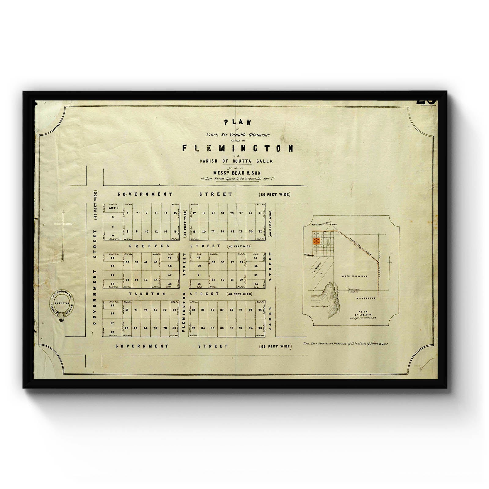 Plan of ninety six valuable allotments situate at Flemington in the Parish of Doutta Galla [cartographic material]. [between 1840 to 1860]
