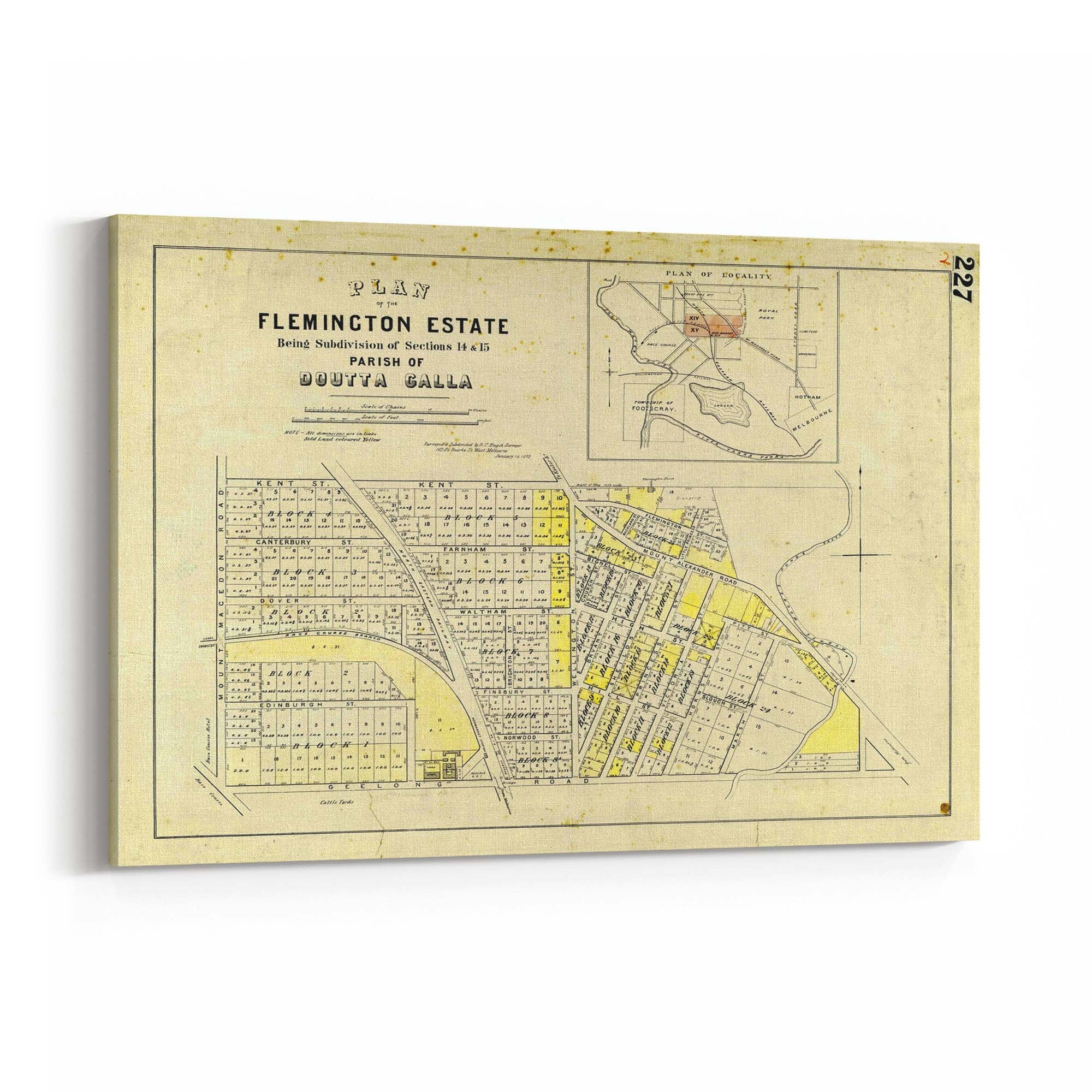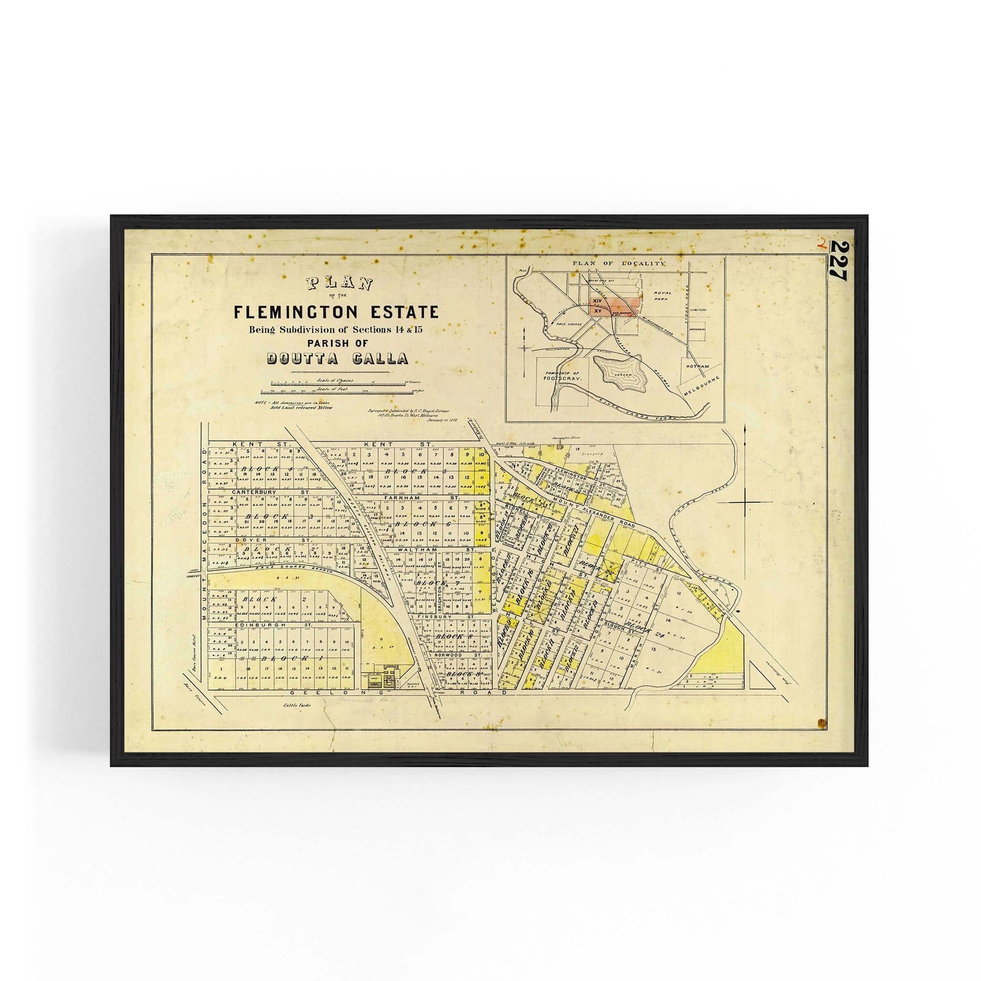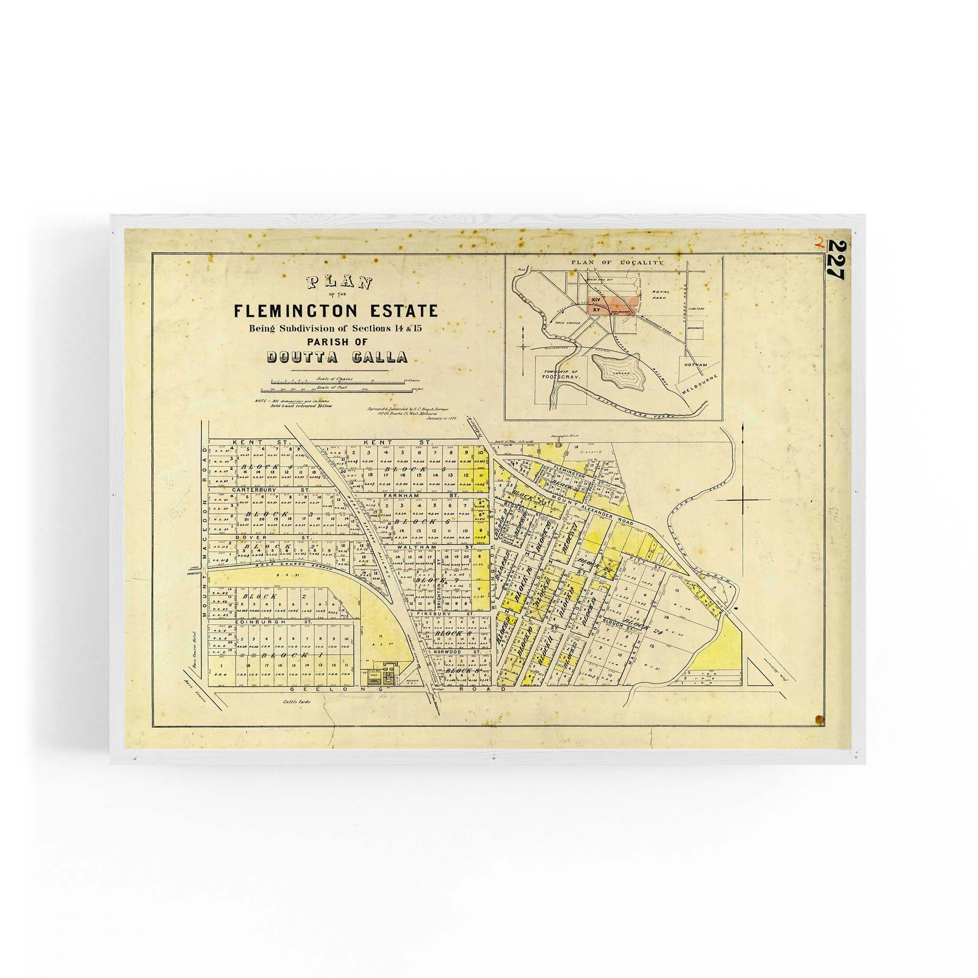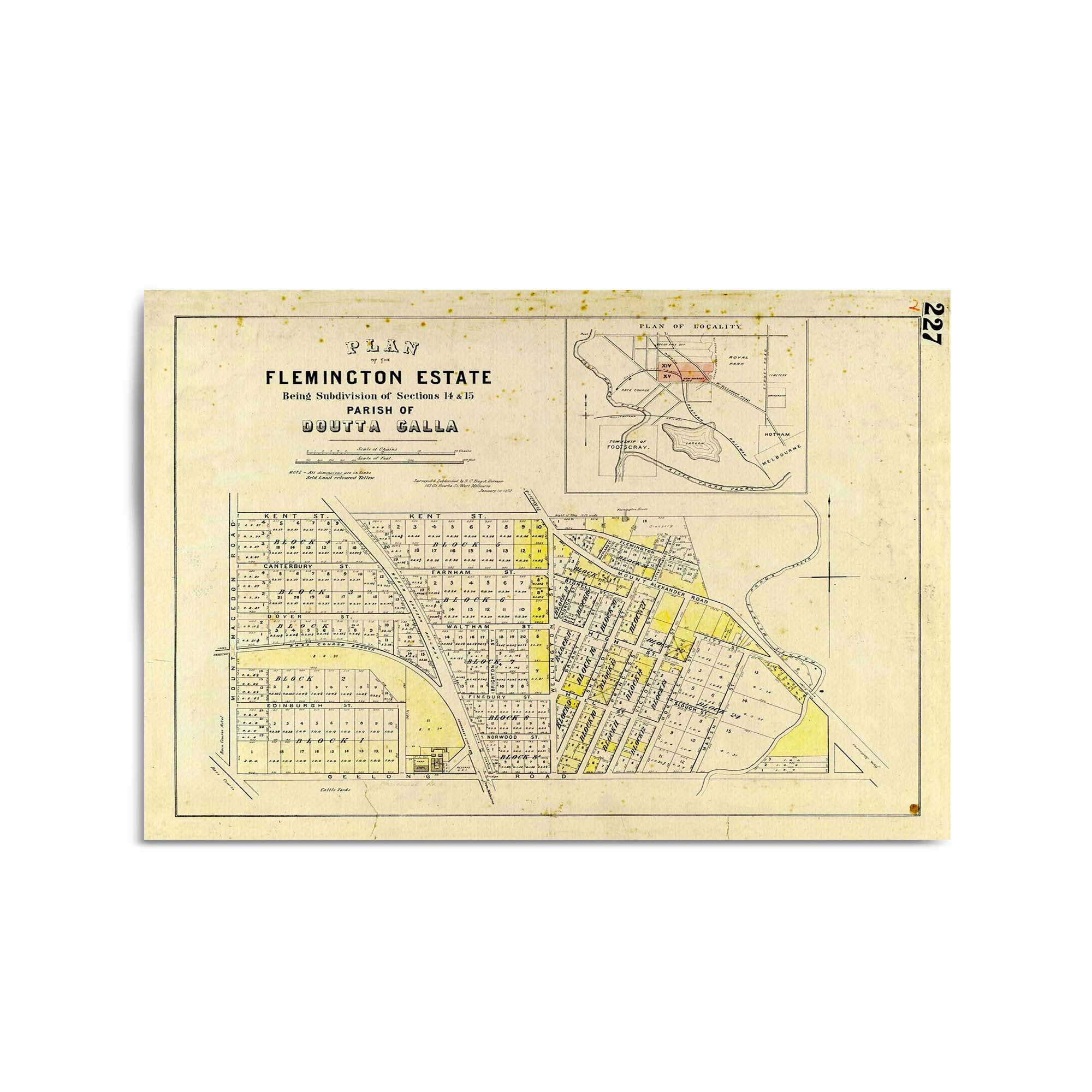 "Surveyed & subdivided by R. C. Bagot, surveyor, 103 Gt. Bourke St. West Melbourne. January 1st 1872".