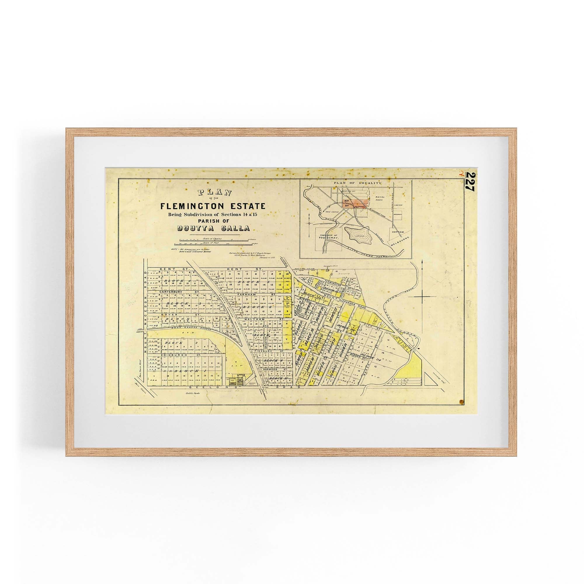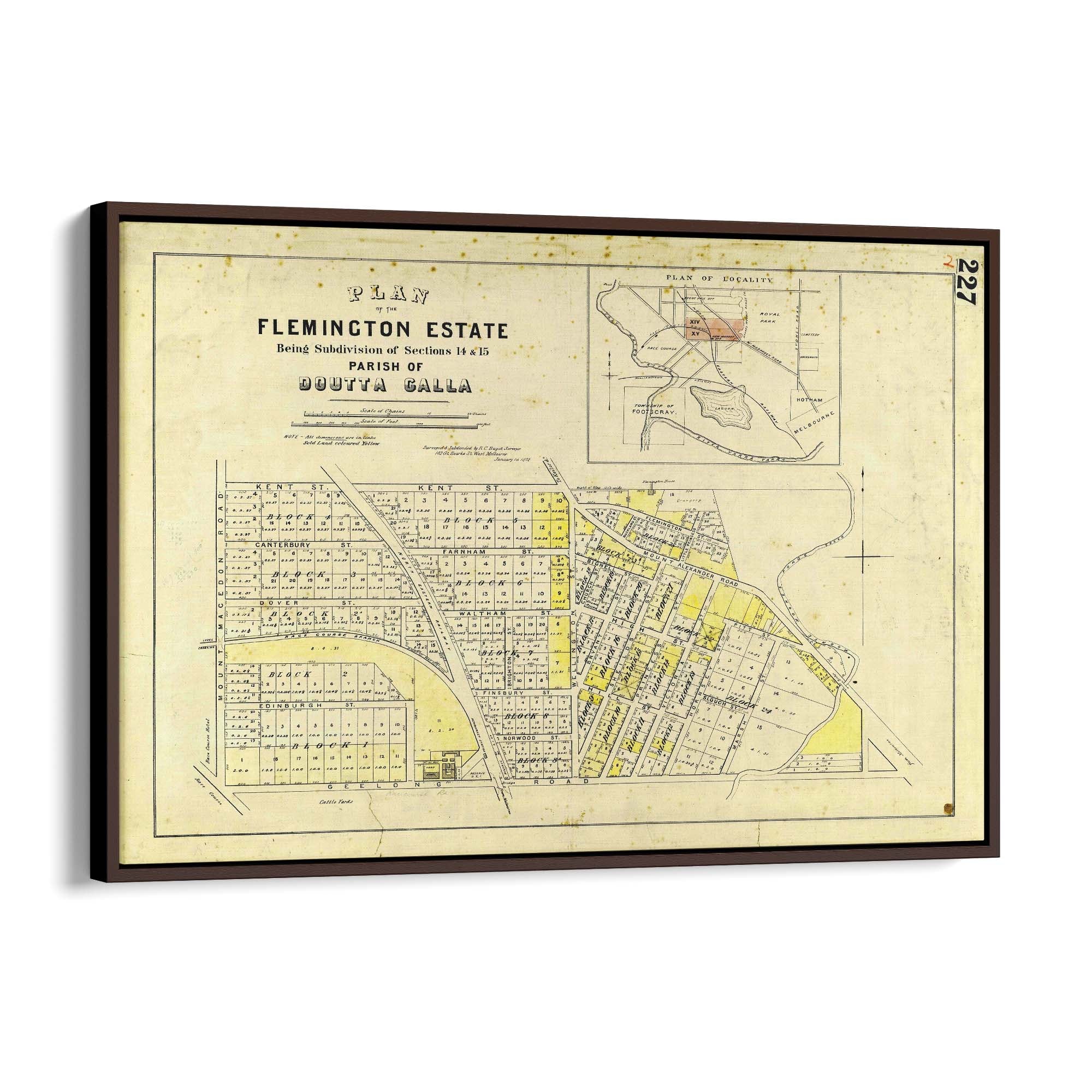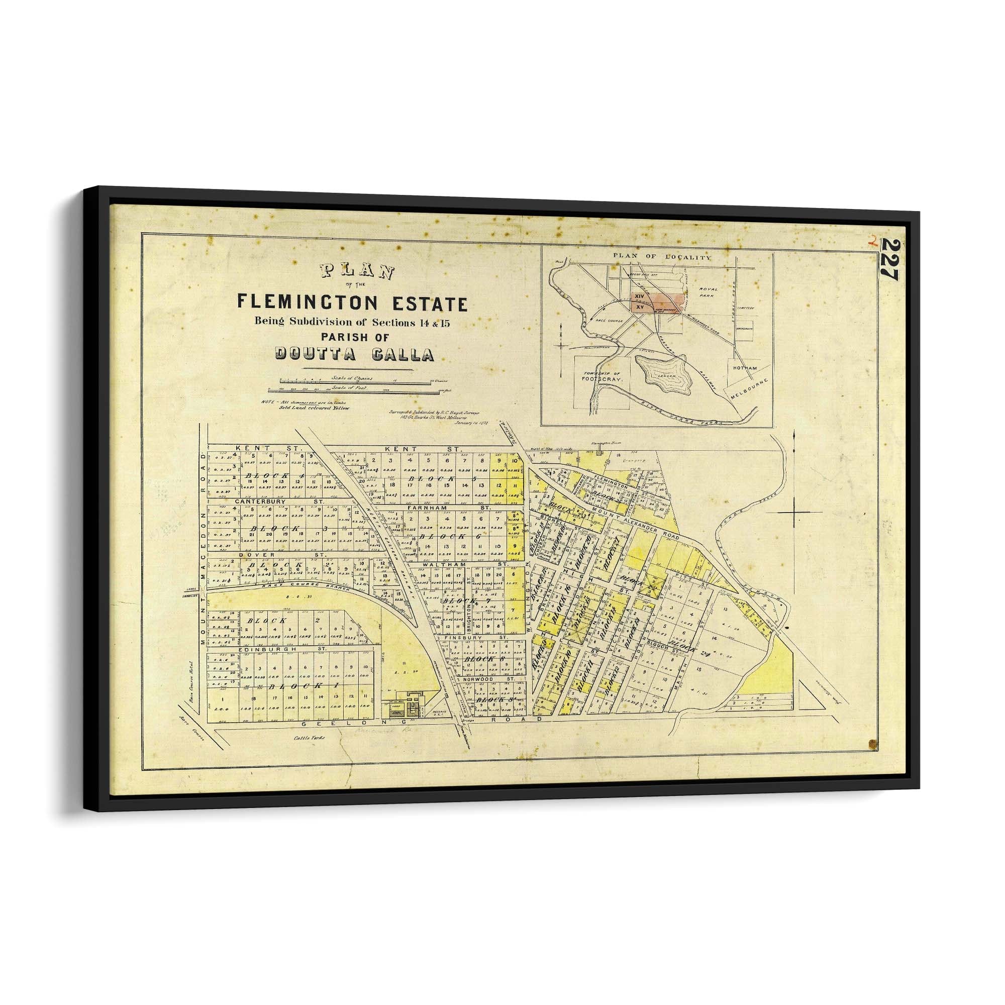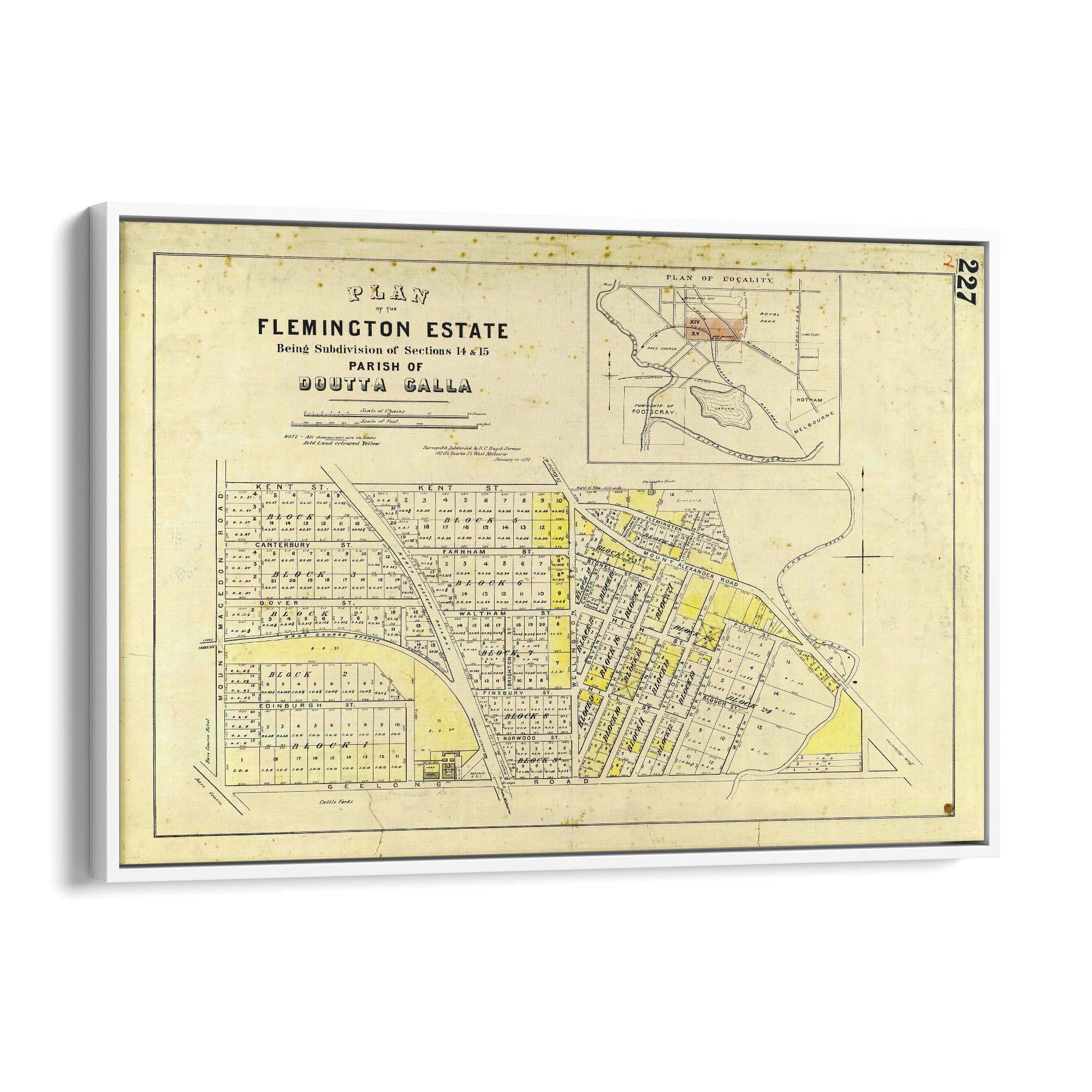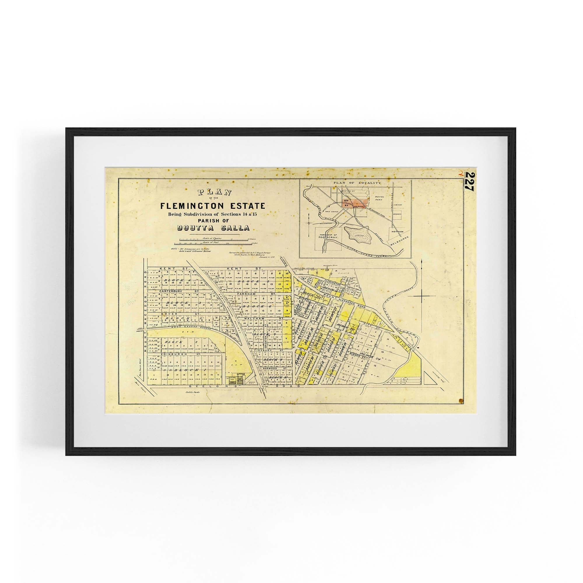 1872 Vintage Map of Flemington, Victoria Australia