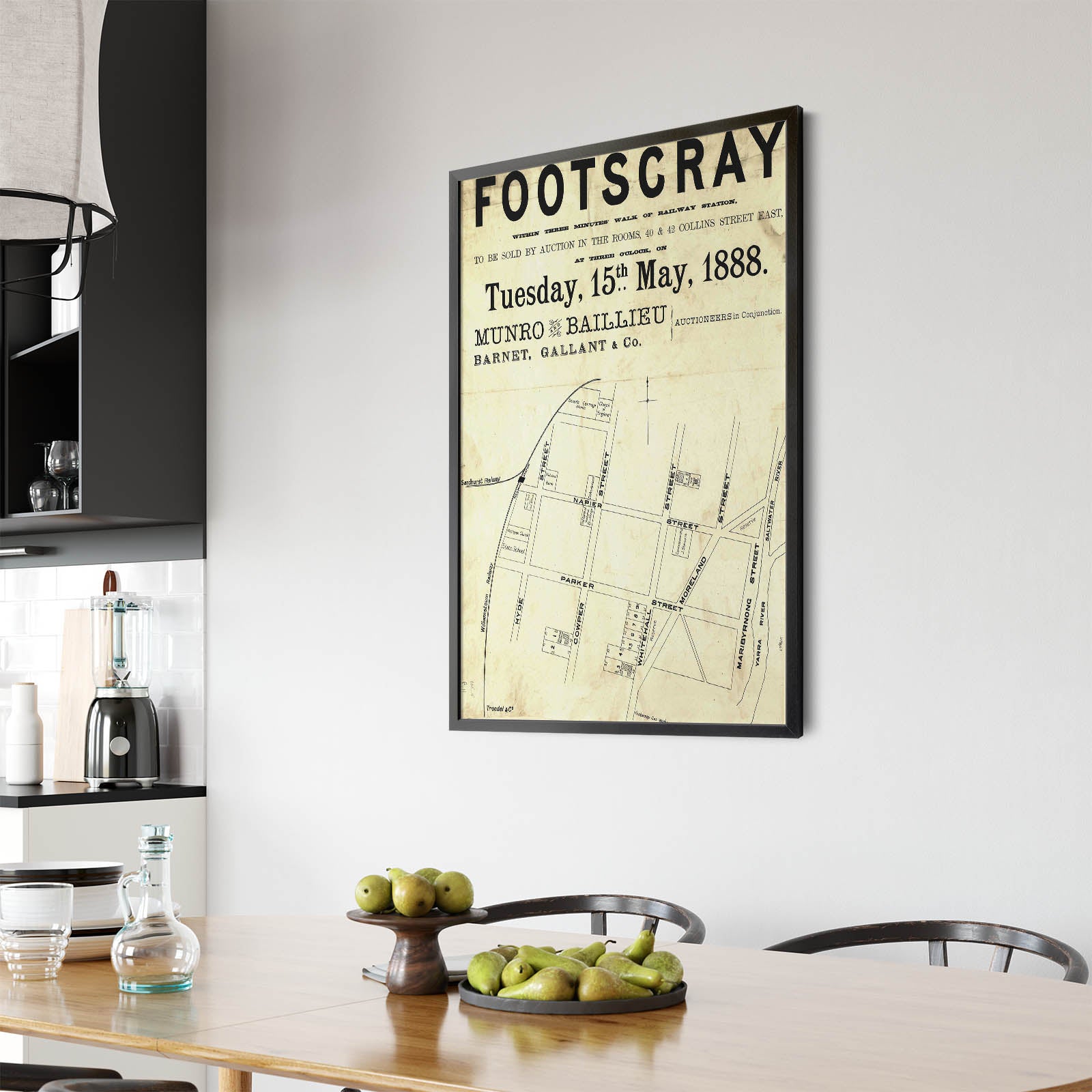 Recently moving to Harcourt and being interested in the history of the area, it seemed fitting to purchase a vintage map of the area which is displayed on our kitchen wall for us to study easily, identifying the block of land we bought. Nicely framed too.