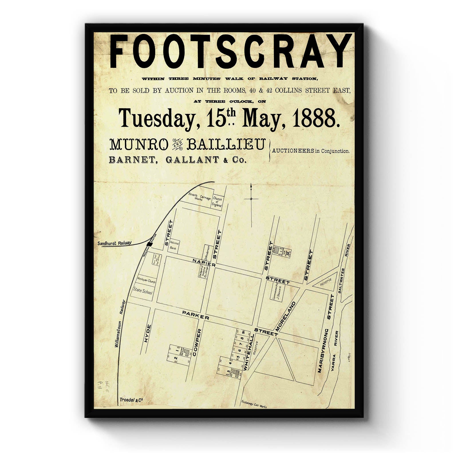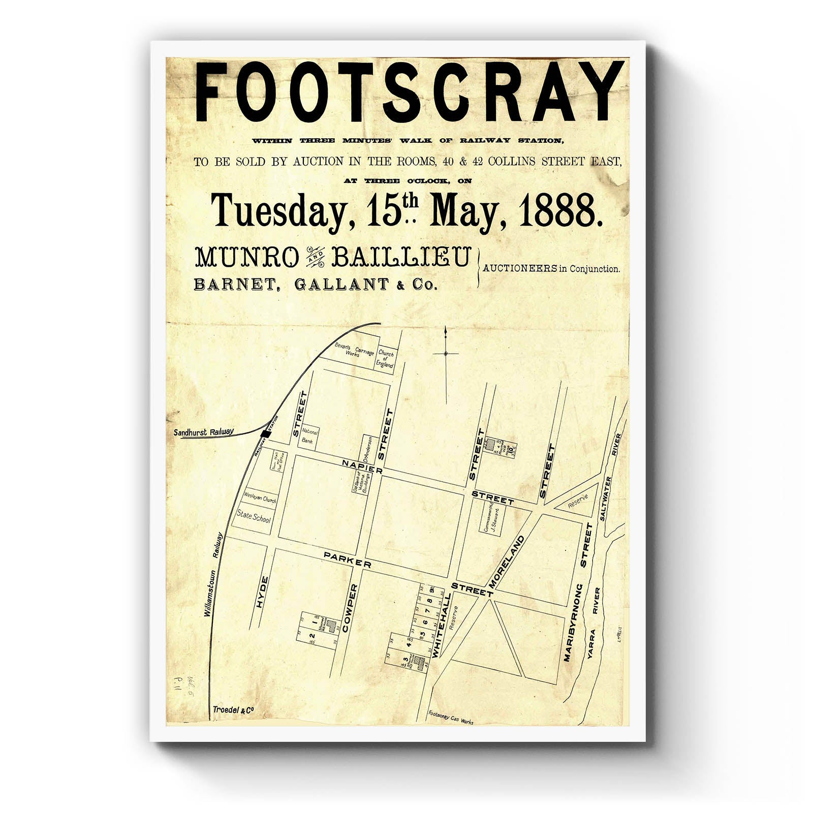 Napier Street, Parker Street, Hyde Street, Whitehall Street, Cowper Street, Maribyrnong Street, Moreland Street, 1888