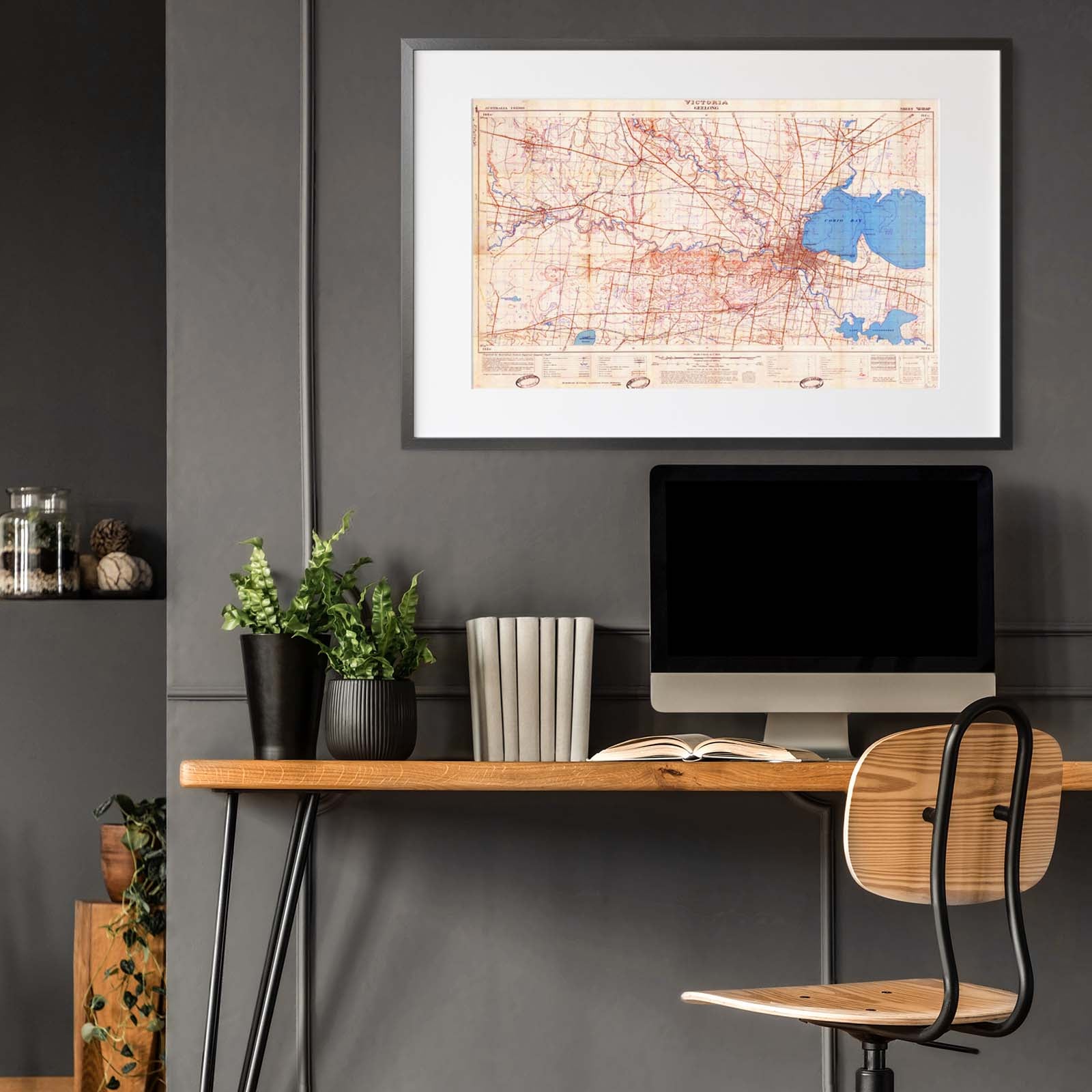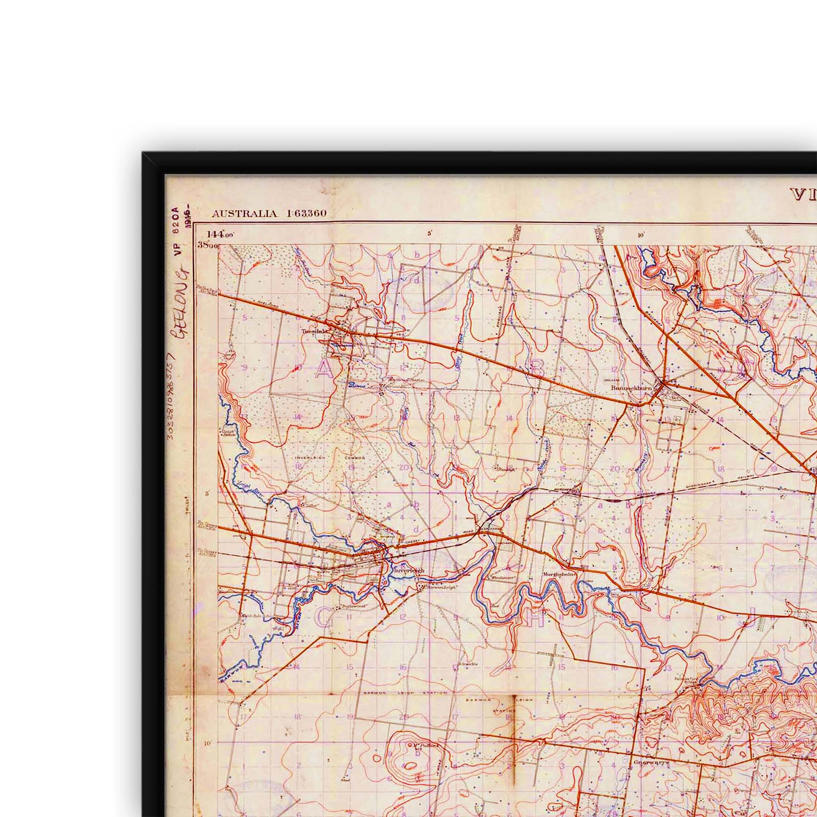 Recently moving to Harcourt and being interested in the history of the area, it seemed fitting to purchase a vintage map of the area which is displayed on our kitchen wall for us to study easily, identifying the block of land we bought. Nicely framed too.