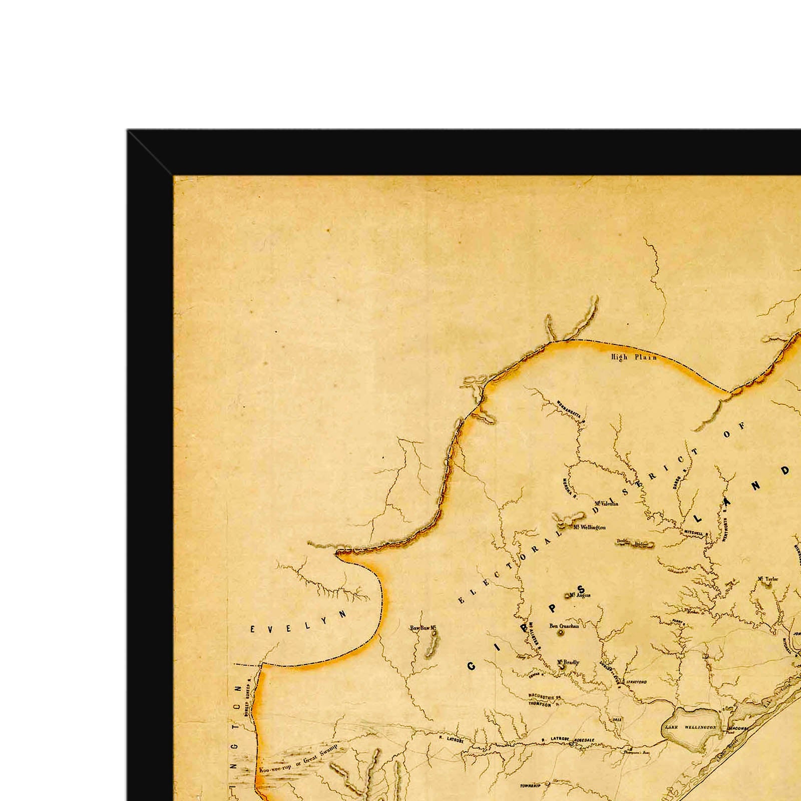 Recently moving to Harcourt and being interested in the history of the area, it seemed fitting to purchase a vintage map of the area which is displayed on our kitchen wall for us to study easily, identifying the block of land we bought. Nicely framed too.
