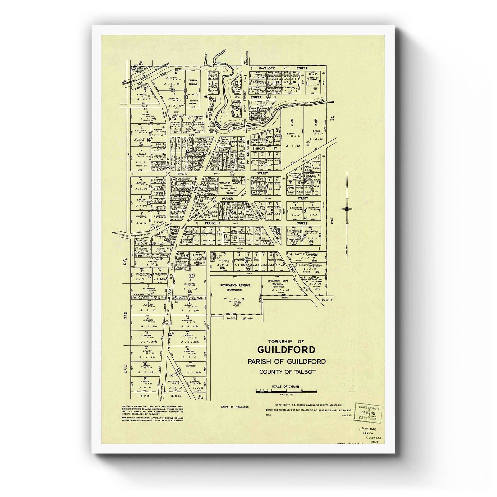 Township of Guildford, Parish of Guildford, County of Talbot [cartographic material] / drawn and reproduced at the Department of Lands and Survey, Melbourne, 1959.