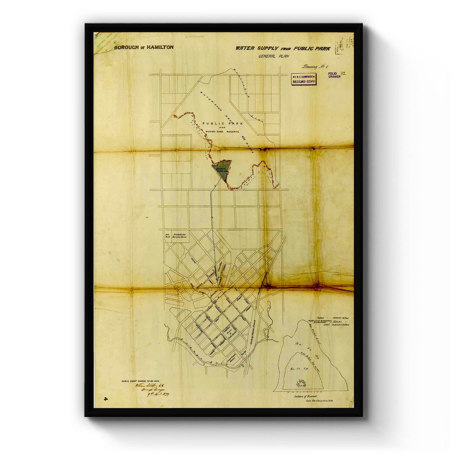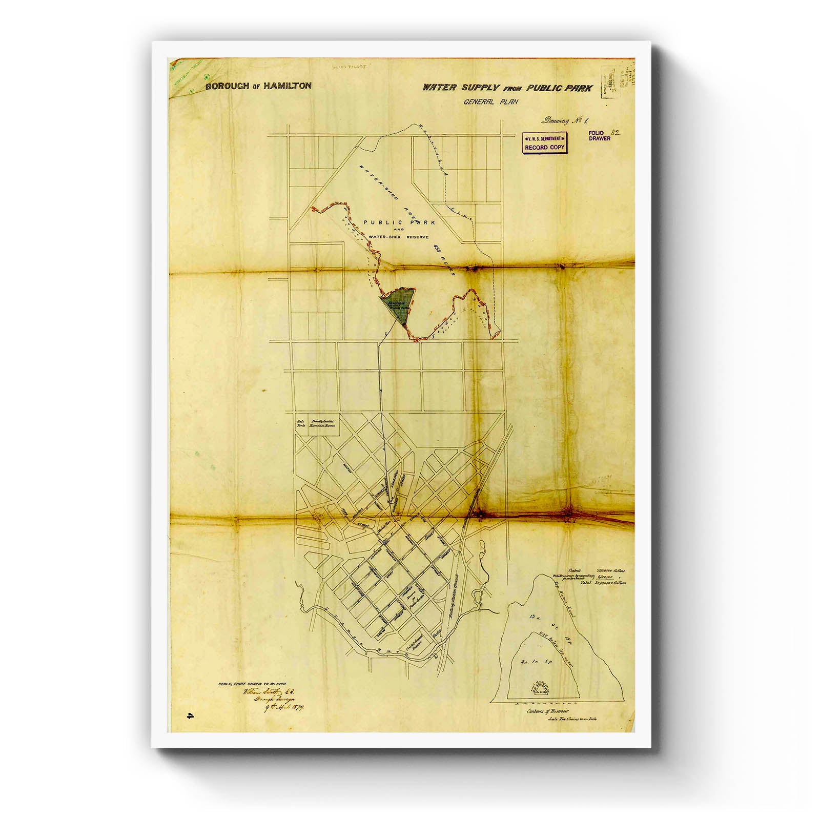 Borough of Hamilton [cartographic material] : water supply from public park / William Brown, Borough Surveyor, 9th April 1879.