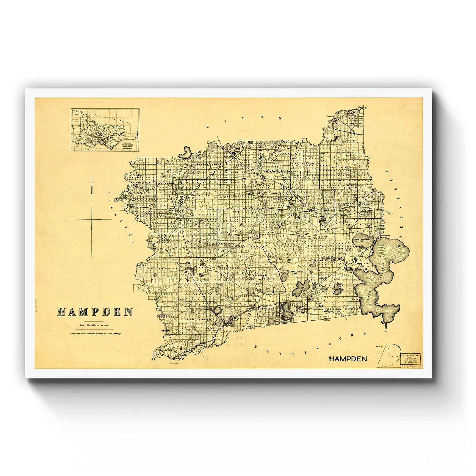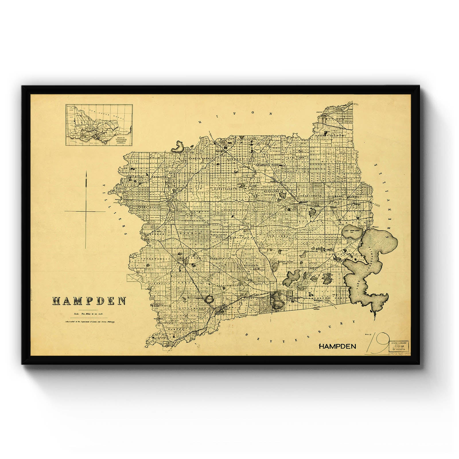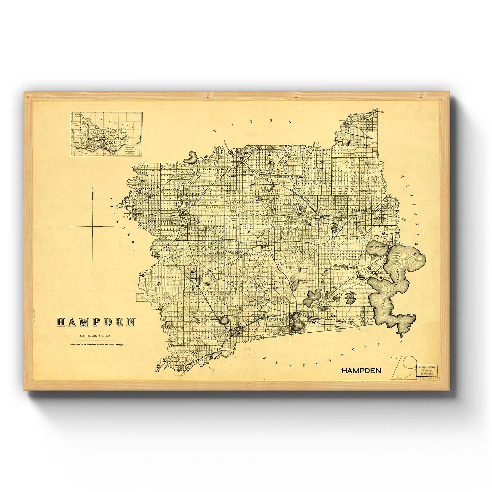 Recently moving to Harcourt and being interested in the history of the area, it seemed fitting to purchase a vintage map of the area which is displayed on our kitchen wall for us to study easily, identifying the block of land we bought. Nicely framed too.