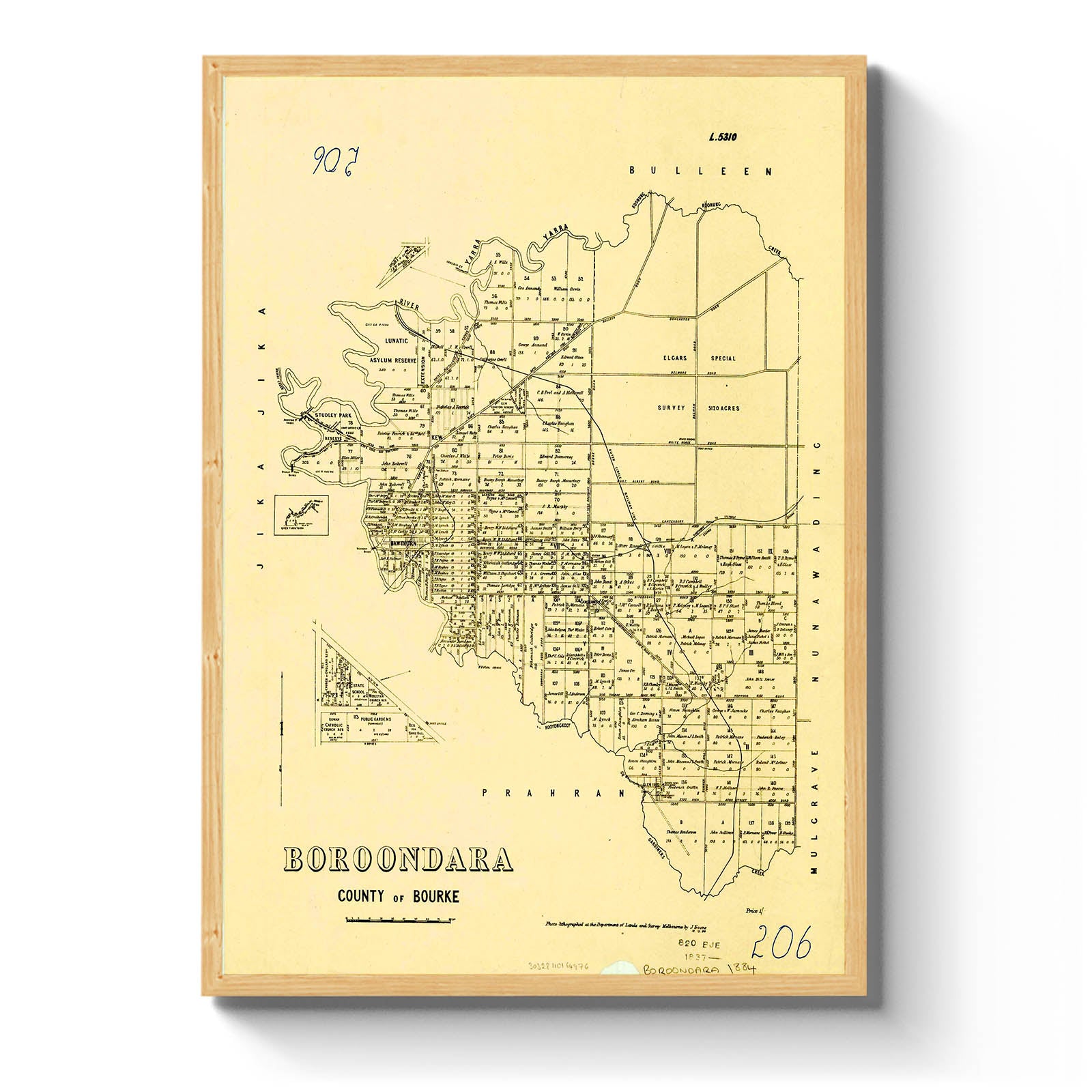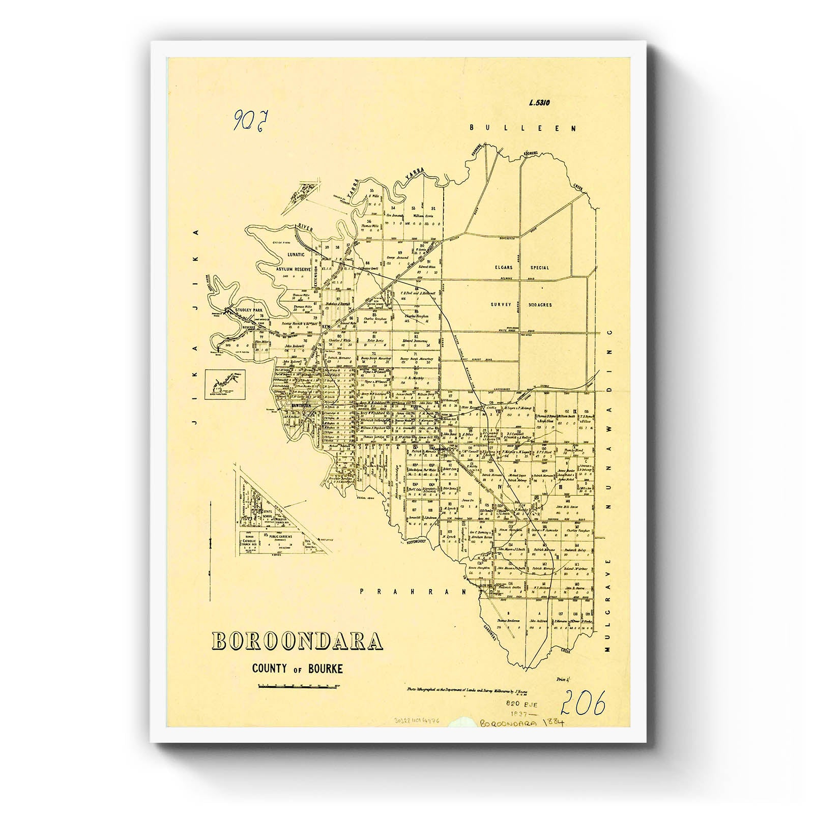 Boroondara, County of Bourke [cartographic material] / photo-lithographed at the Department of Lands and Survey, Melbourne by J. Noone 18.12.84. [1884]