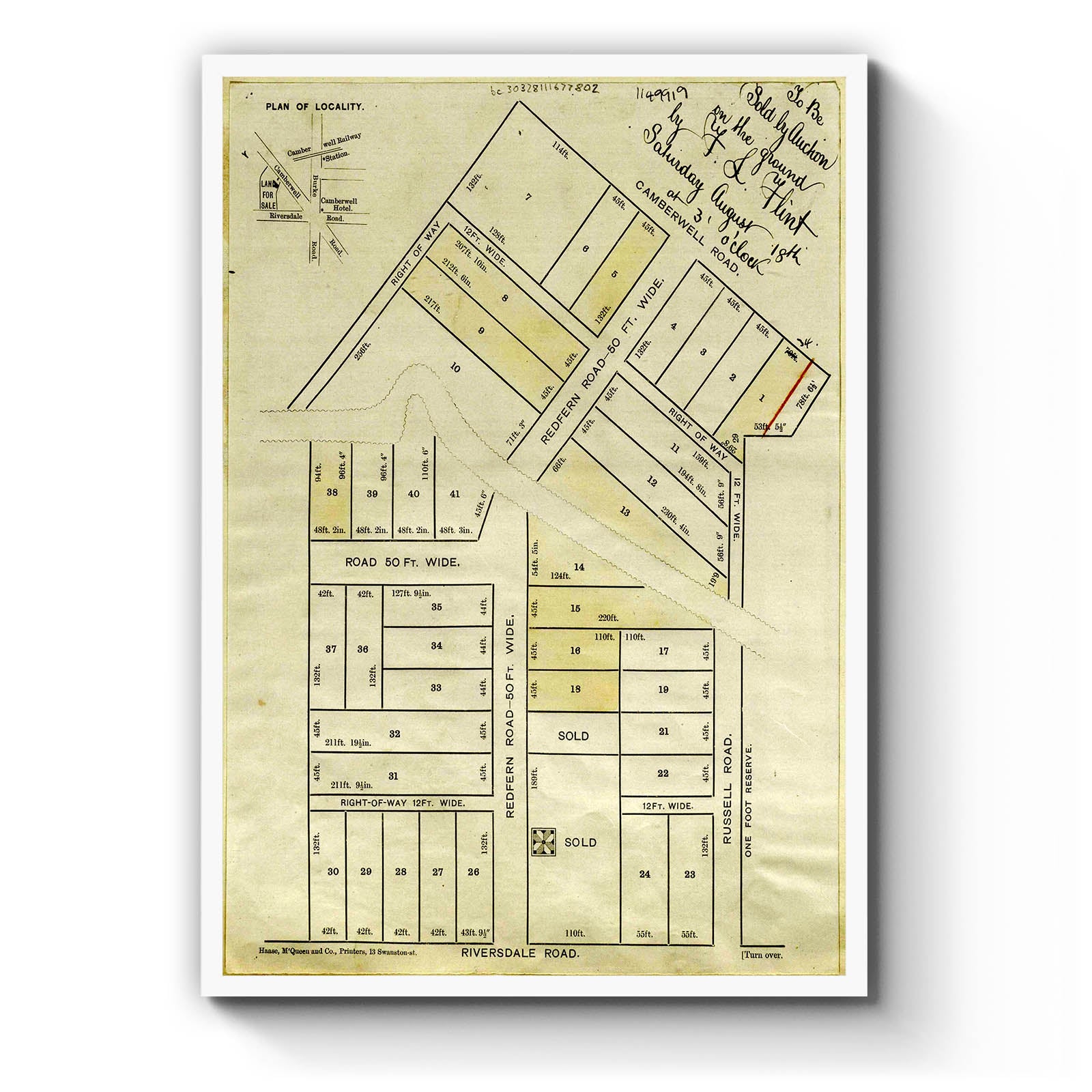 Hawthorn, Victoria Australia Vintage Map #268 (1883?)