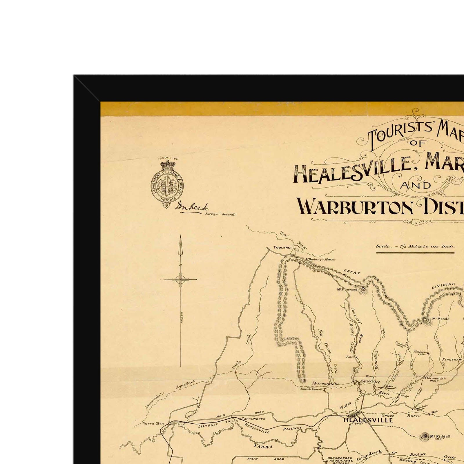 Tourists' map of Healesville, Marysville, and Warburton districts [cartographic material] / J. M. Reed, Surveyor General; photo-lithographed at the Dept. of Lands and Survey, Melbourne, by W. J. Butson, 18.12.12. 1912