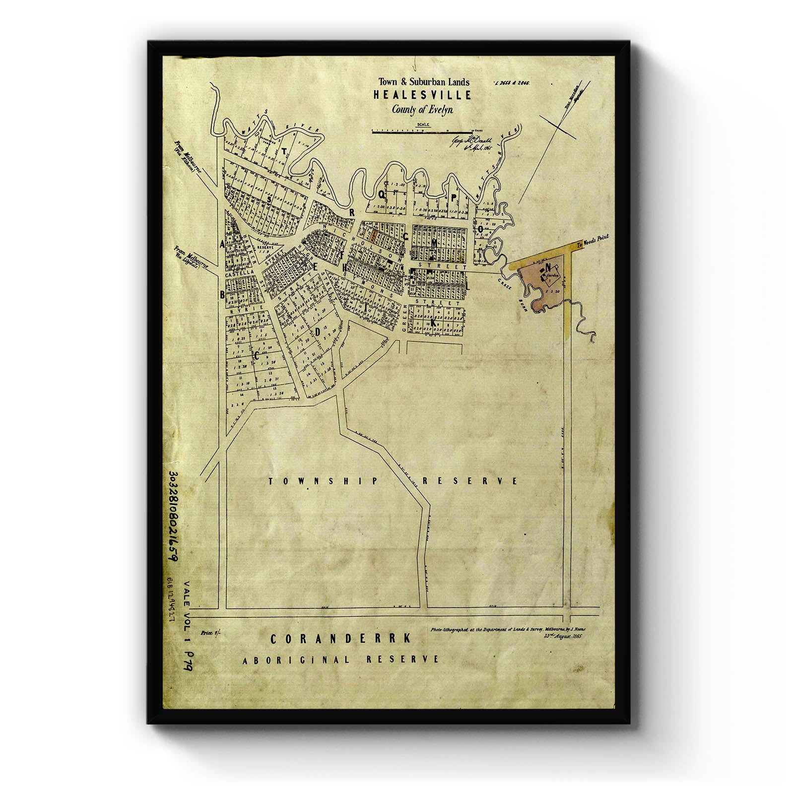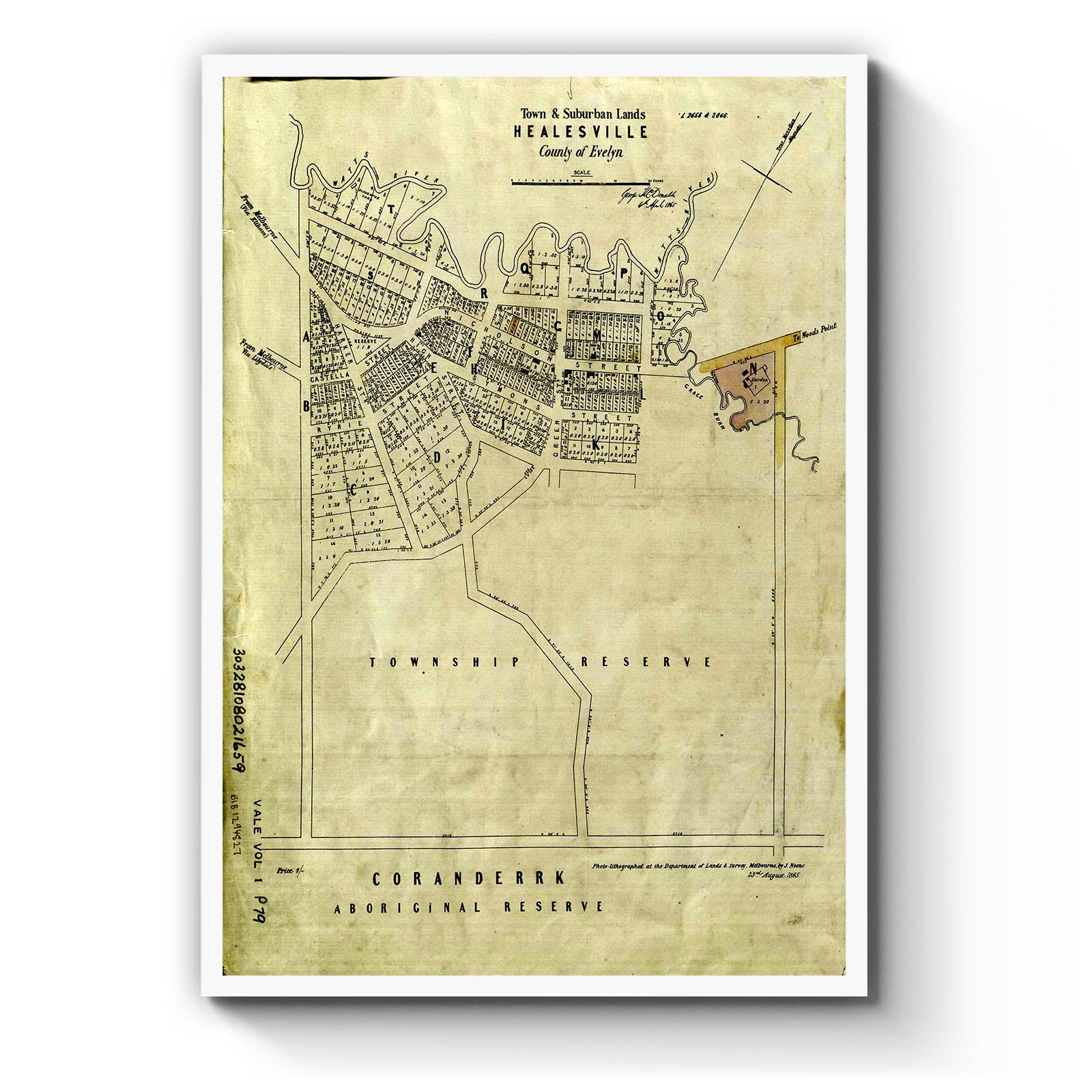 Town and suburban lands, Healesville [cartographic material]. 1865