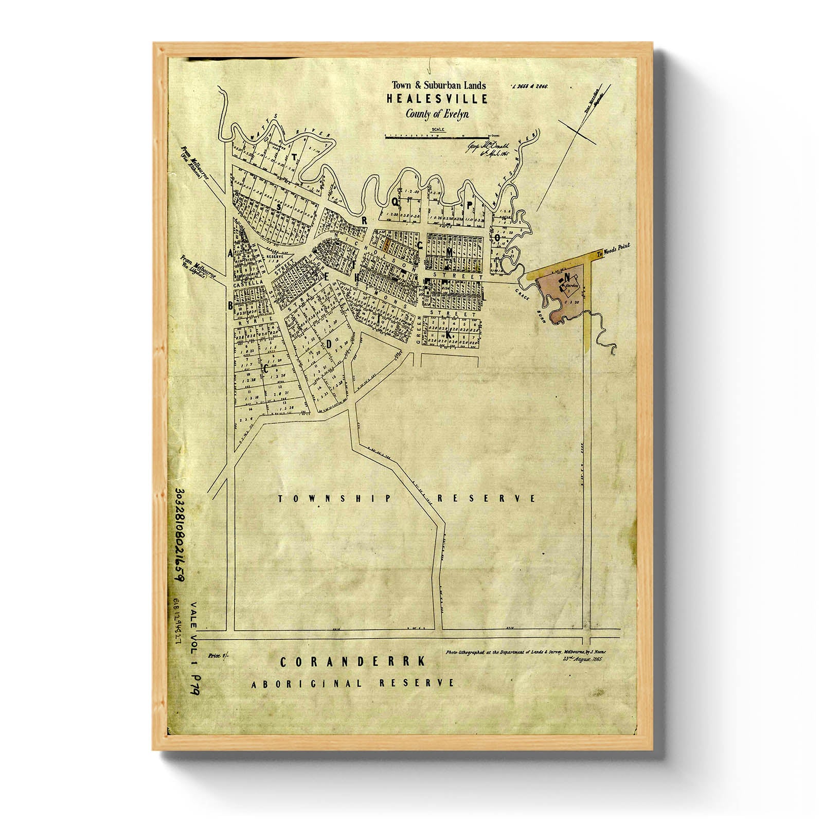 Township plan. Mentions the Coranderrk Aboriginal Reserve.