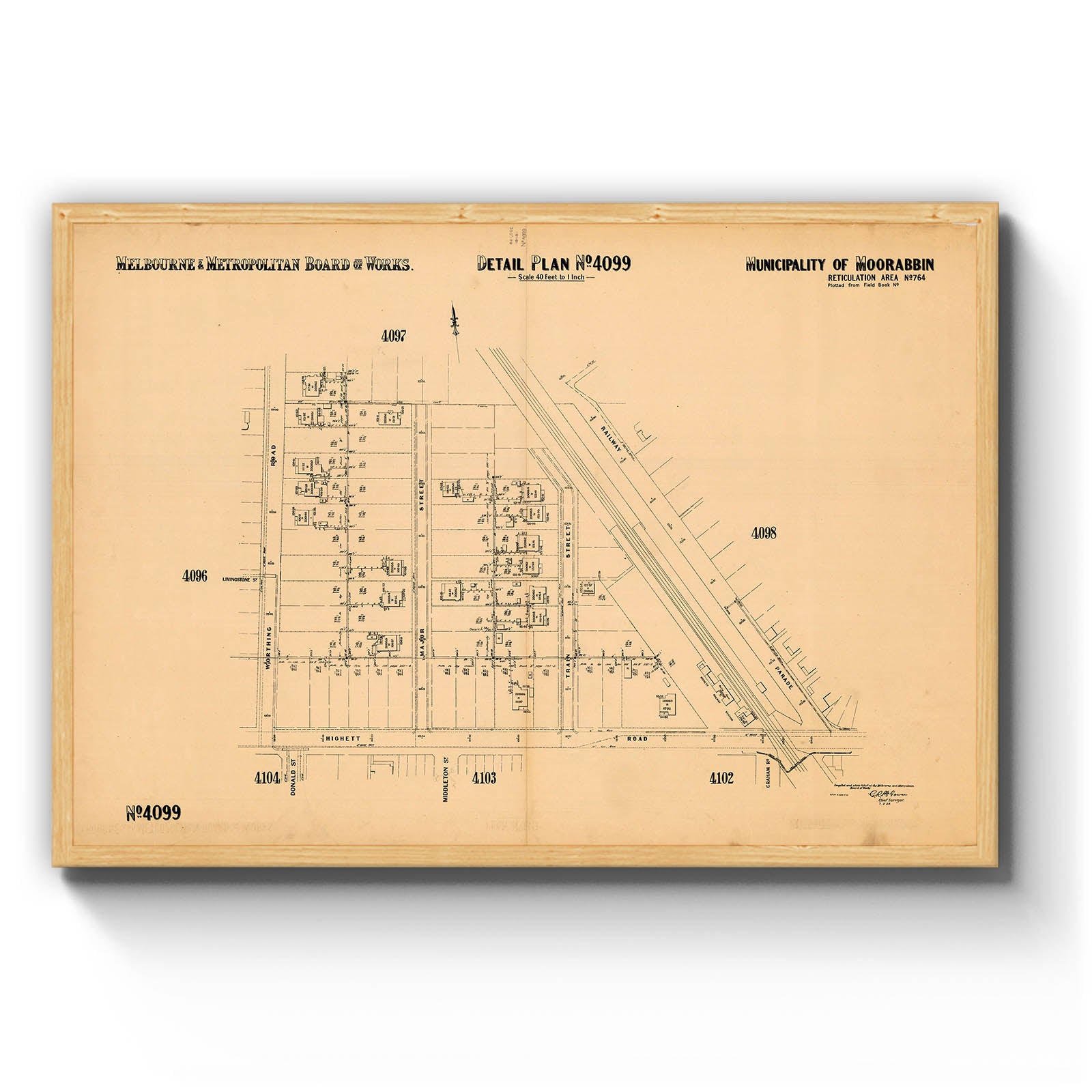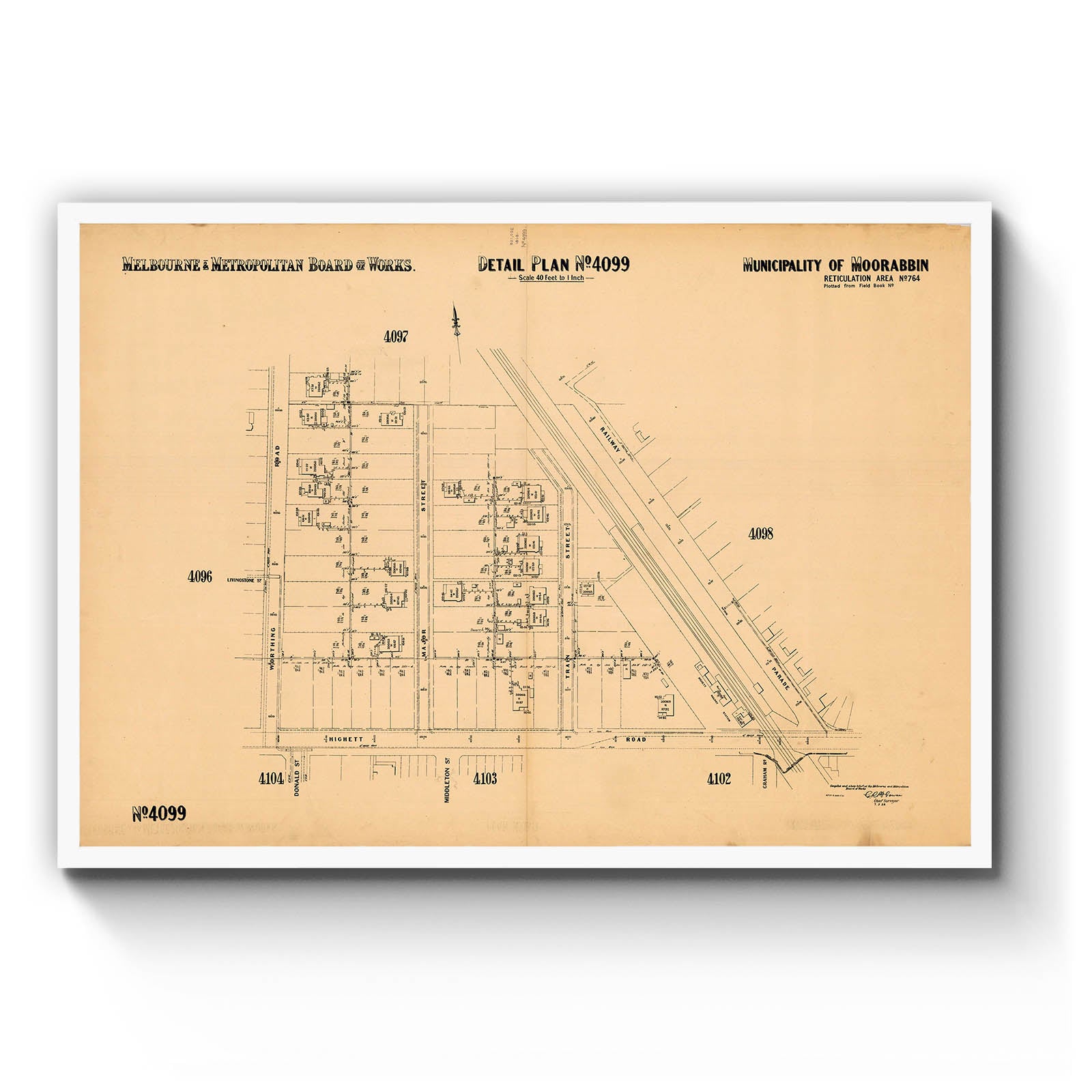 Melbourne and Metropolitan Board of Works detail plan. 4099, Municipality of Moorabbin [cartographic material]. 1938