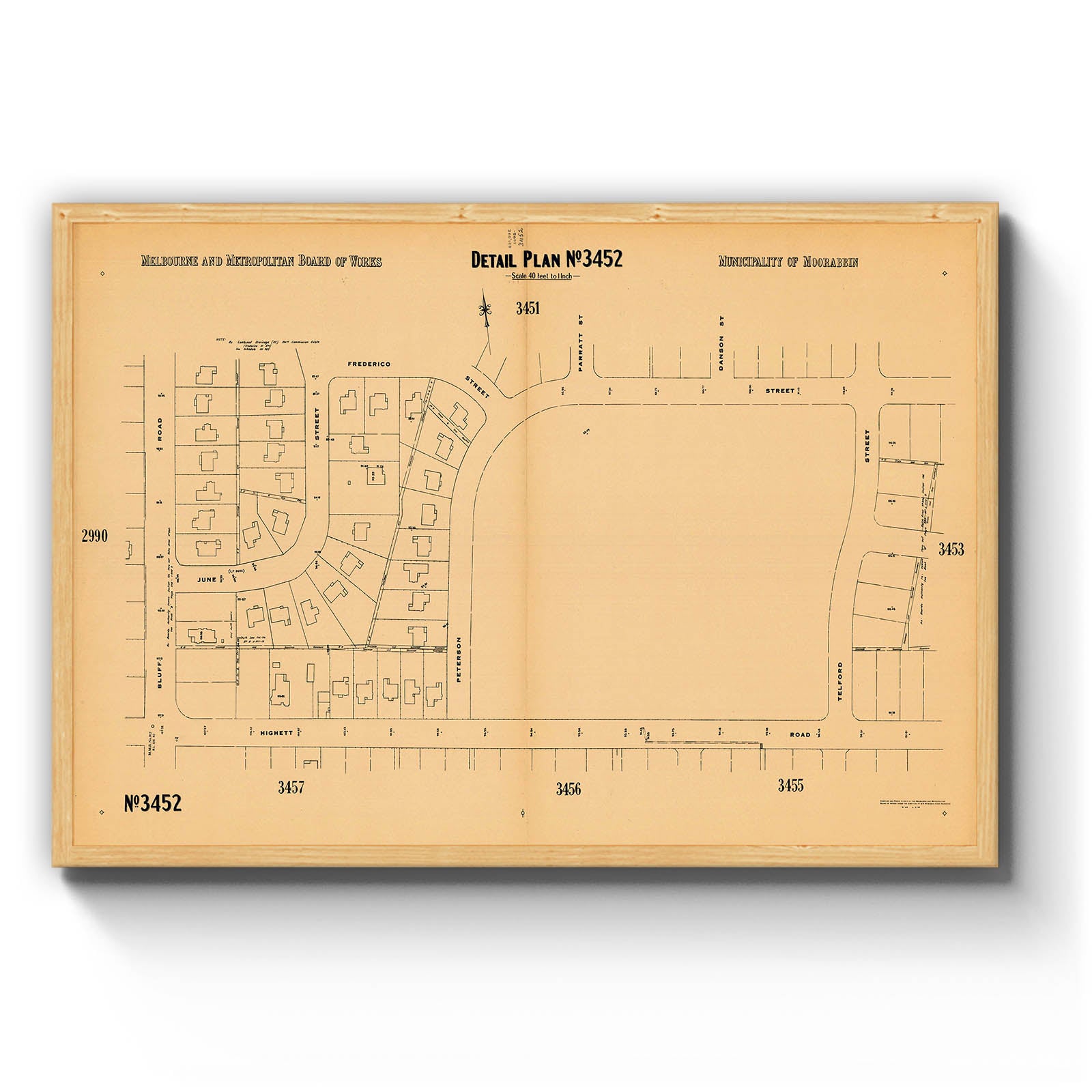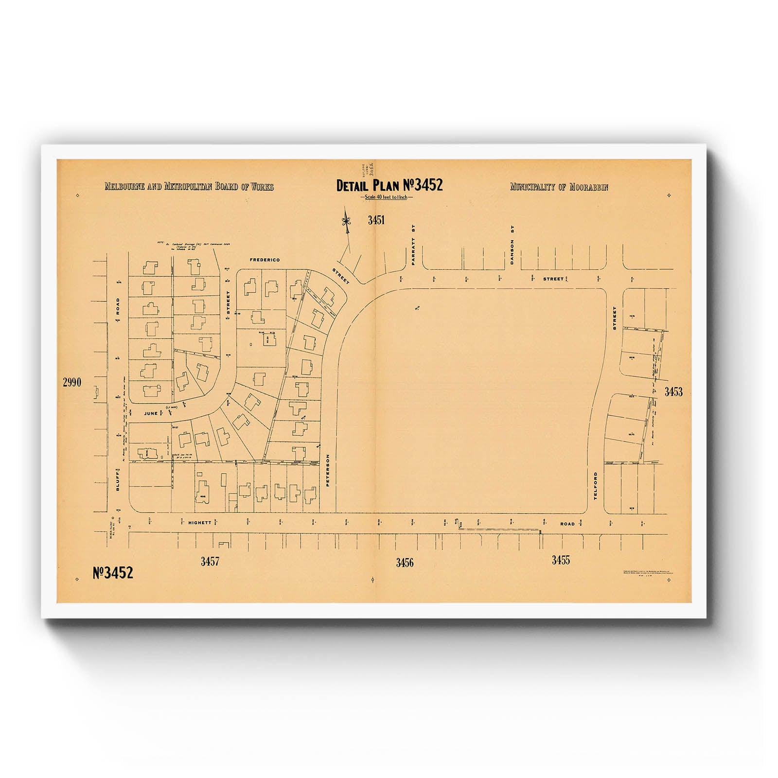 Melbourne and Metropolitan Board of Works detail plan. 3452, Municipality of Moorabbin [cartographic material]. 1950