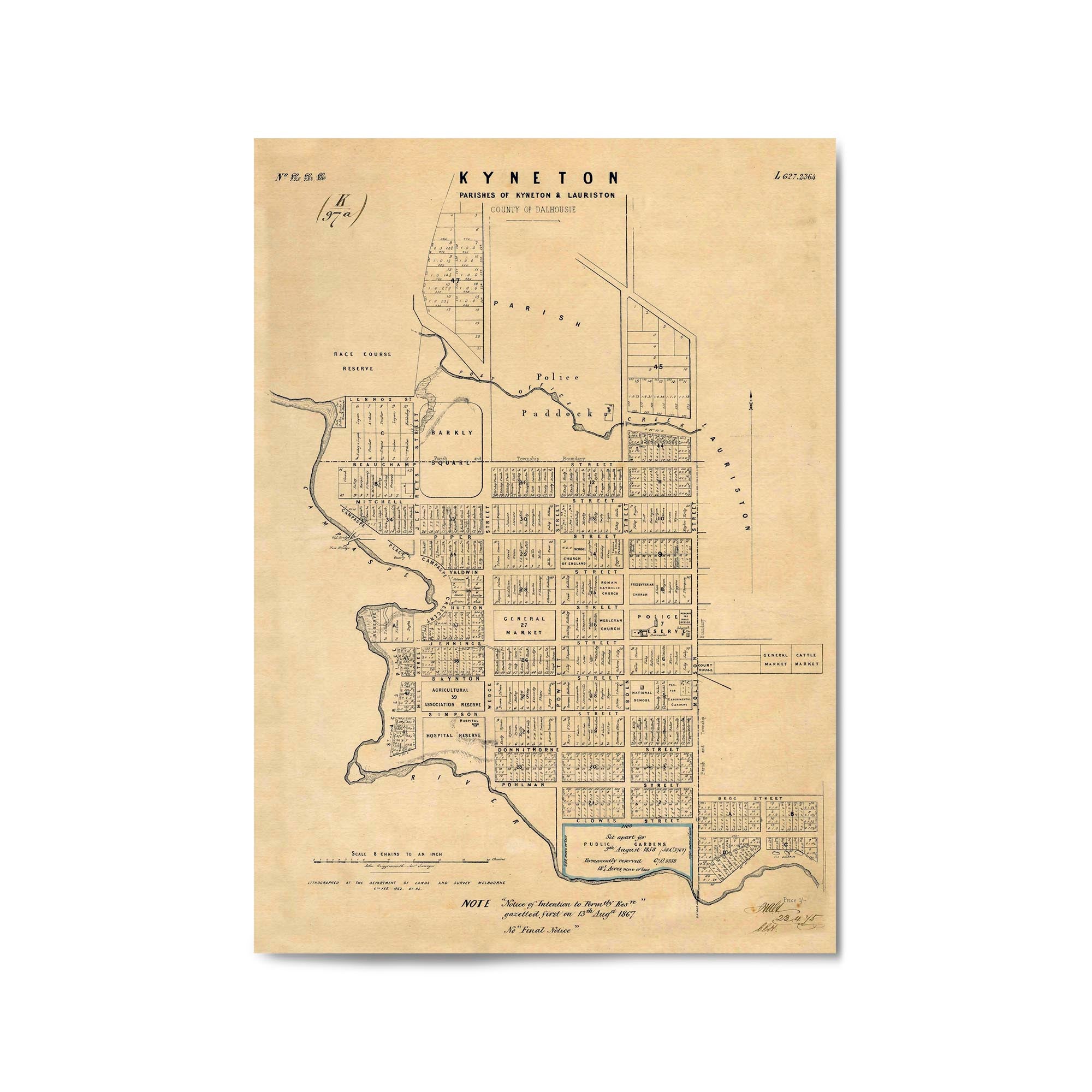 Kyneton, parishes of Kyneton & Lauriston, County of Dalhousie. John Wrigglesworth, Assist. Surveyor. Lithographed at the Department of Lands and Survey Melbourne, 6th Feb 1862, by R. S. 1862.