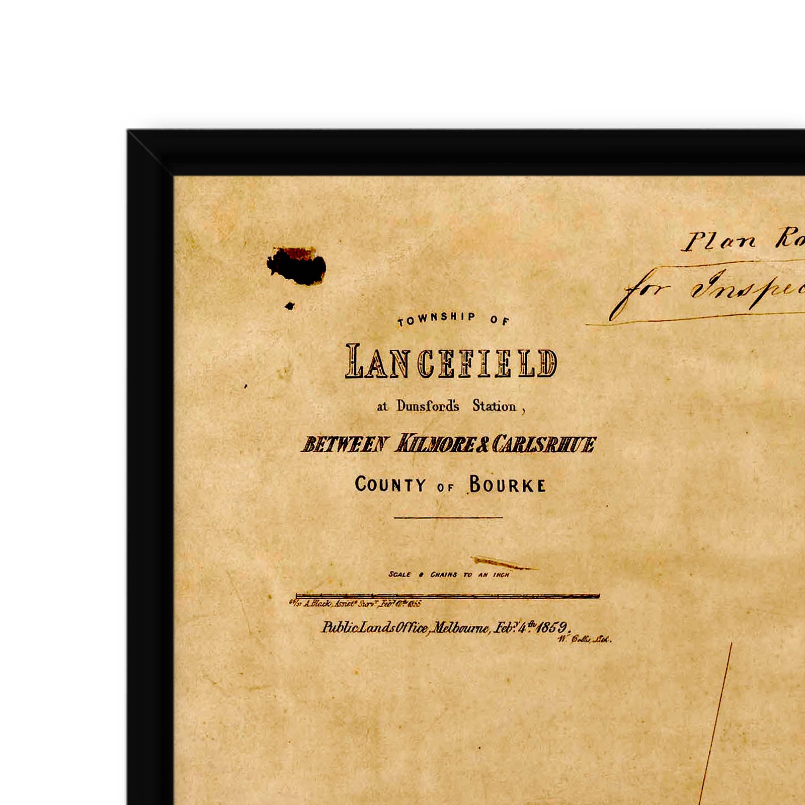 Township of Lancefield at Dunsford's Station, between Kilmore & Carlsrhue, County of Bourke [cartographic material] / A. Black, Assistt. Survr, Febr. 12th 1855; Public Lands Office, Melbourne, Febr. 4th 1859, W. Collis, Lith. 1859