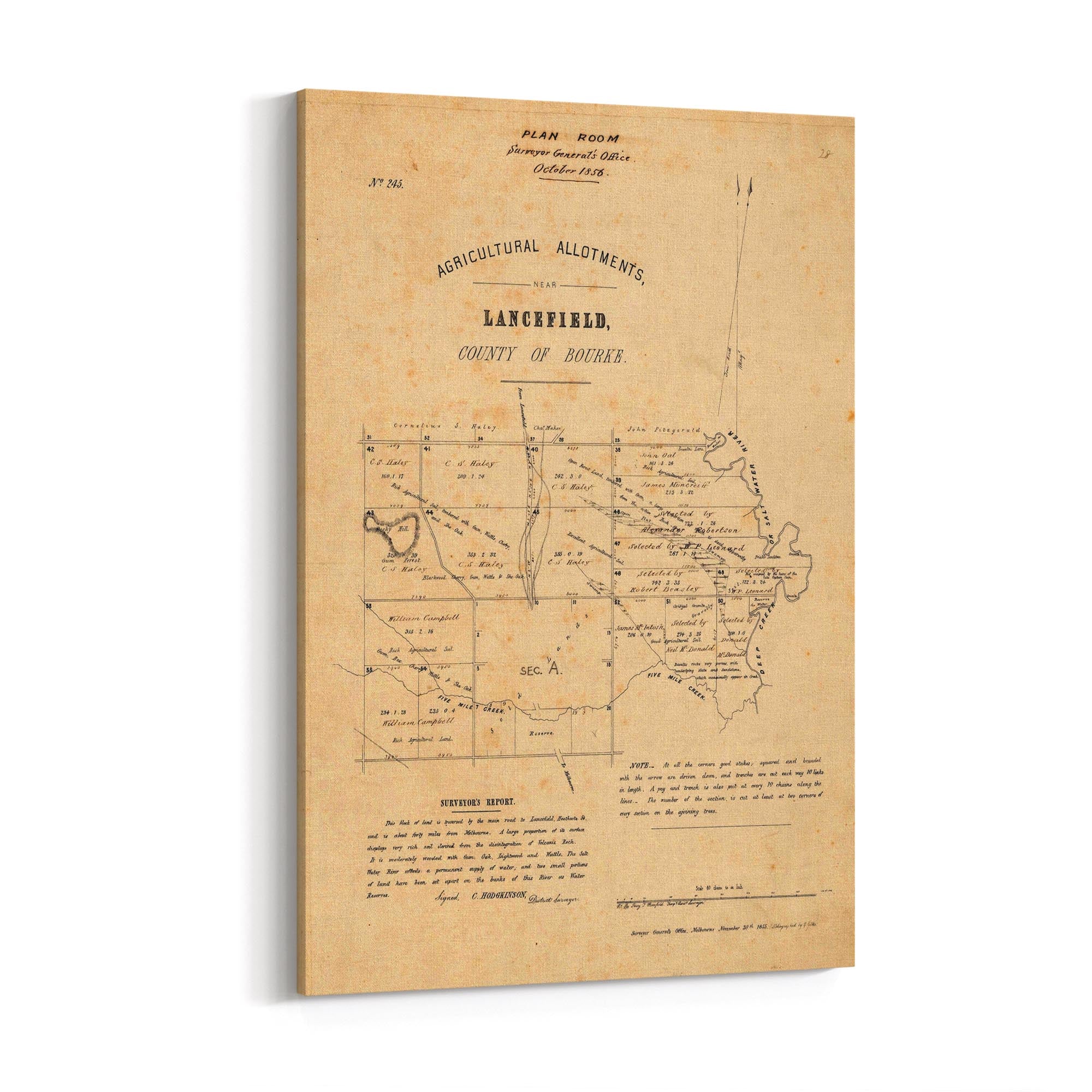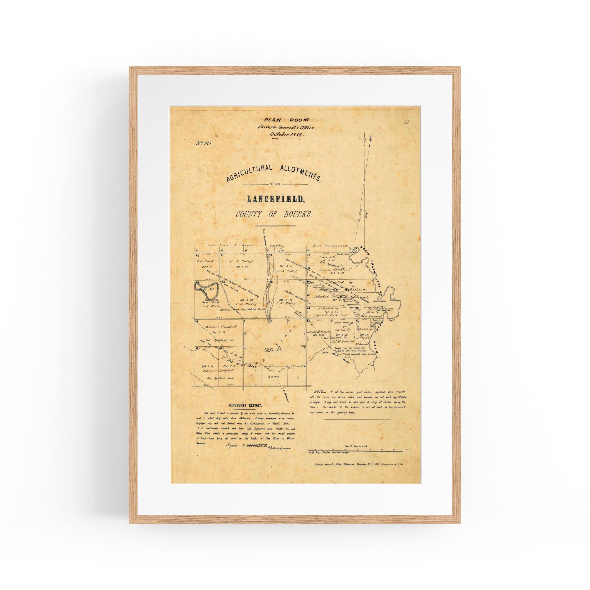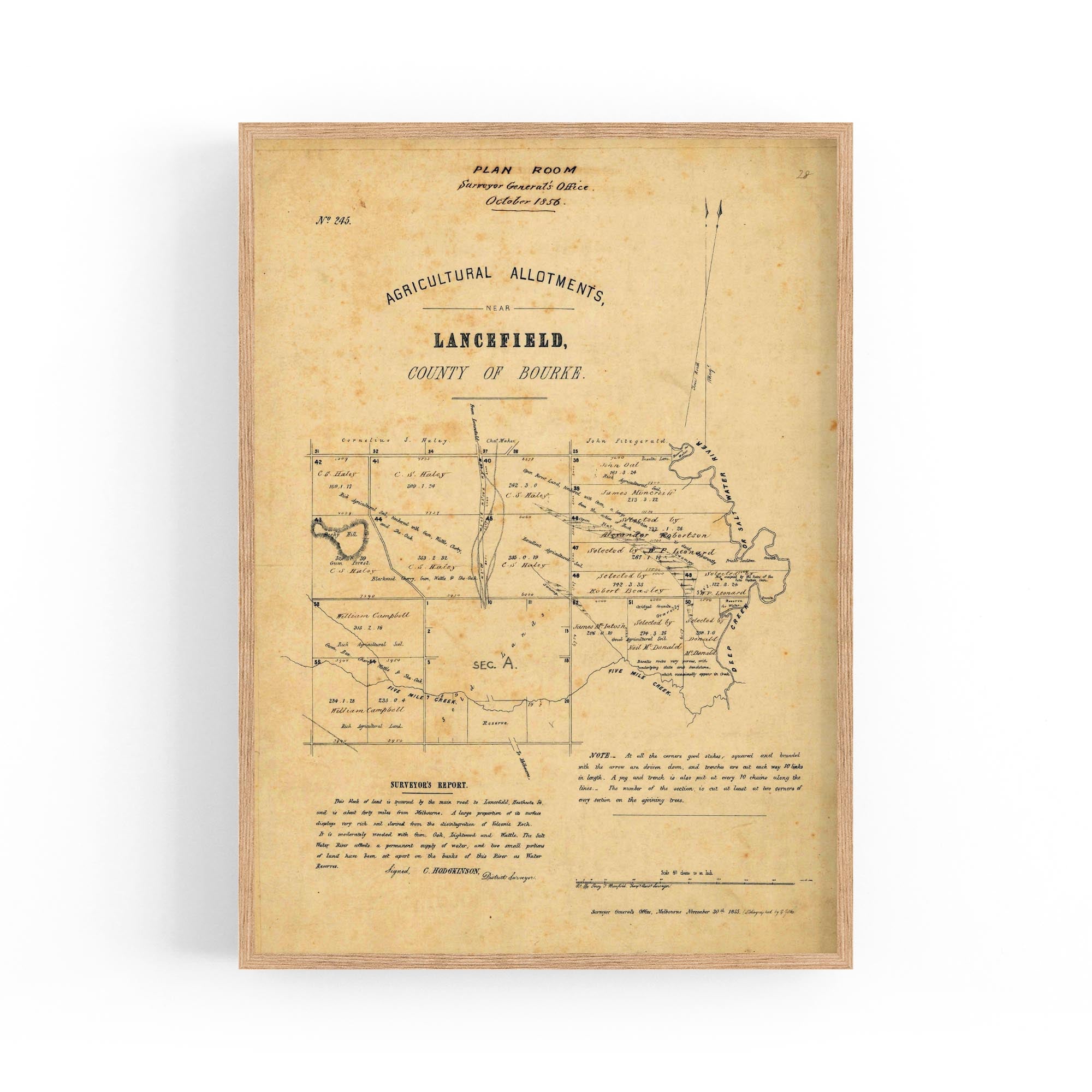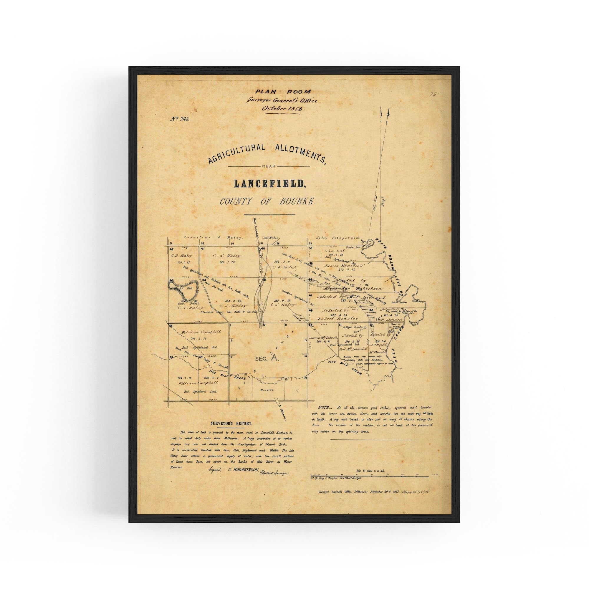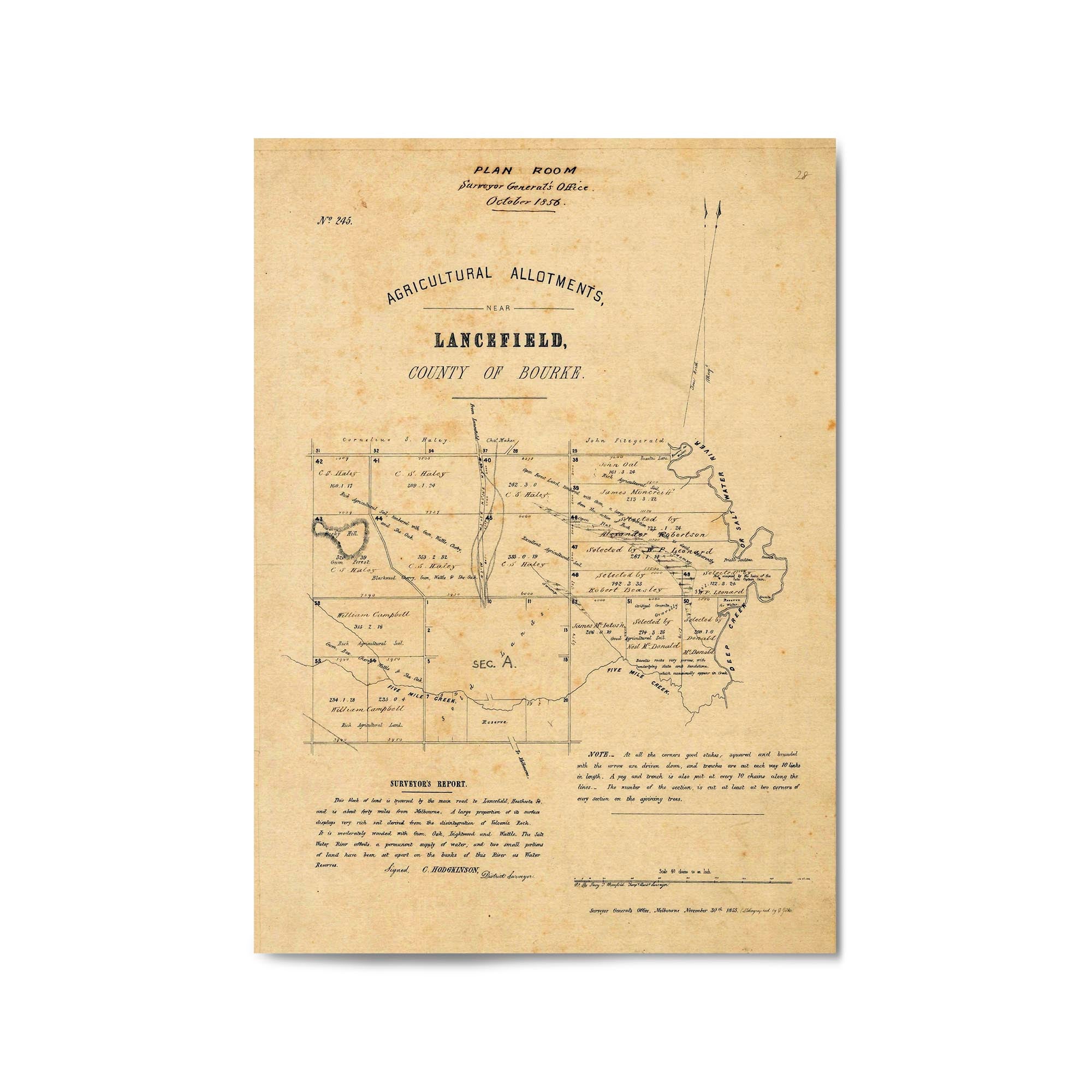 Percy T. Bromfield Temp. Assist. Surveyor; C. Hodgkinson District Surveyor; Surveyor General's Office, lithographed by E. Gilks. 1855.