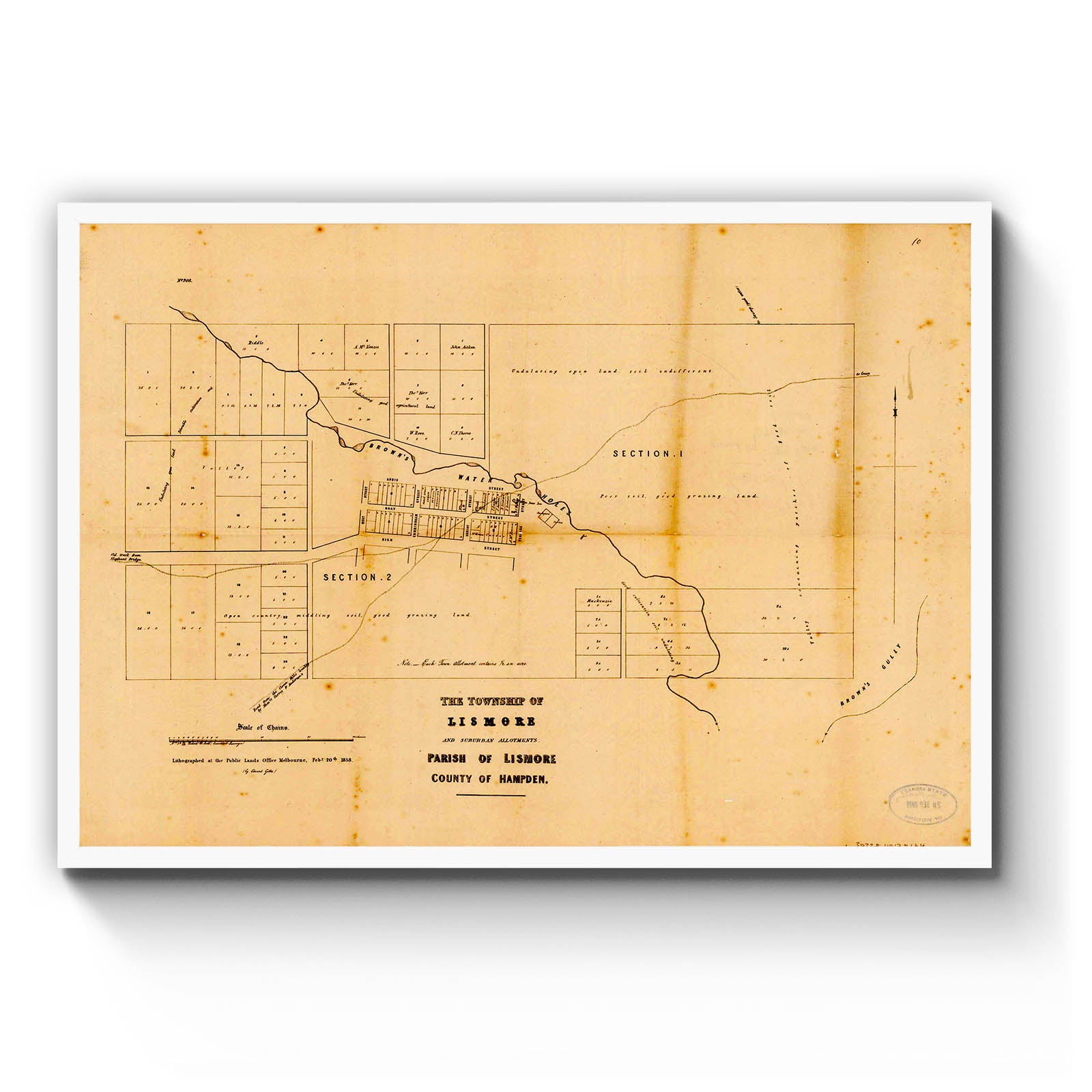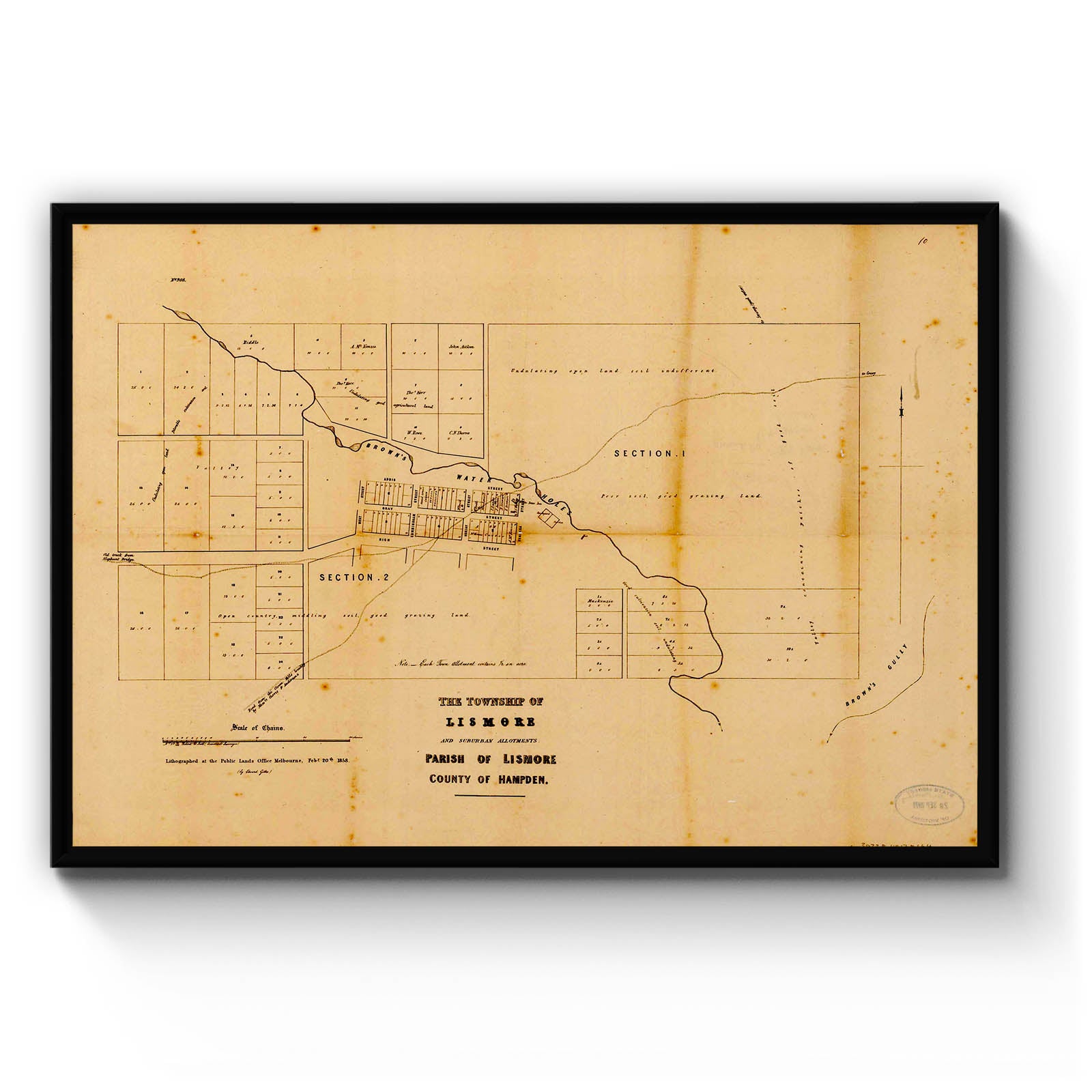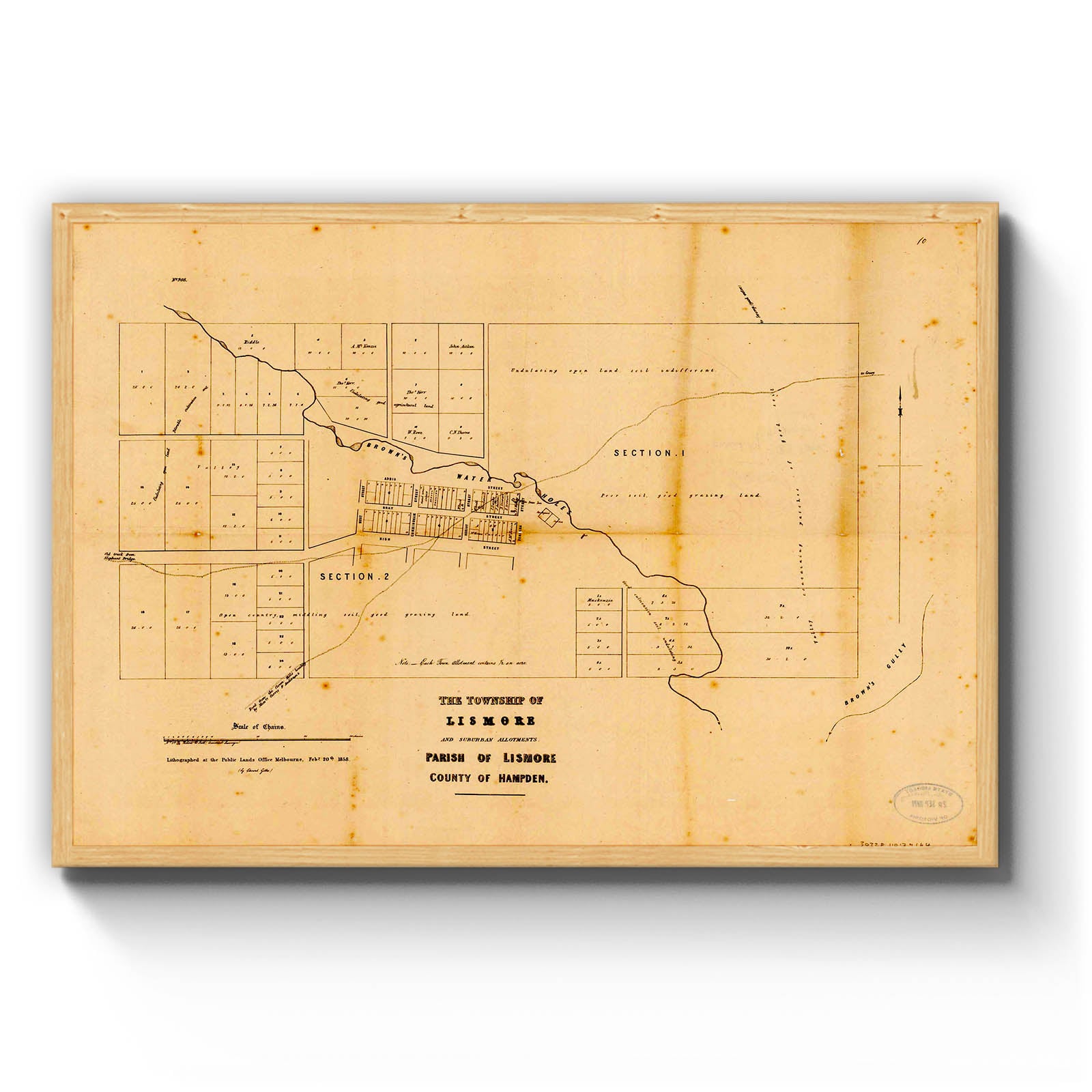 Recently moving to Harcourt and being interested in the history of the area, it seemed fitting to purchase a vintage map of the area which is displayed on our kitchen wall for us to study easily, identifying the block of land we bought. Nicely framed too.